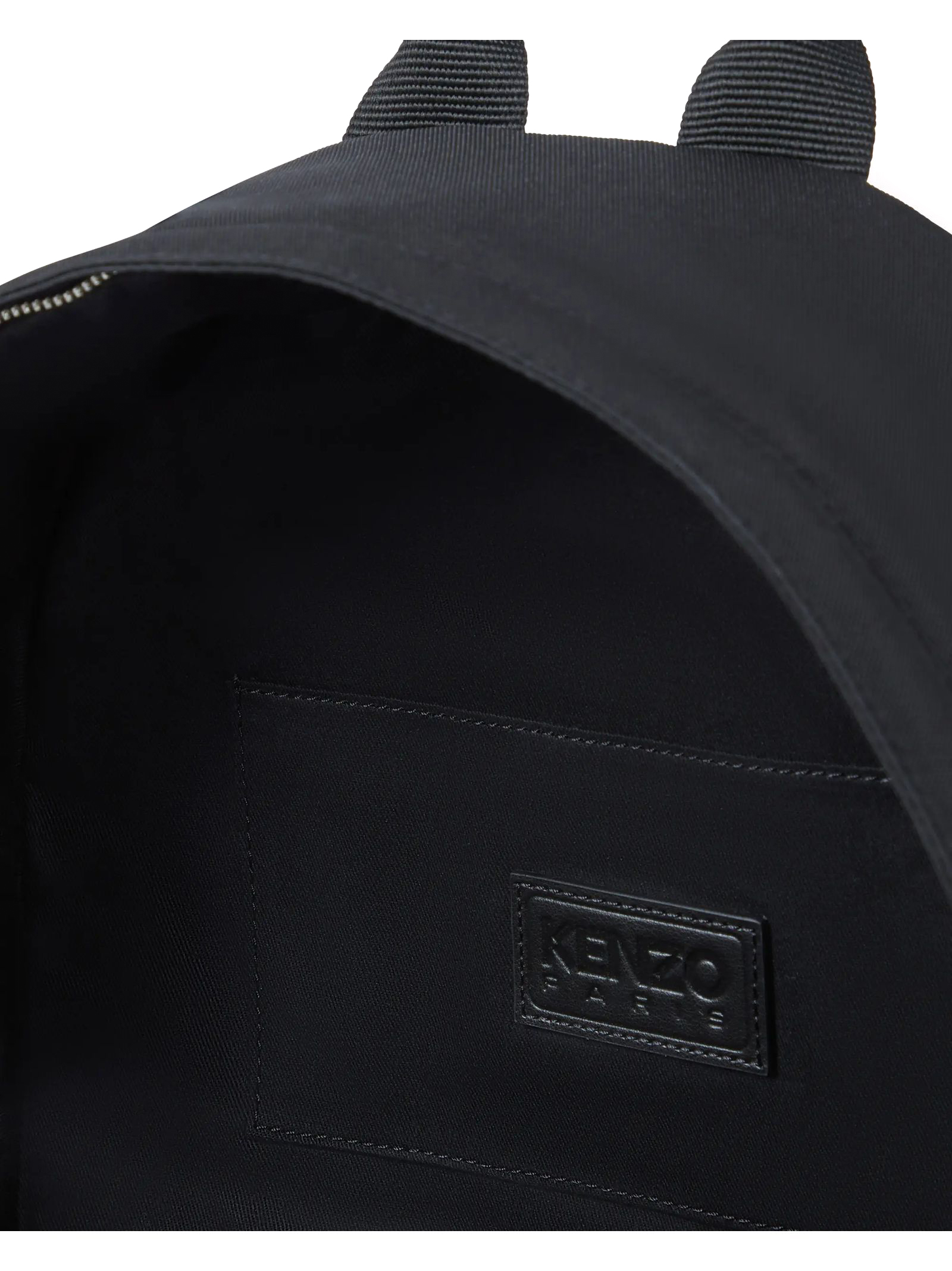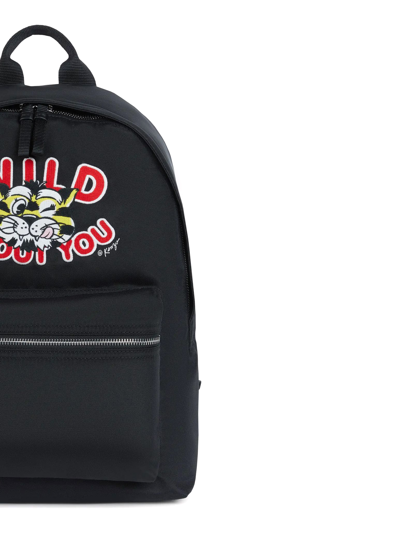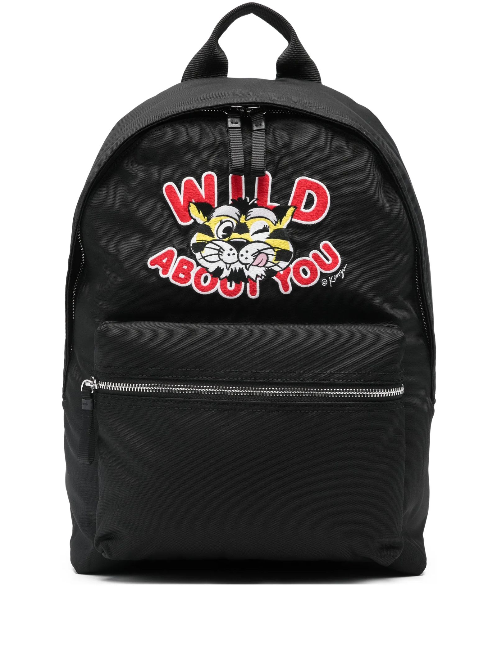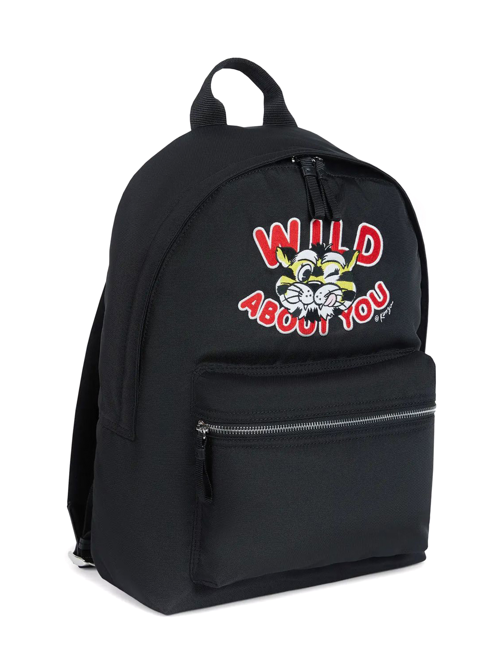 Zaino 'KENZO Wild Tiger' Nero, Linea 'KENZO Varsity', Nylon, Spallacci regolabili, Maniglia superiore, Chiusura con cerniera bidirezionale, Una tasca esterna con cerniera, Una tasca interna piatta, Ricamata 'KENZO Wild Tiger', Misure: 34 x 42 x 12 cm.