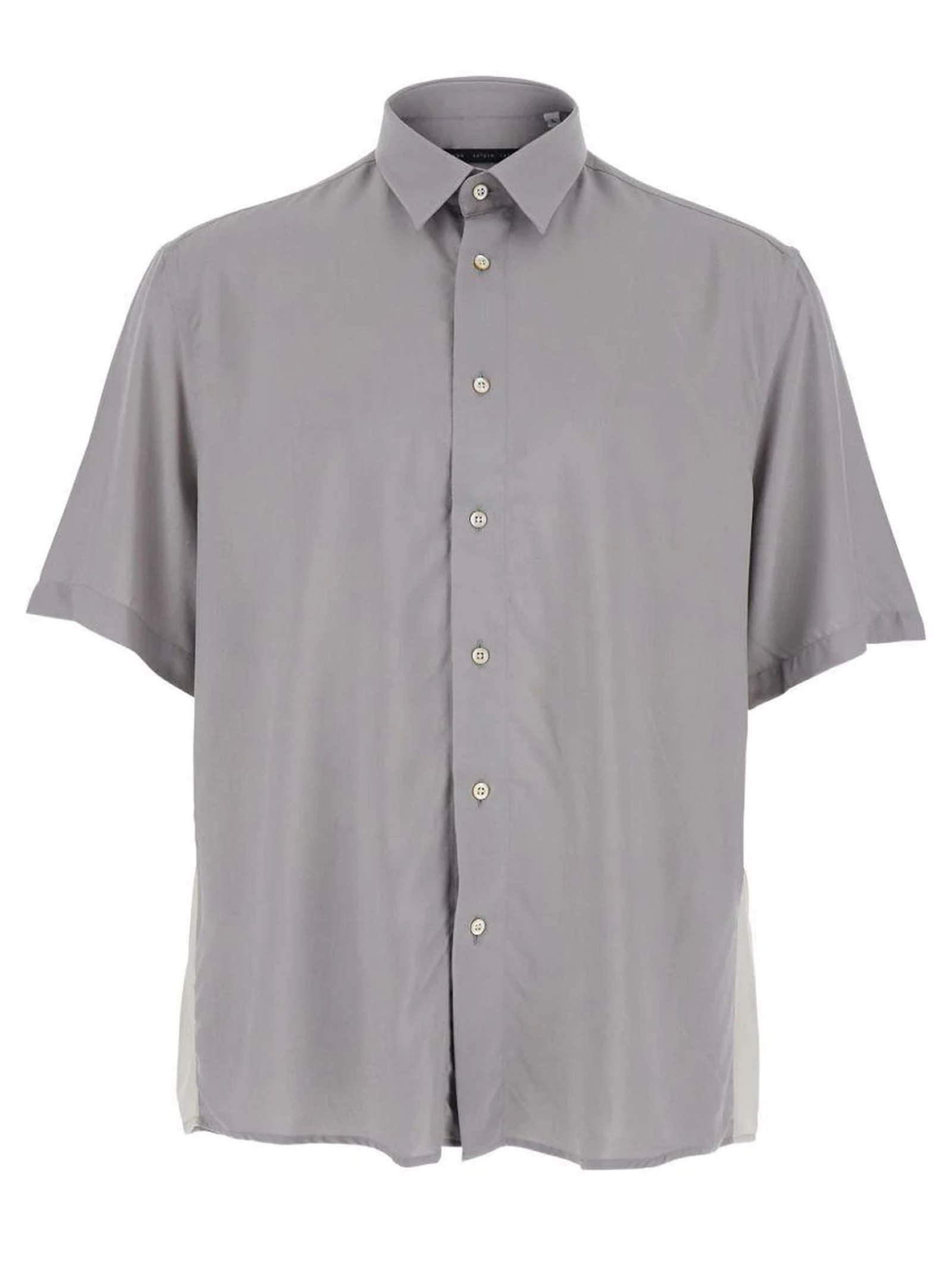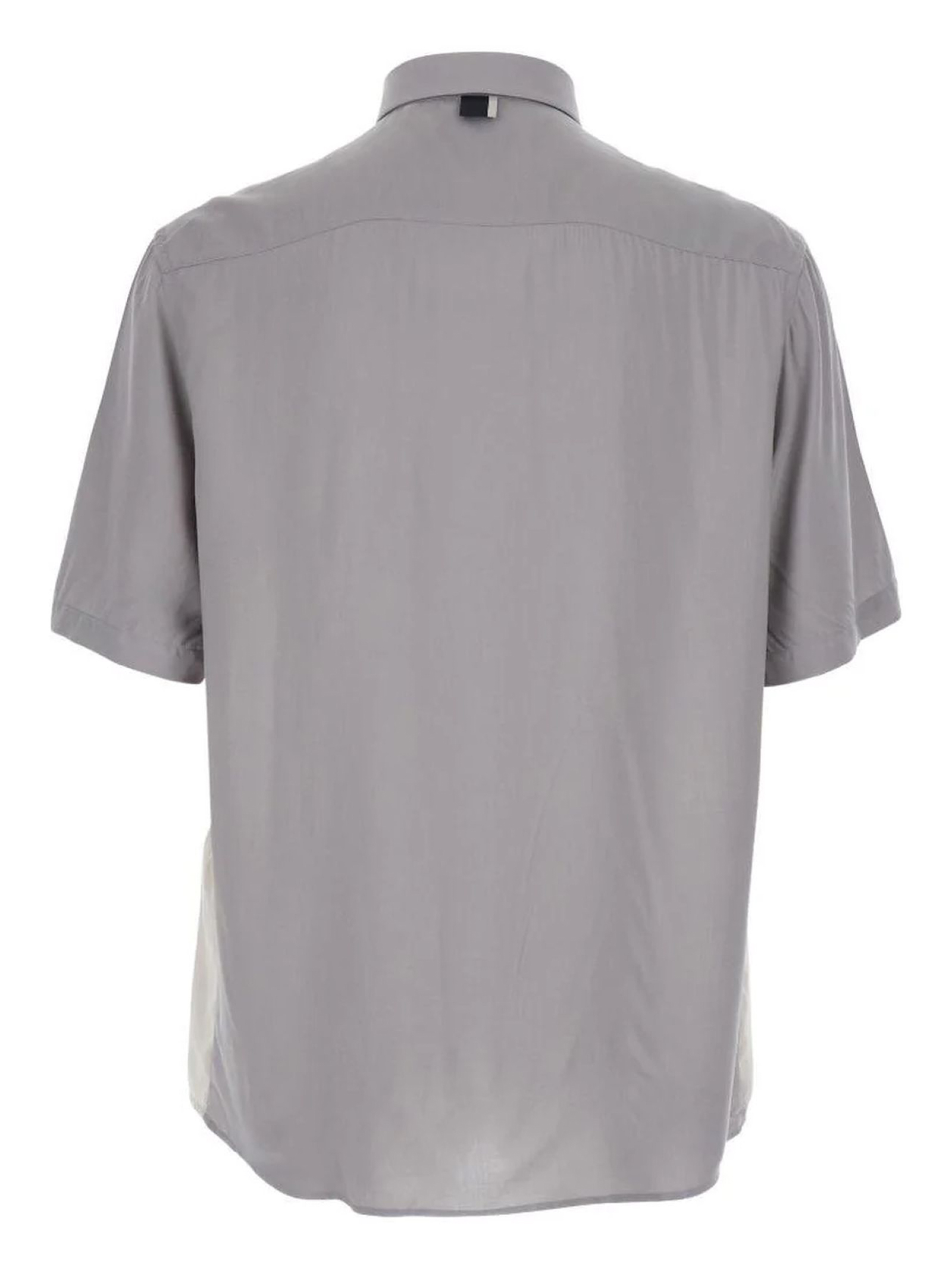 Camicia Comfort fit in viscosa grigia con anello in grosgrain sul retro, maniche corte, colletto classico
