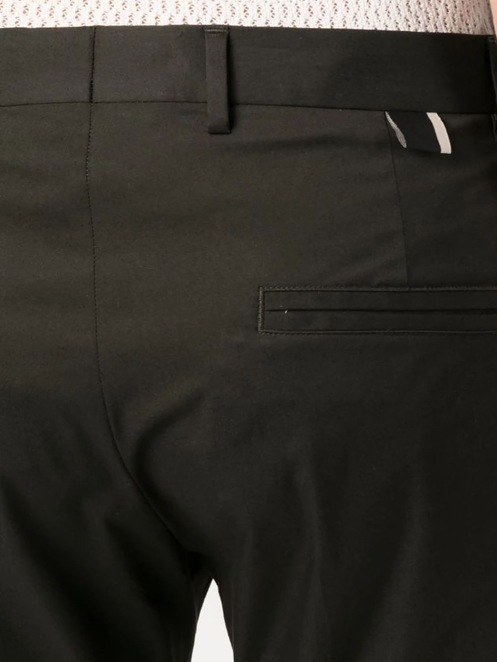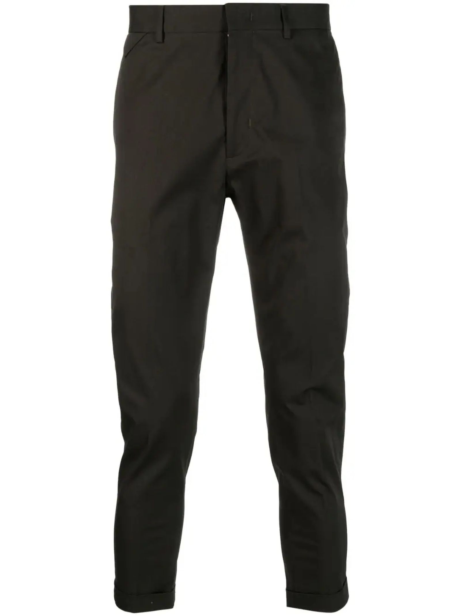Pantaloni verde in cotone elasticizzato, passanti per cintura, chiusura frontale nascosta, vita media, taglio skinny, due tasche laterali inserite, due tasche posteriori a filetto, gamba cropped