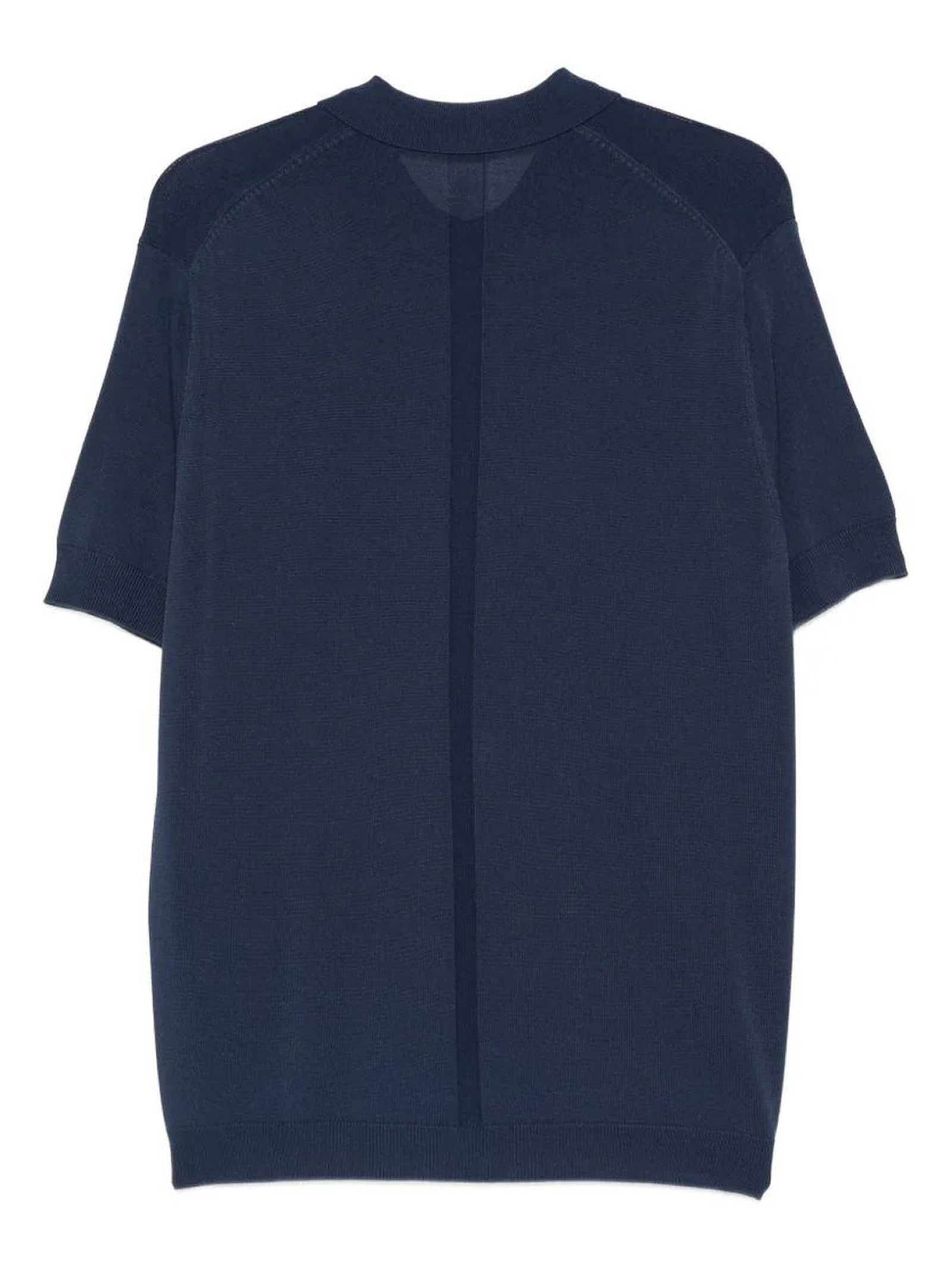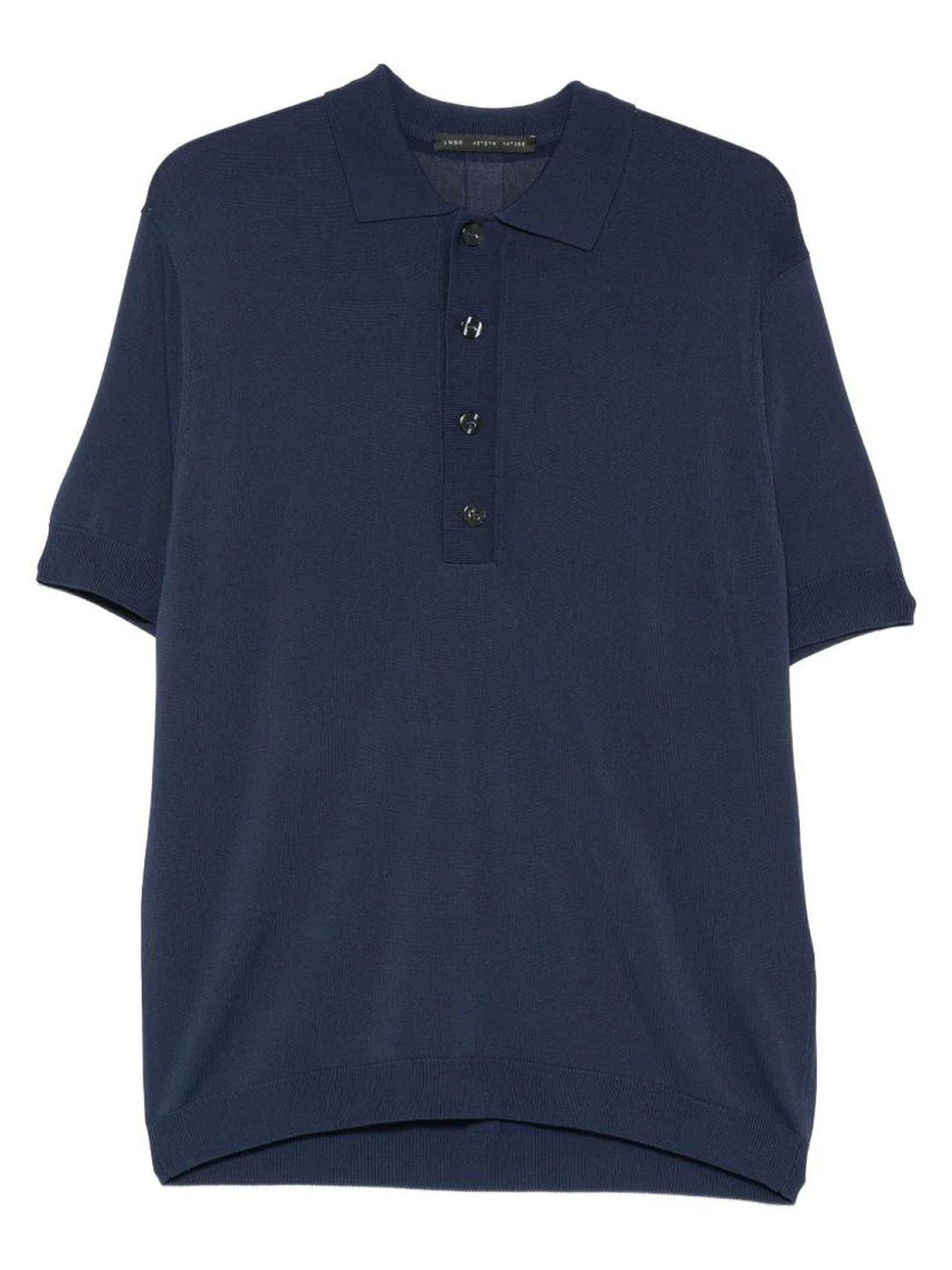 Polo in maglia di viscosa leggera blu con colletto classico, chiusura bottoni, maniche corte