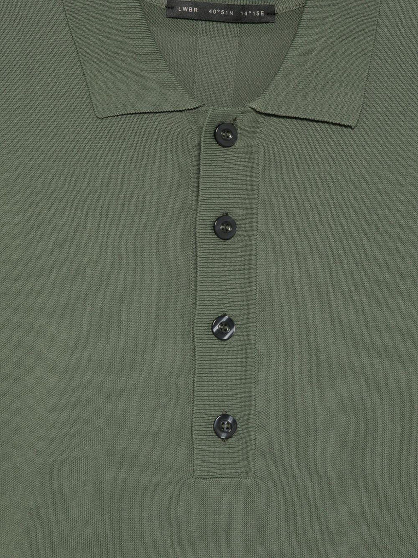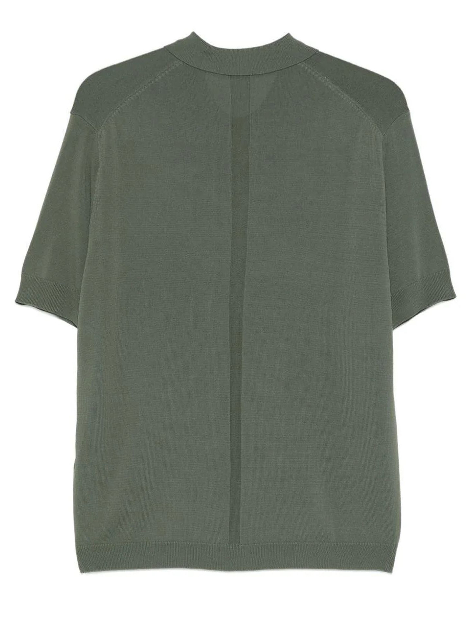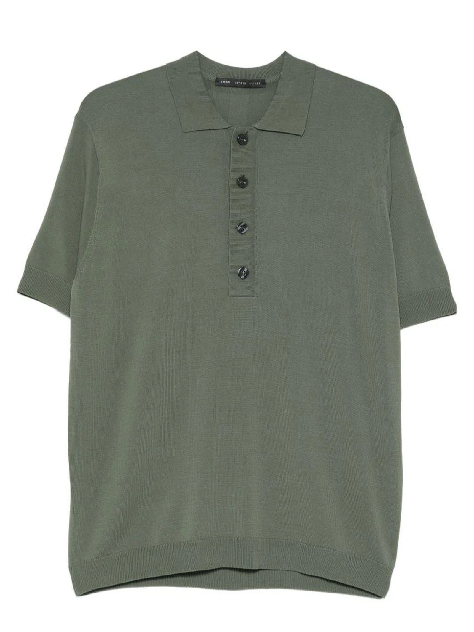 Polo in maglia di viscosa leggera verde con colletto classico, chiusura bottoni, maniche corte