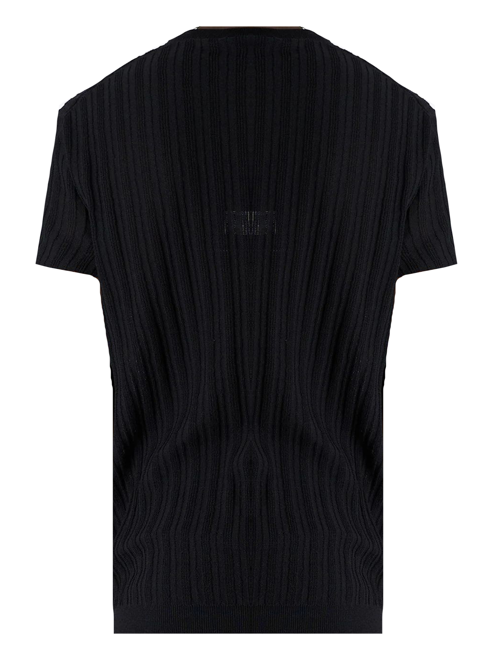 T-shirt in maglia di cotone a coste nera con girocollo, maniche corte, vestibilità regolare con bordi e girocollo rifiniti a costine