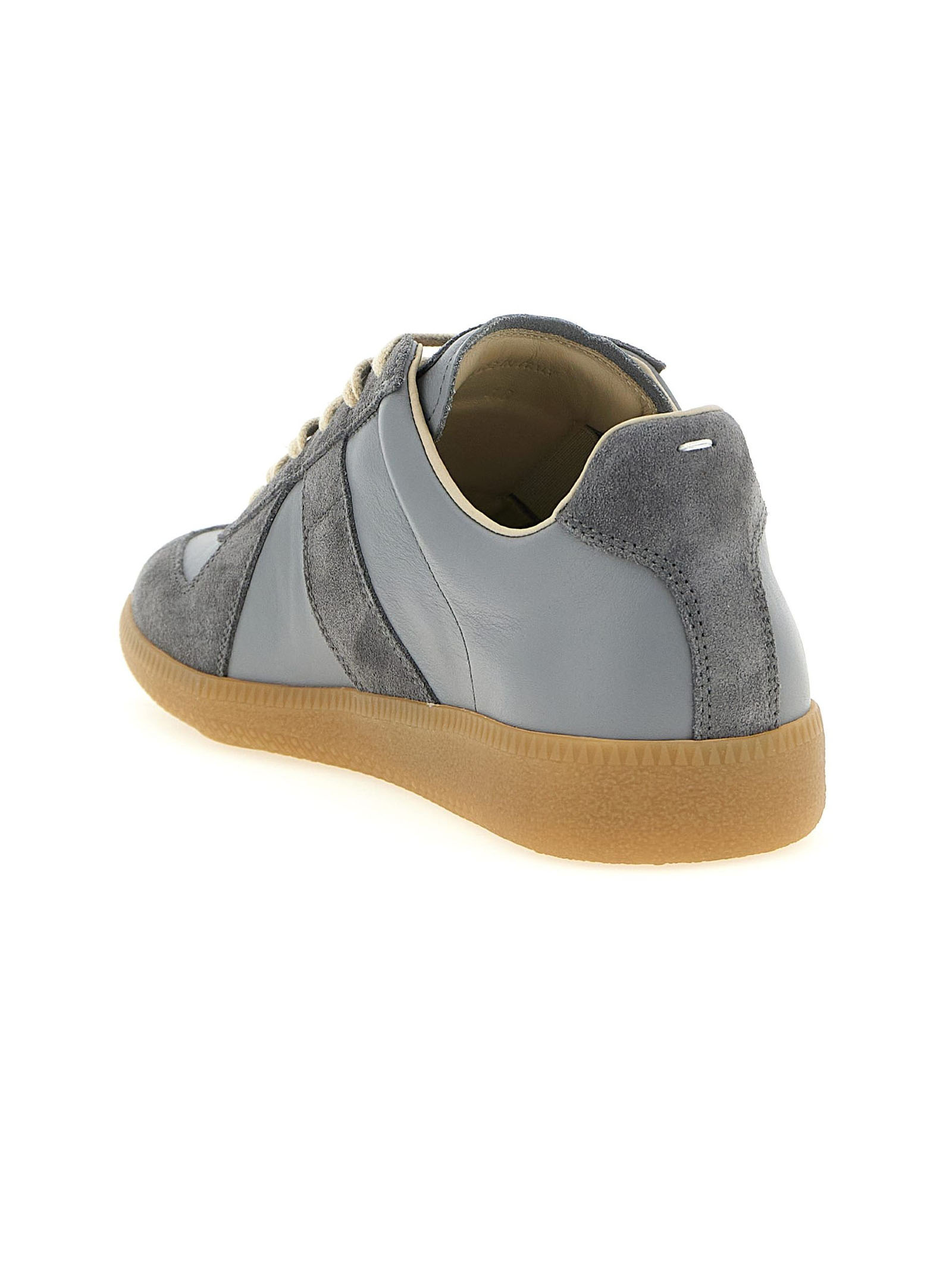 Sneakers stringate in pelle nappa e crosta di pelle, suola a contrasto, etichetta con logo Maison Margiela sulla linguetta, impuntura bianca sul retro, etichetta Replica interna, elastico interno, Logo Maison Margiela all-over sulla soletta, pulire con un prodotto per la pelle delicato