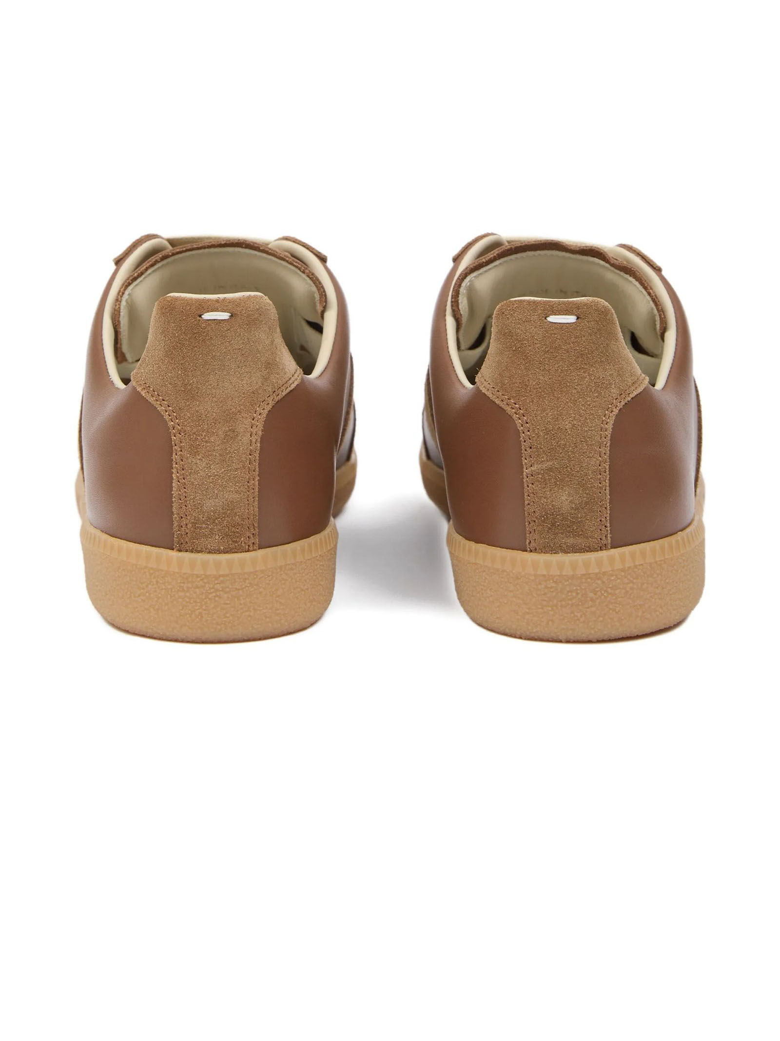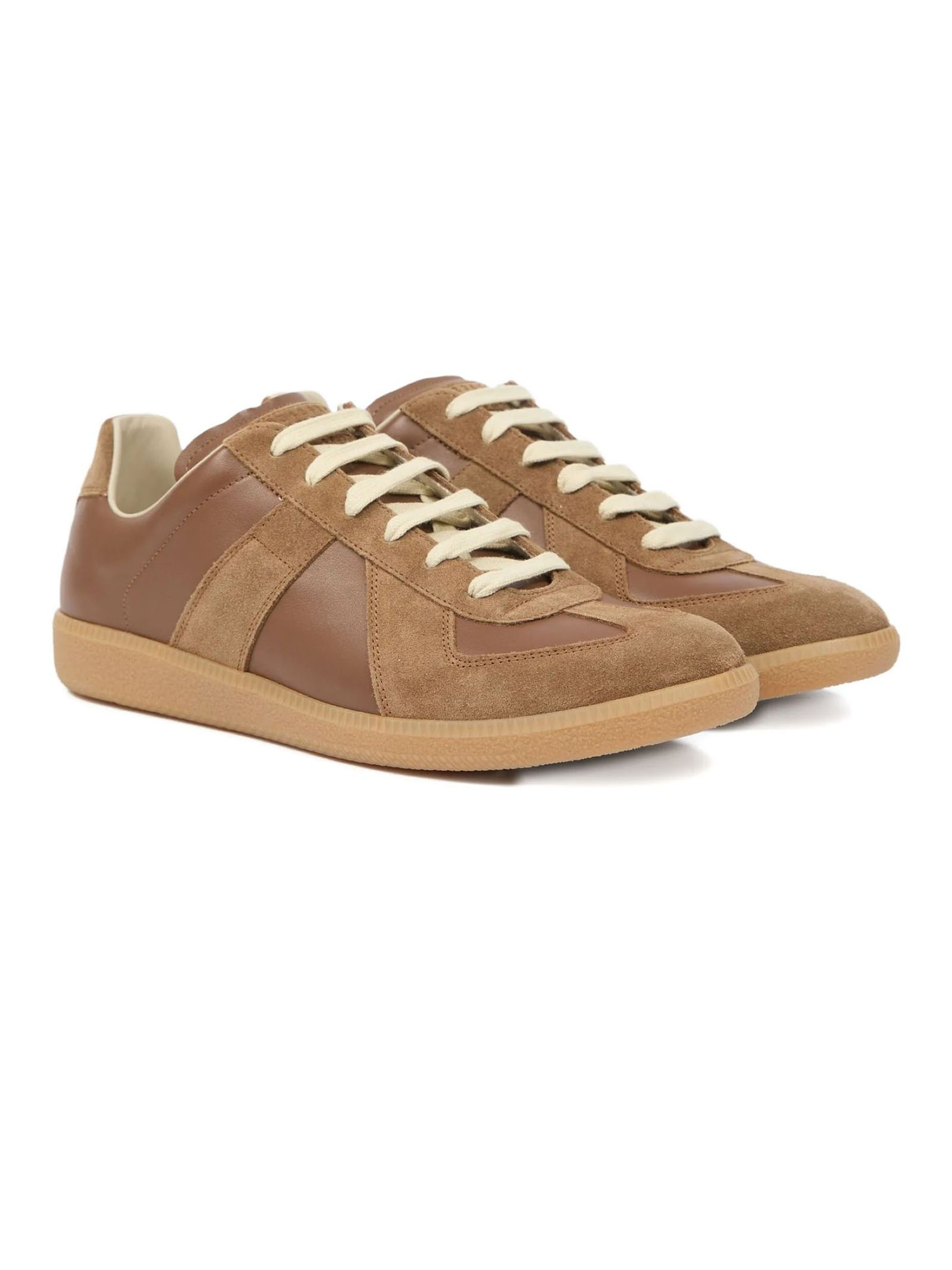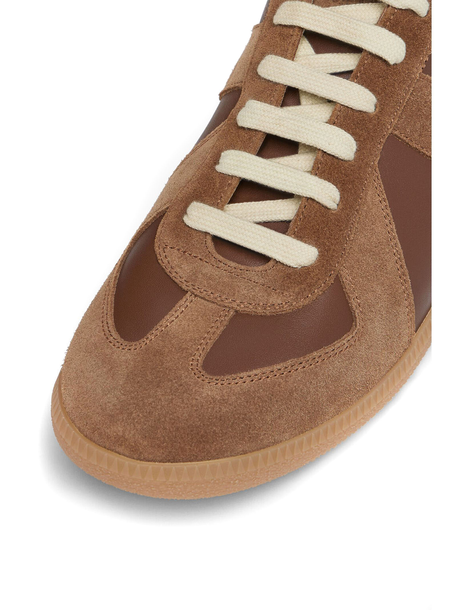 Sneakers stringate in pelle nappa e crosta di pelle, suola a contrasto, etichetta con logo Maison Margiela sulla linguetta, impuntura bianca sul retro, etichetta Replica interna, elastico interno, Logo Maison Margiela all-over sulla soletta, pulire con un prodotto per la pelle delicato