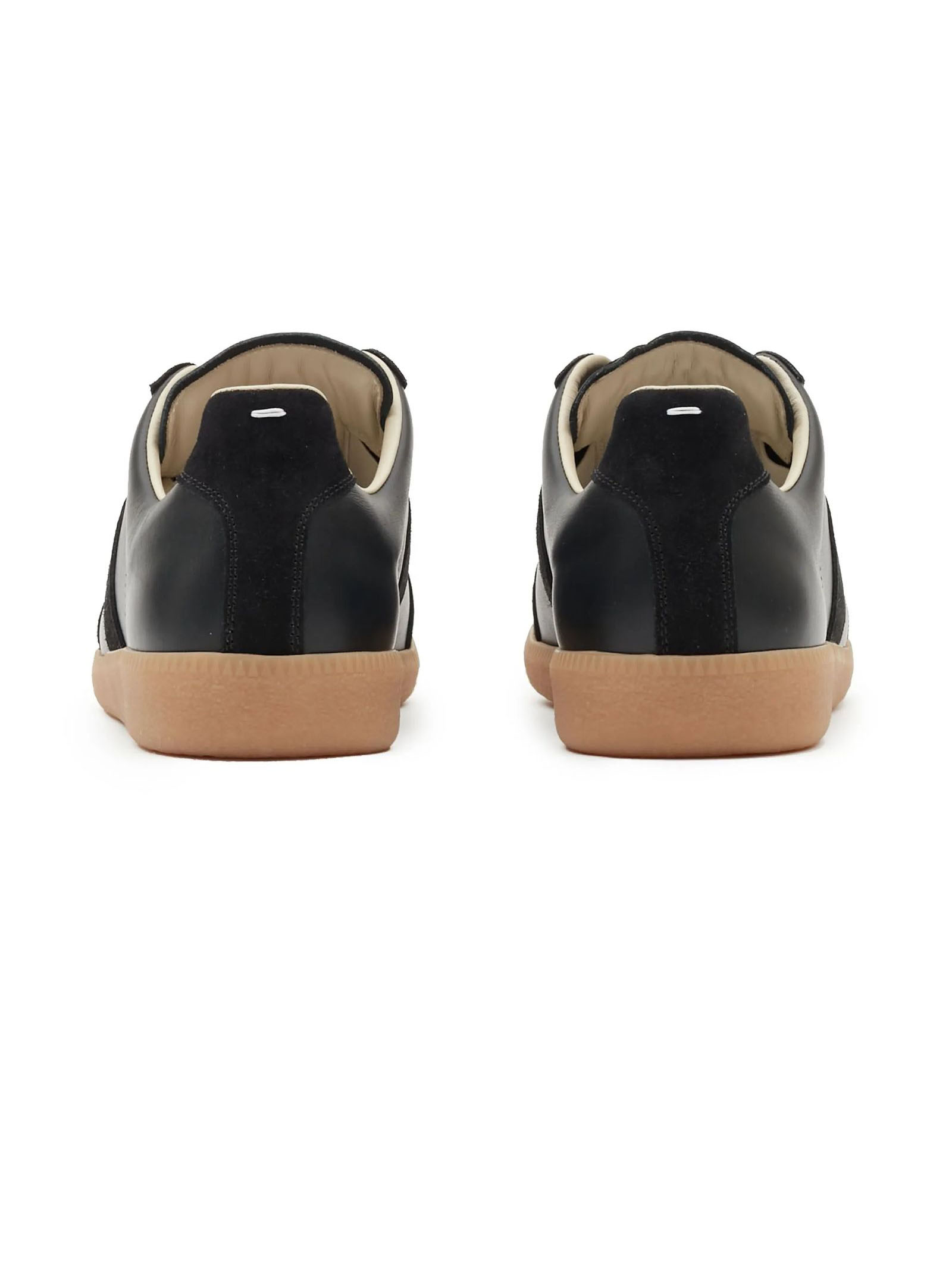 Nero, pelle di vitello, punta rotonda, design a pannelli, lacci a contrasto, toppa con logo sulla linguetta, soletta con marchio, gomma, suola in gomma