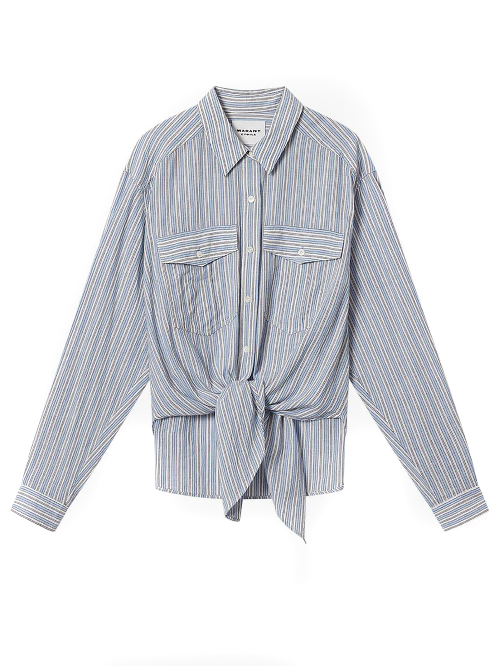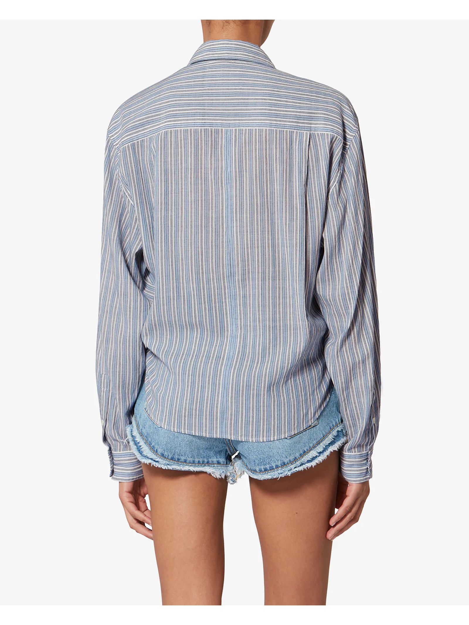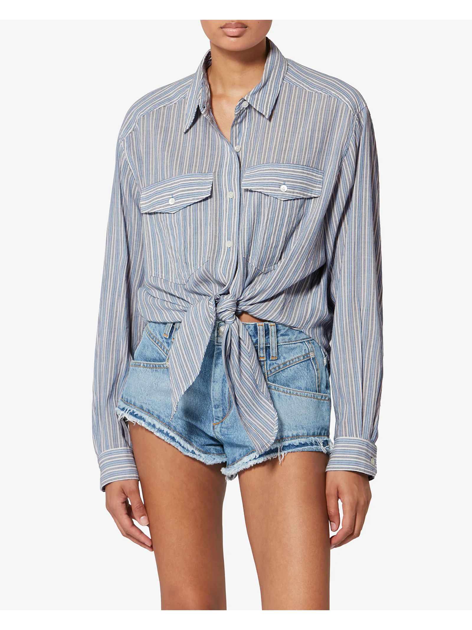 Camicia Nath Da Annodare In Voile Di Cotone A Righe, Camicia da annodare in voile di cotone a righe, Colletto a camicia, Maniche lunghe con bottoni ai polsini, Chiusura tramite bottoni, Tasche applicate sul petto con patta a bottone, Orlo inferiore arrotondato e taglio oversize