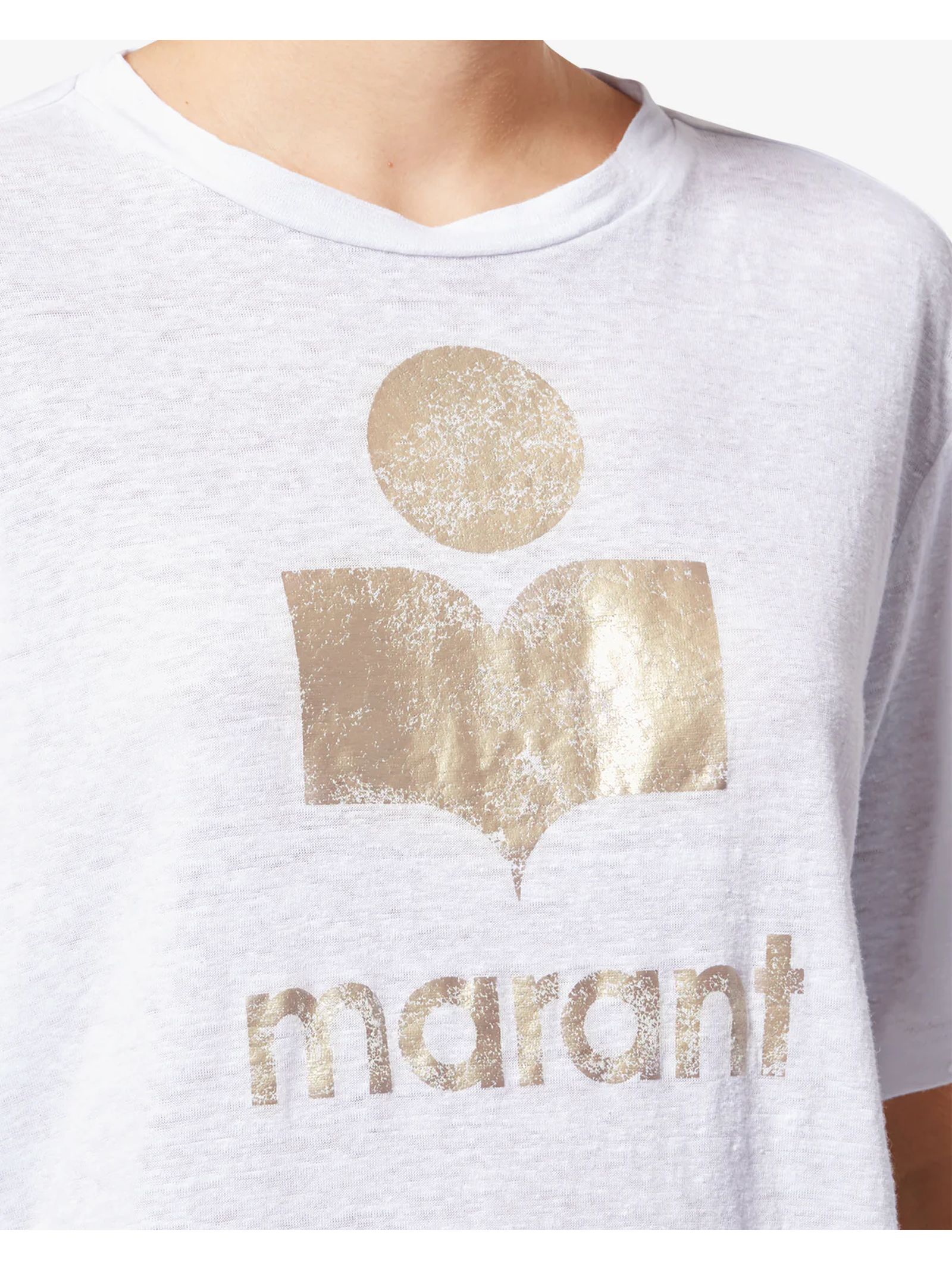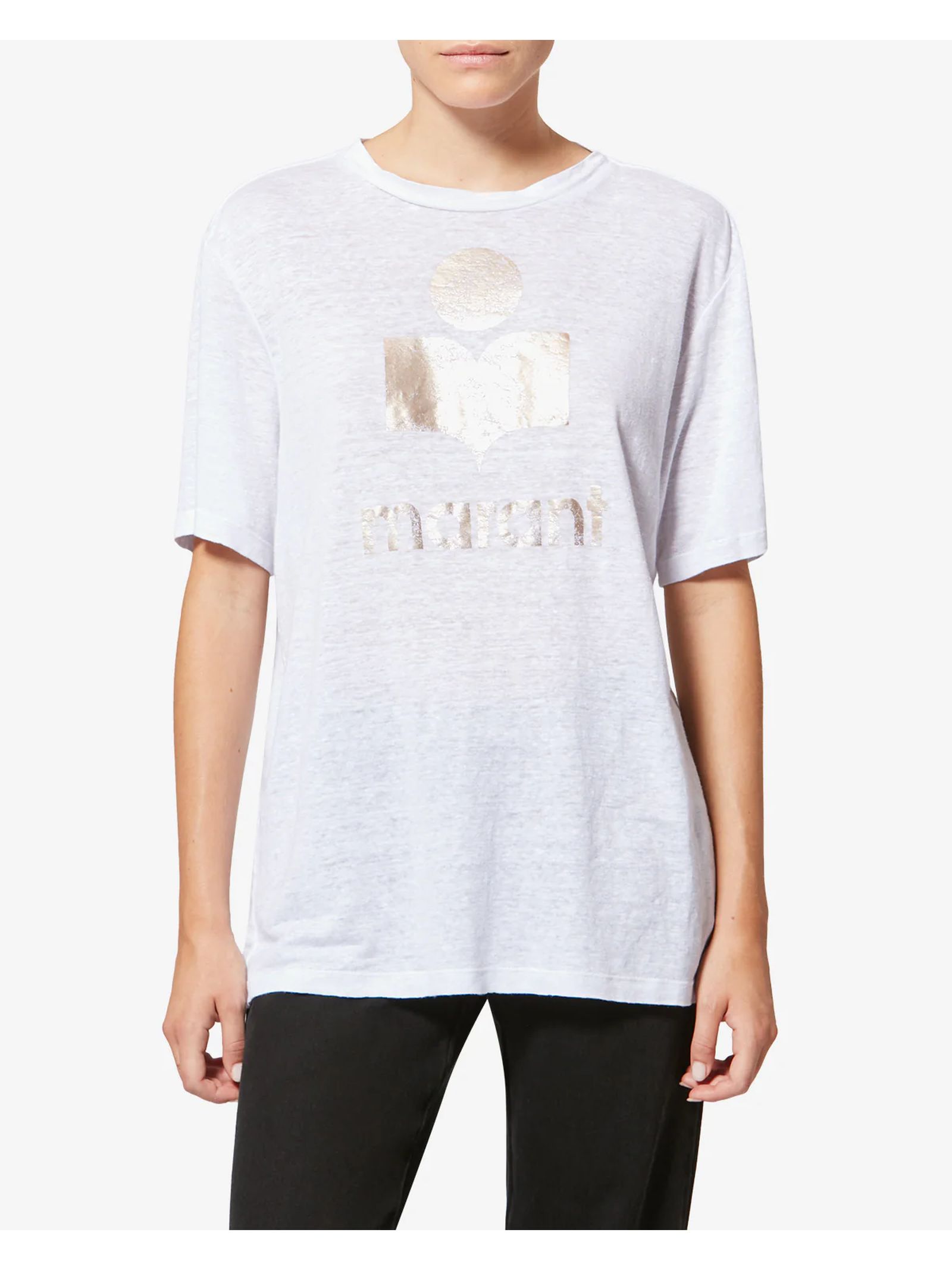 T-shirt con logo in lino ecosostenibile a tinta unita, scollo rotondo rifinito con bordi a coste, maniche corte, logo "Marant" Metallizzato stampato sul davanti, orlo dritto, taglio casual