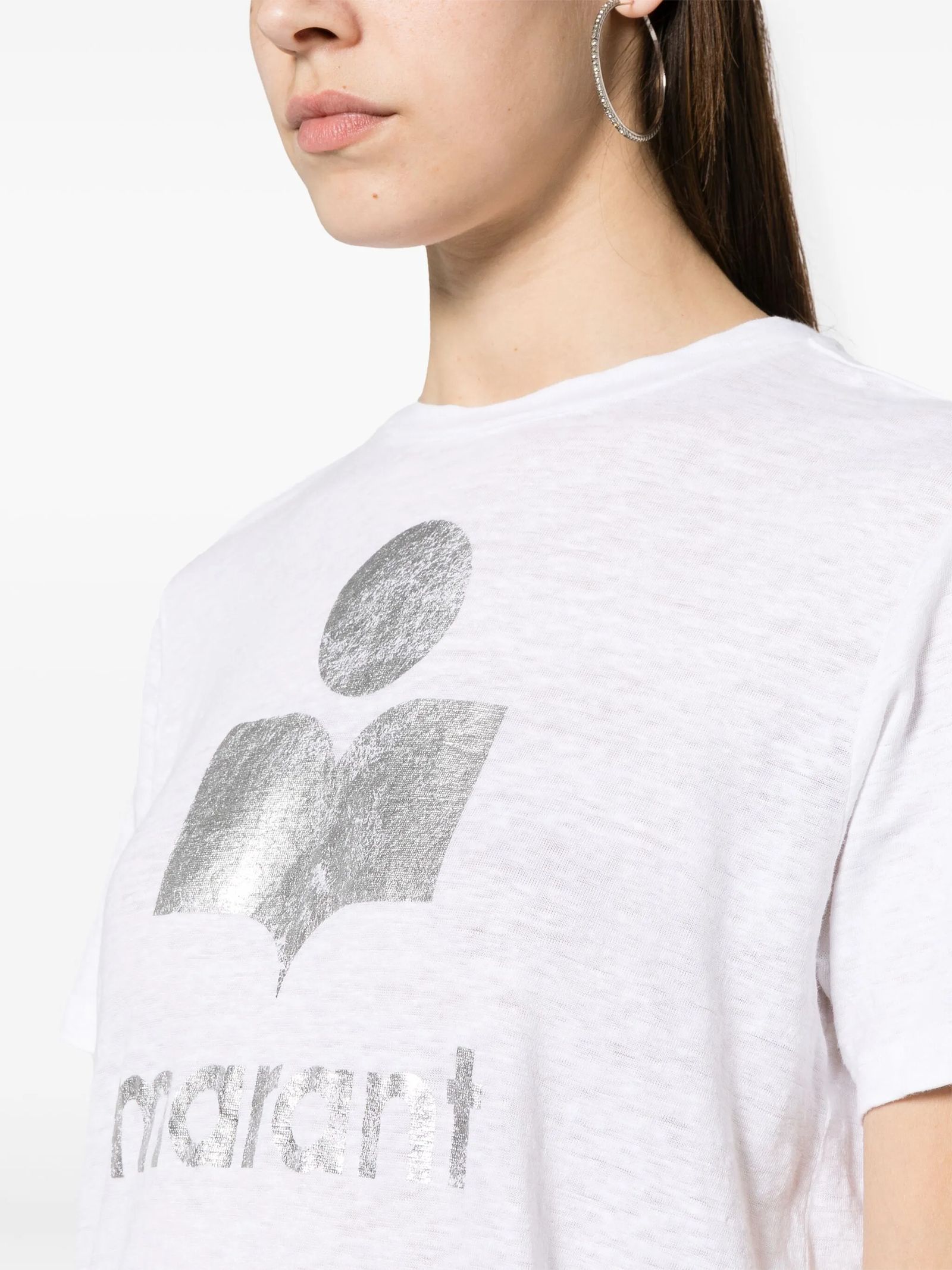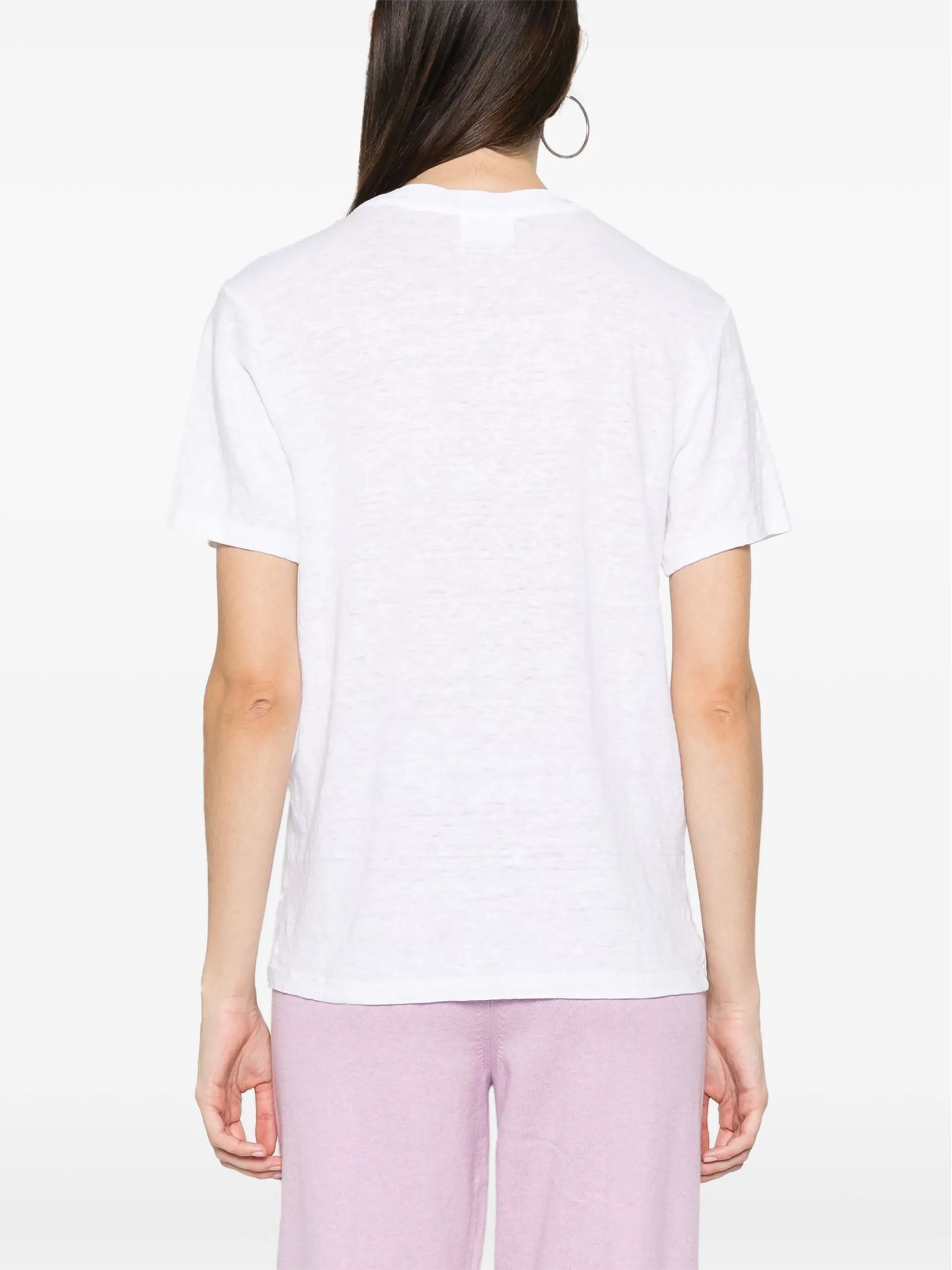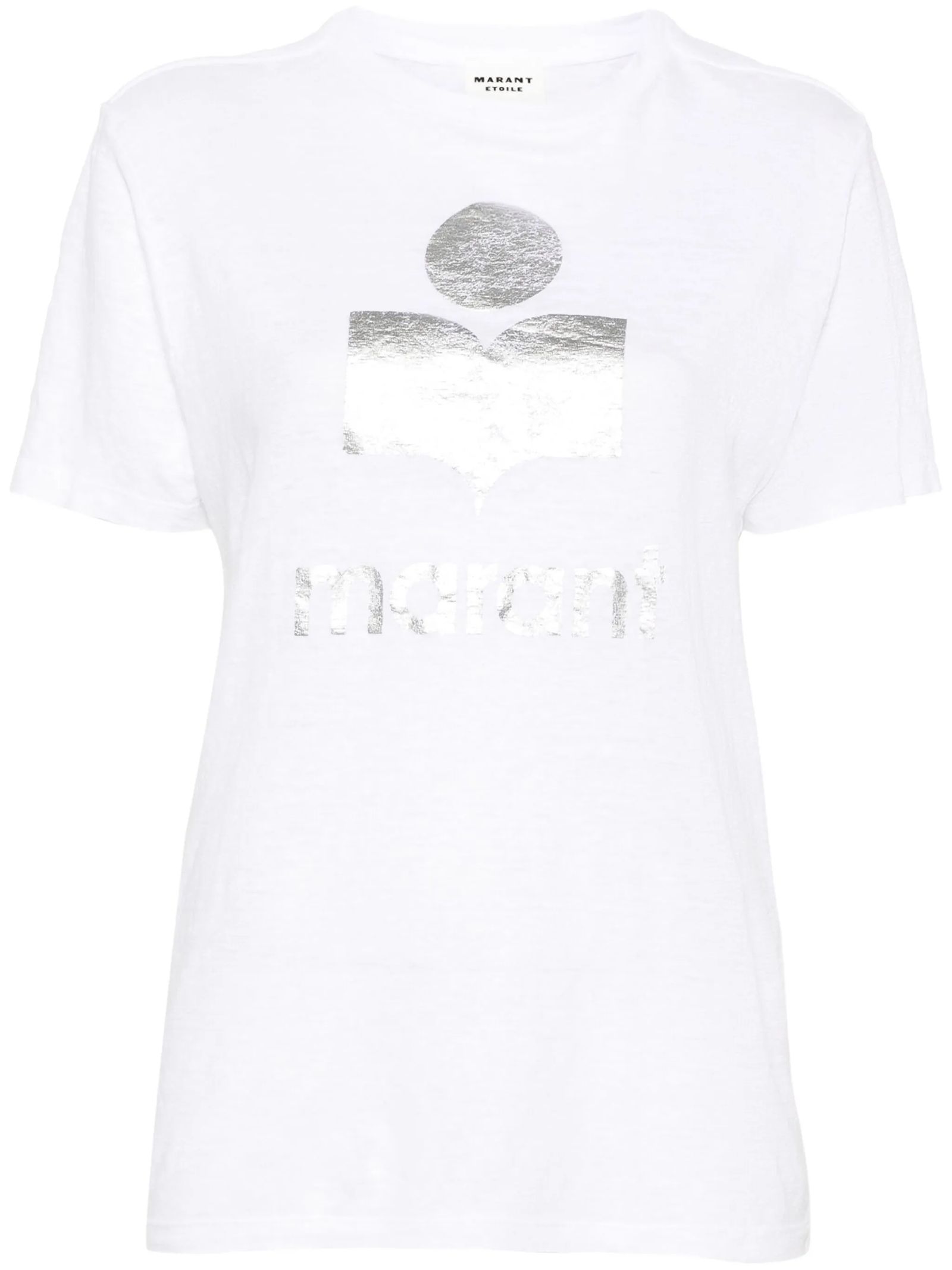 T-shirt in lino tinta unita con logo, Girocollo con finiture a costine, Maniche corte, Logo Marant stampato a contrasto sul davanti, Vestibilità comoda e orlo dritto