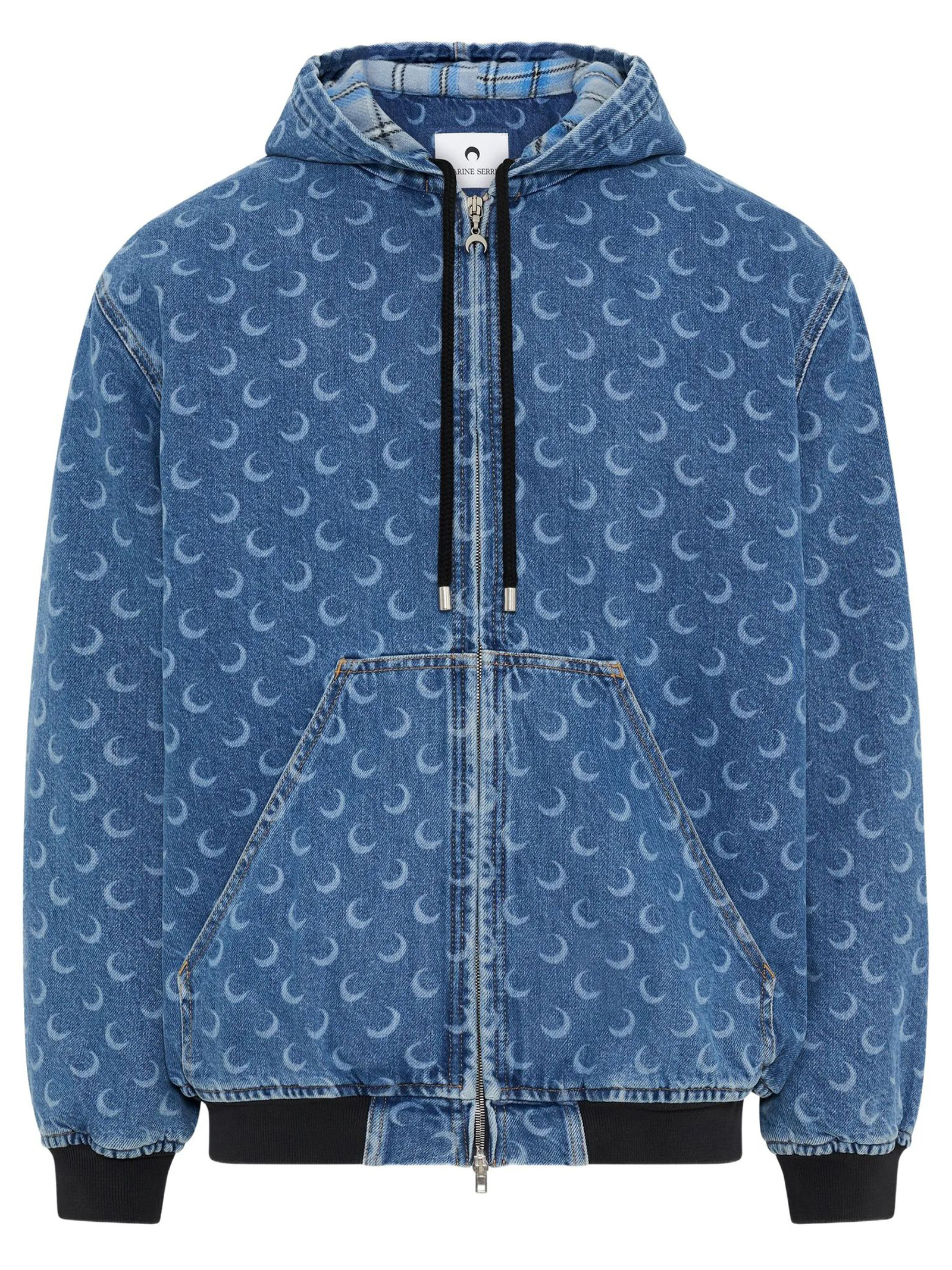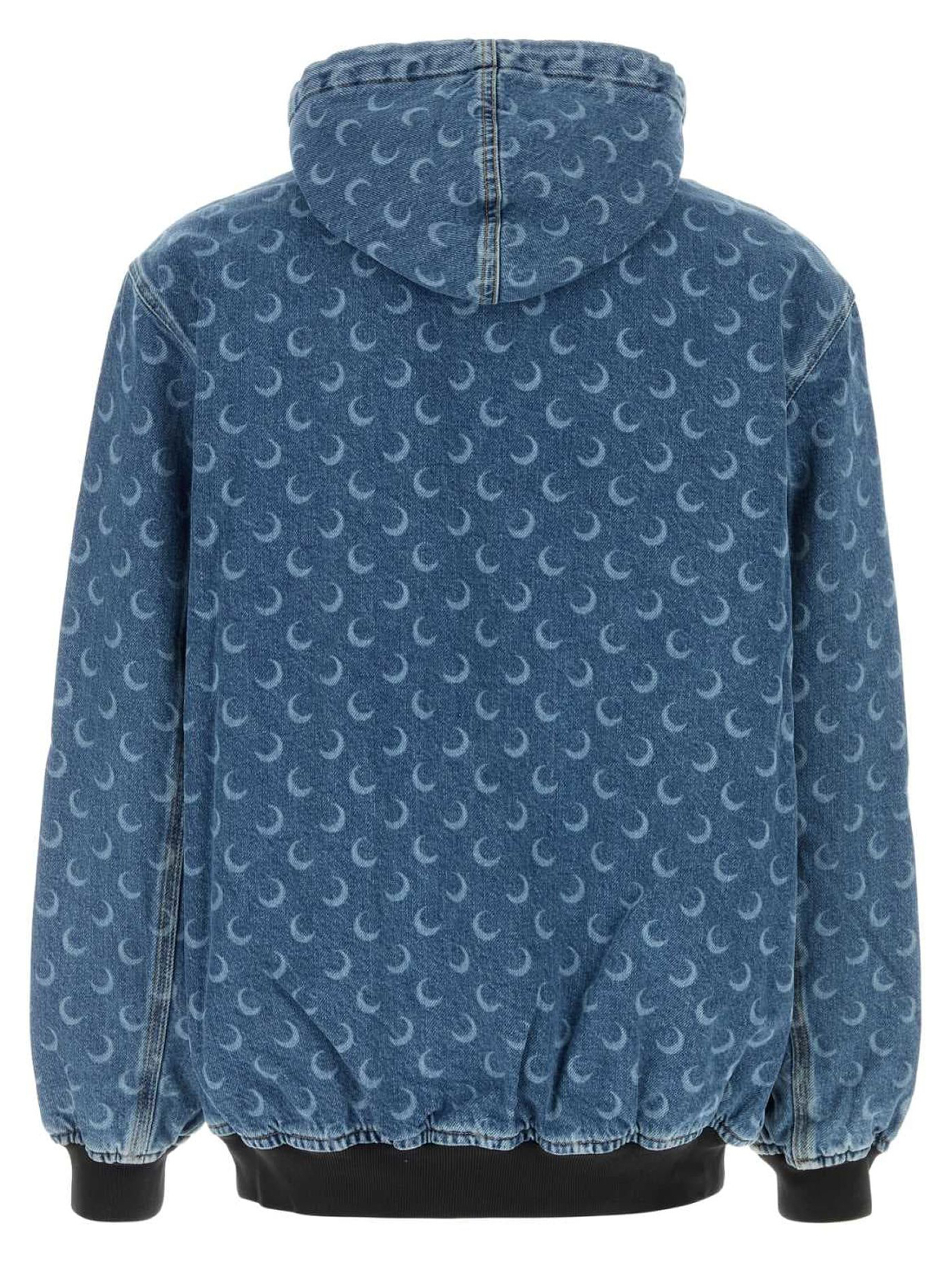 Bomber in denim di puro cotone caratterizzato da stampa Moon su tutta la superficie, cappuccio con coulisse, chiusura mediante zip, polsini e fondo a costine, due tasche applicate sulla parte frontale, etichetta logata sul retro, foderato