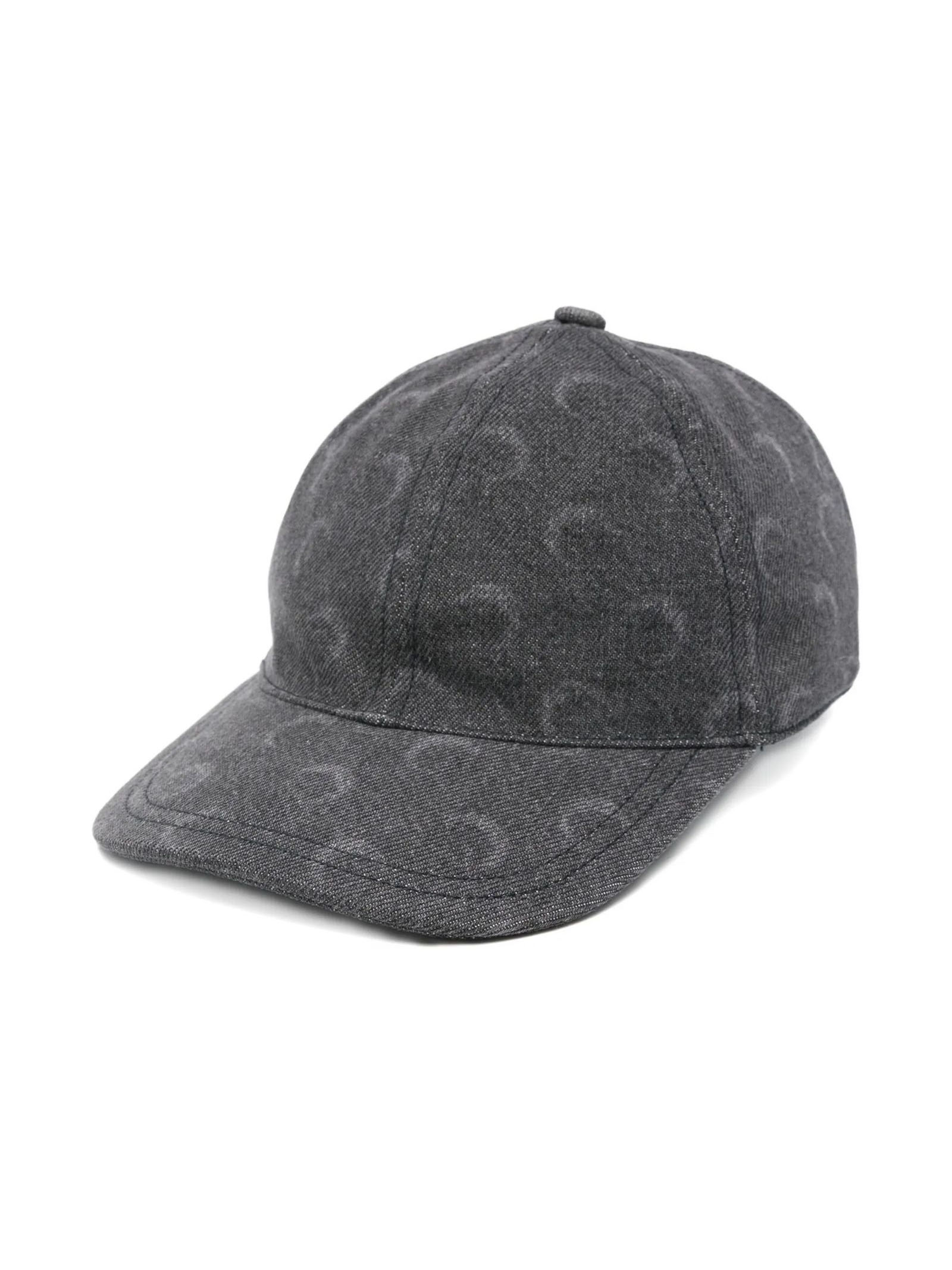 Cappello da baseball Moon denim in cotone grigio, motivo luna, tesa curva, chiusura posteriore, regolabile