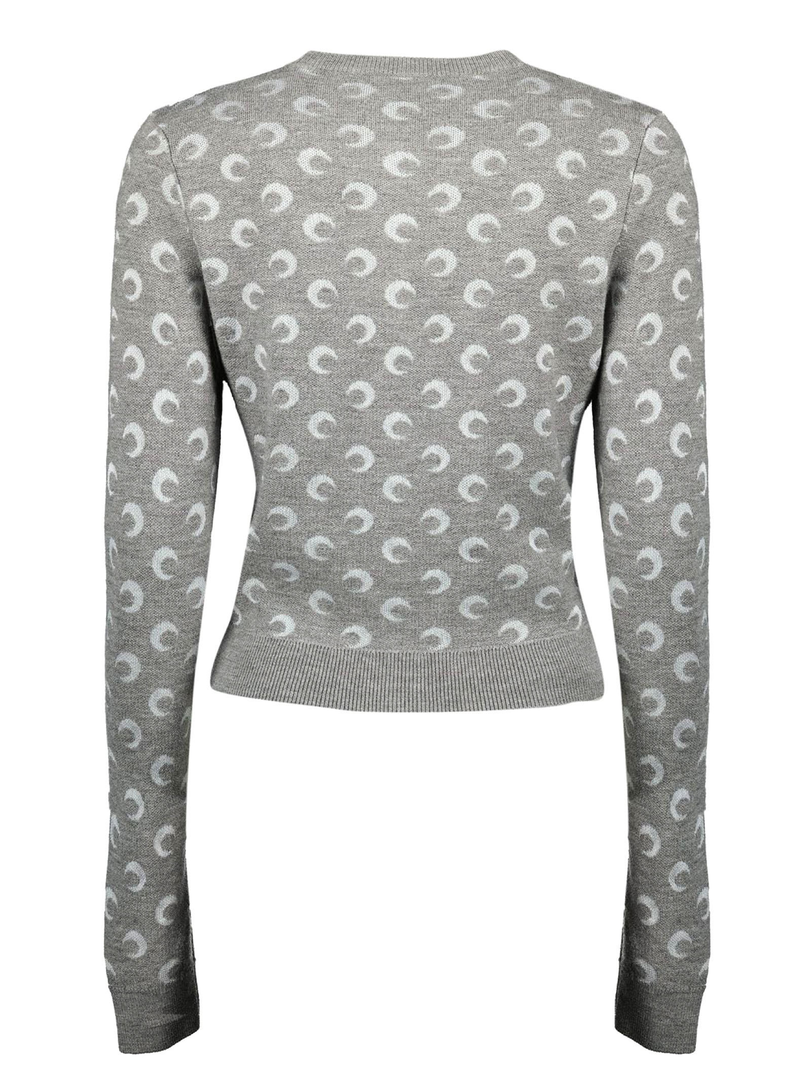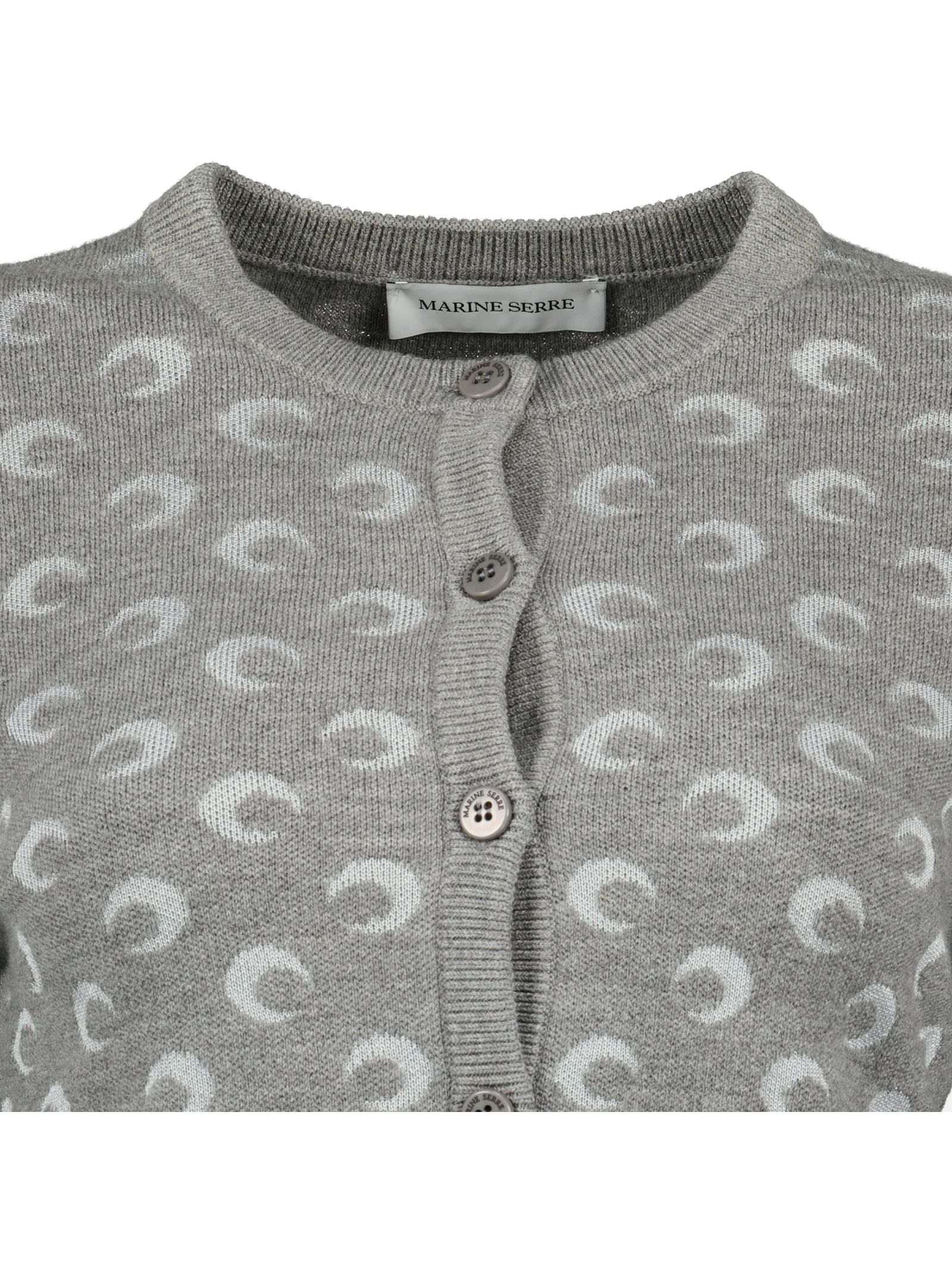 Cardigan aderente in maglia jacquard con motivo lunare, scollo a costine, chiusura frontale con 6 bottoni incisi, maniche e bordi inferiori a costine, punto jacquard con motivo lunare su tutta la superficie, logo lunare jacquard