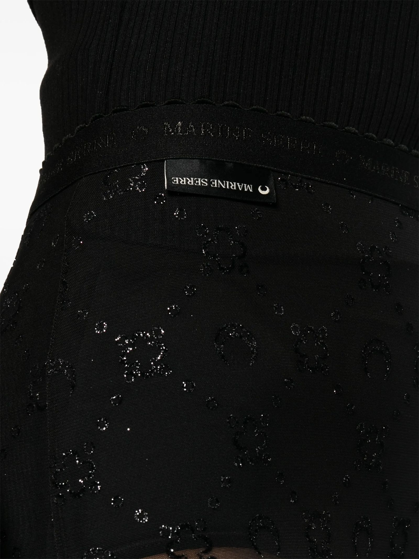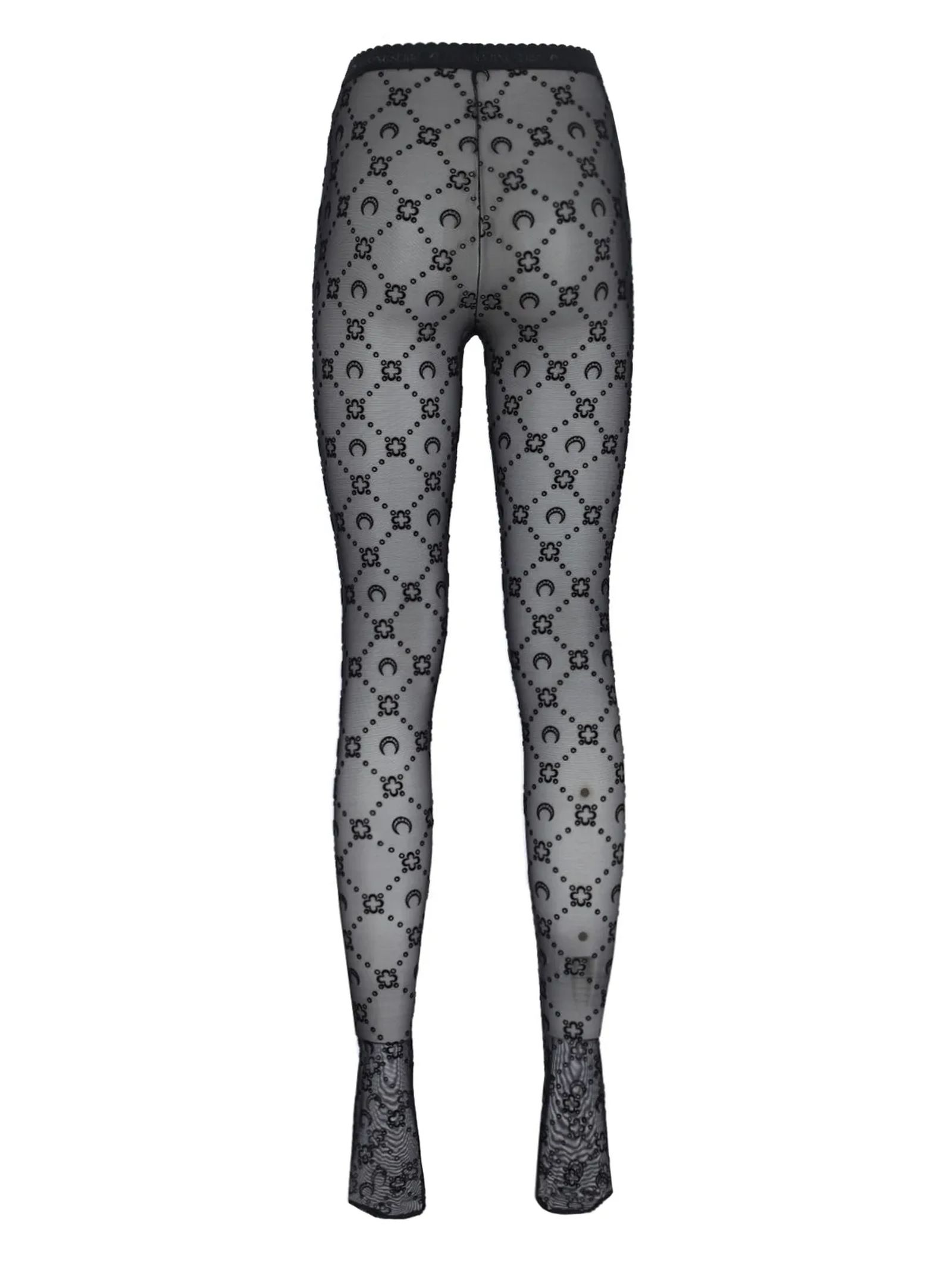 Collant in rete nera con stampa floccata, motivo Moonogram floccato su tutta la superficie, elastico in vita con logo, etichetta con logo cucita sulla cucitura in vita.