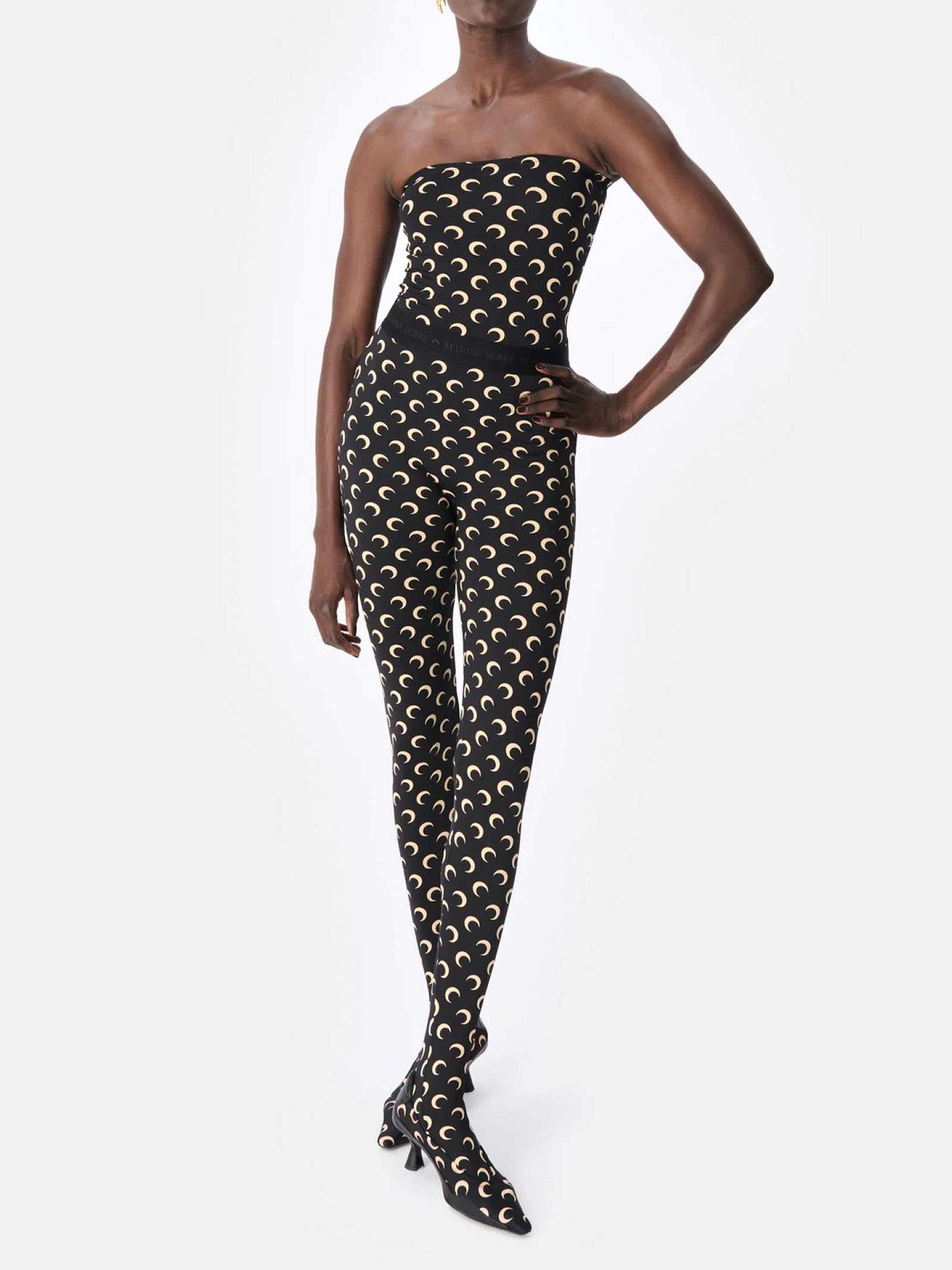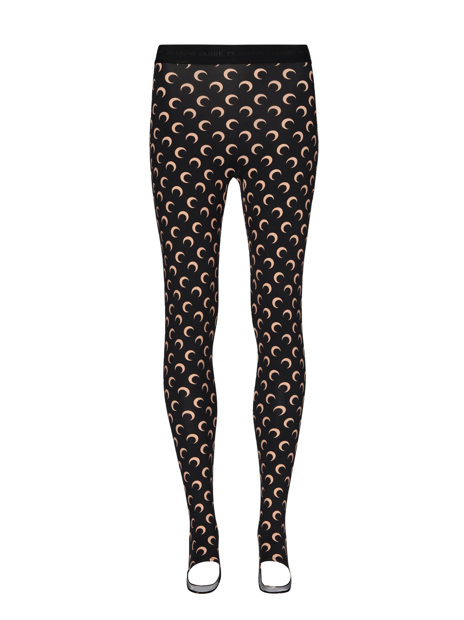Leggings con staffe in jersey riciclato Moon, stampa Moon su tutta la superficie, elastico in vita con logo, staffe sui piedi, 88% poliammide, 12% elastan