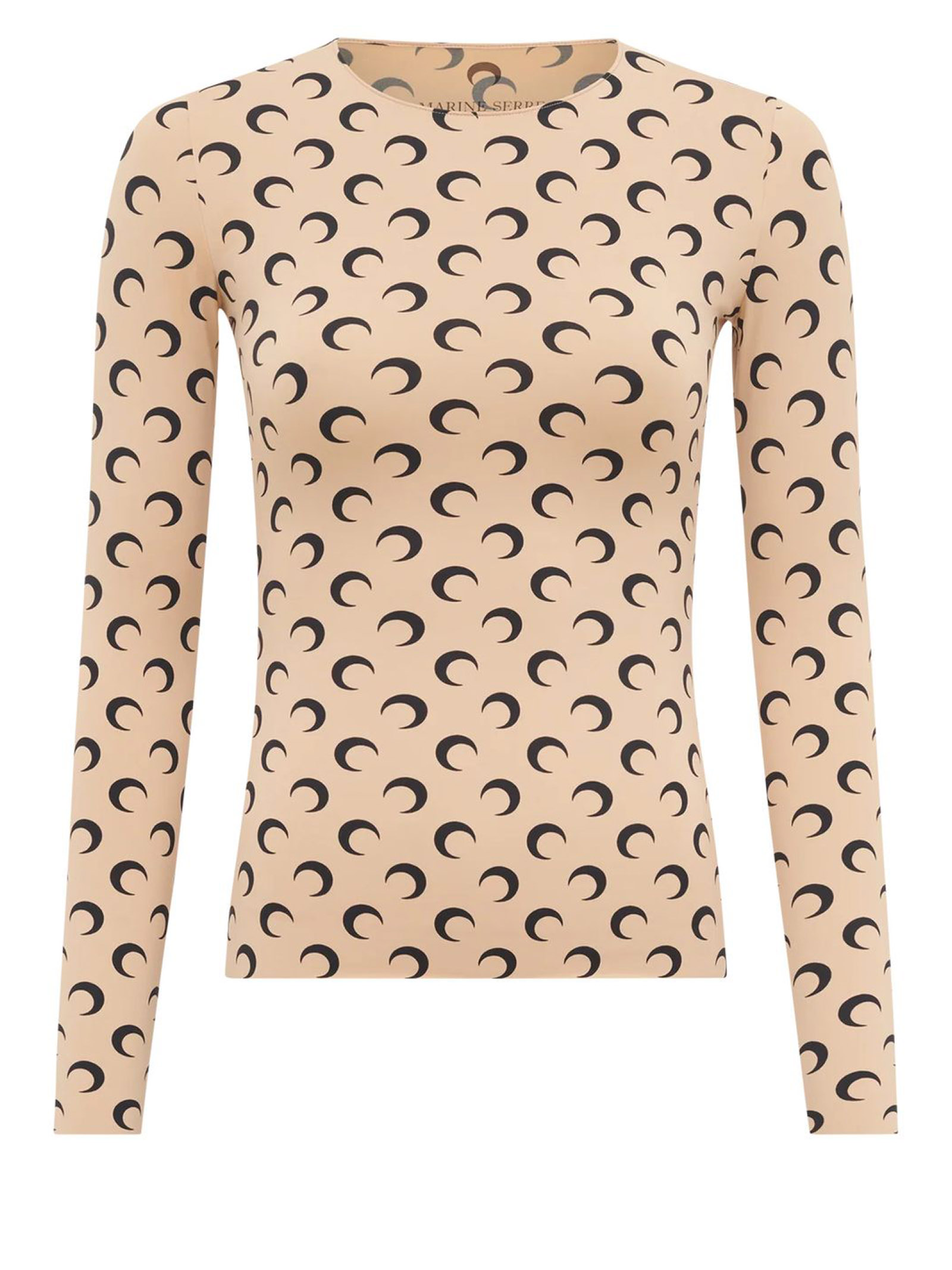 Maglia a girocollo Second Skin in jersey riciclato Moon, con stampa Moon su tutta la superficie, scollo rinforzato, polsini e orlo rifiniti con bordi grezzi