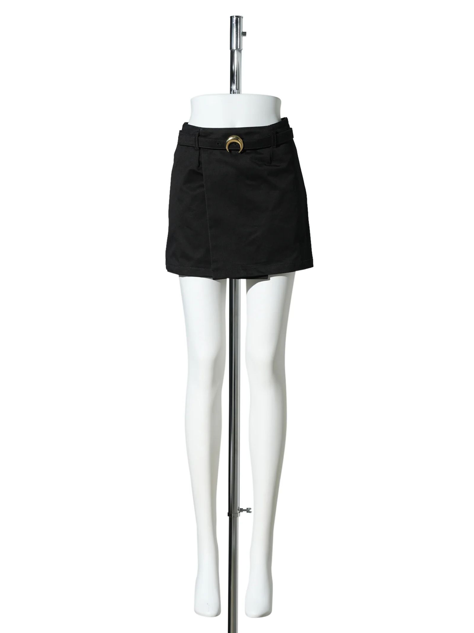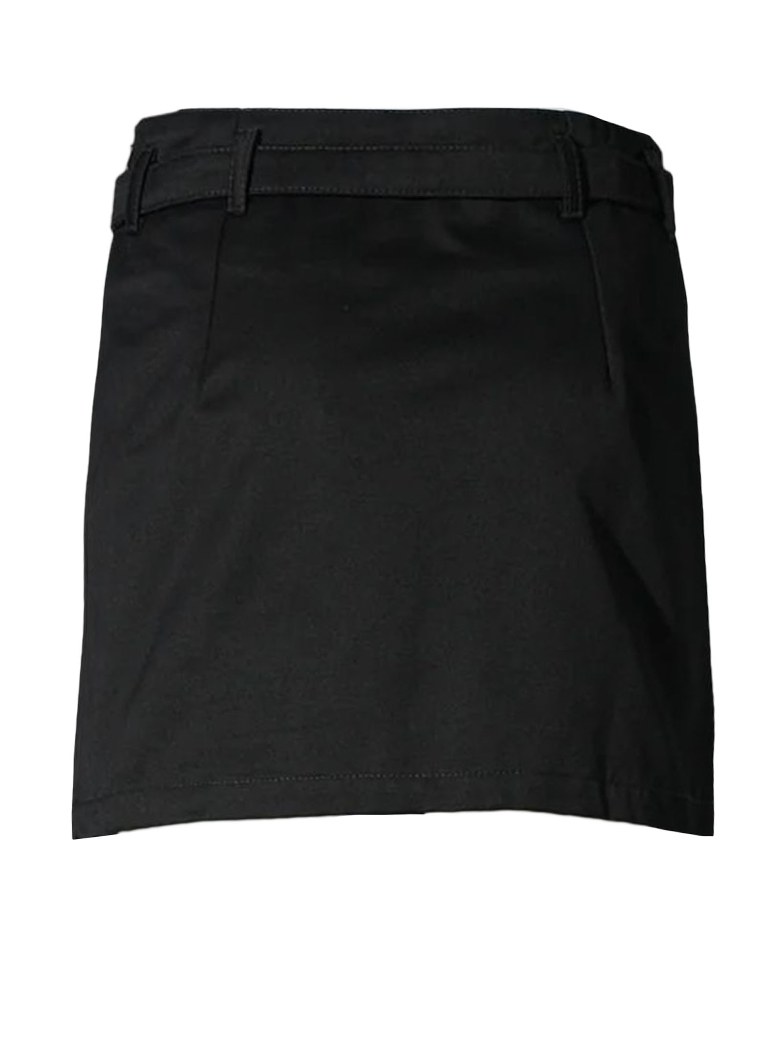 Minigonna in cotone nero con fibbia in metallo color oro, cintura