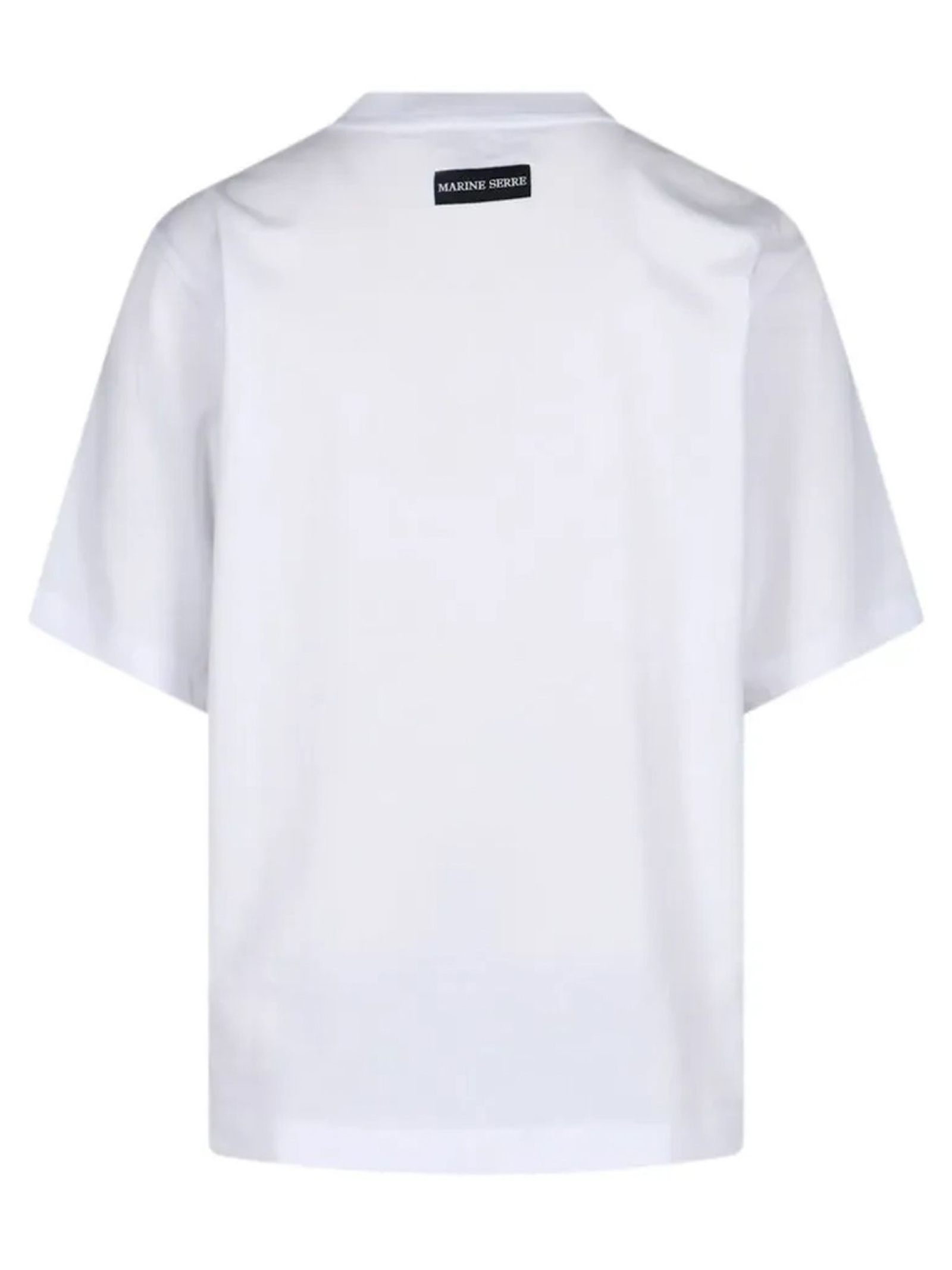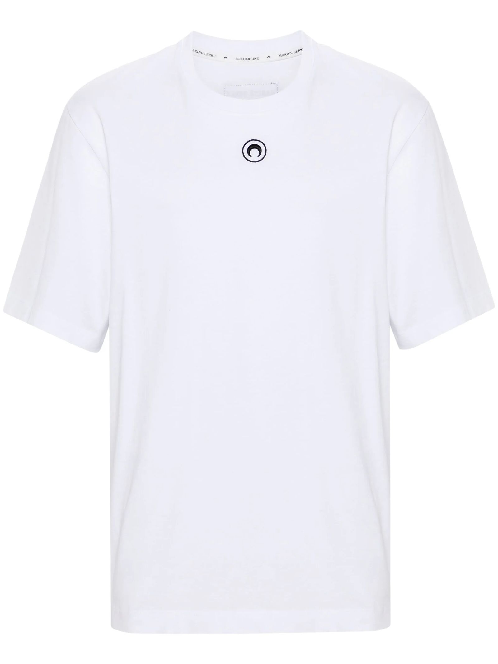 T-shirt in cotone bianco caratterizzata da ricamo Moon sul petto arricchita da etichetta logata sul retro, girocollo a costine
