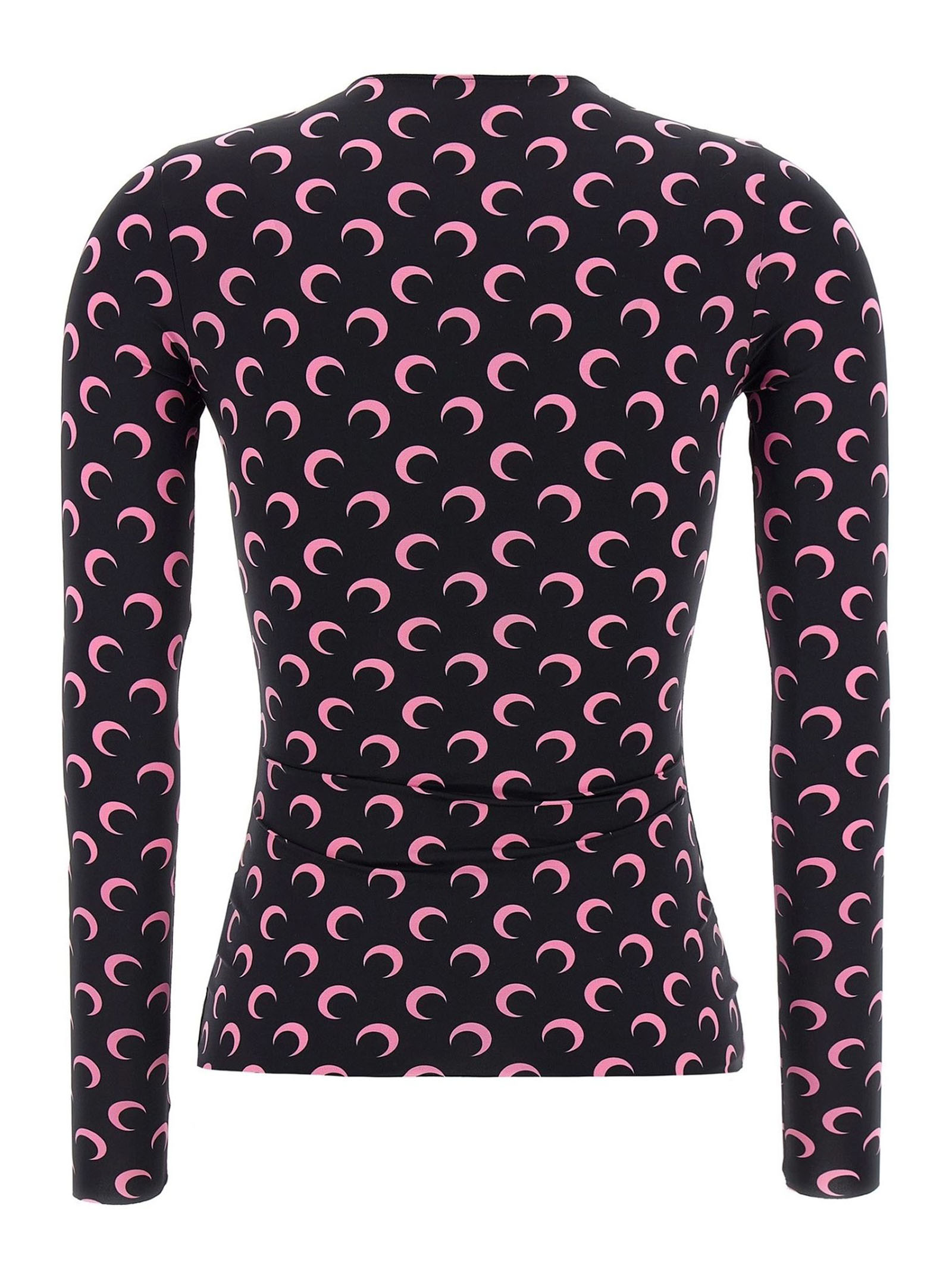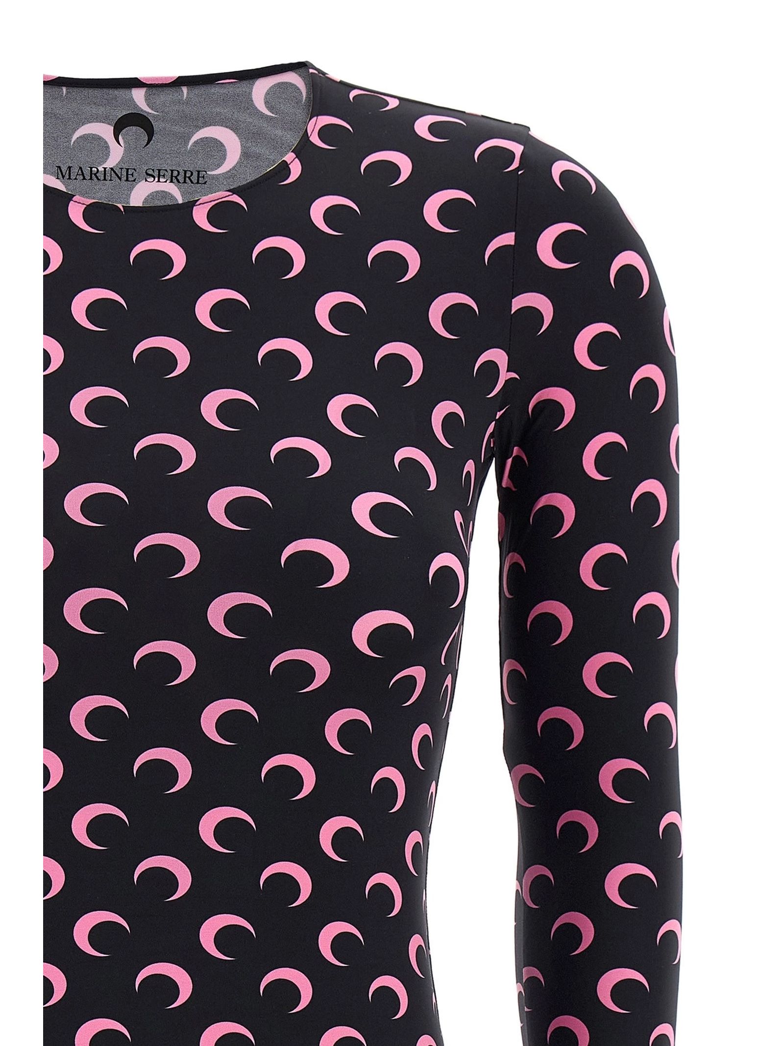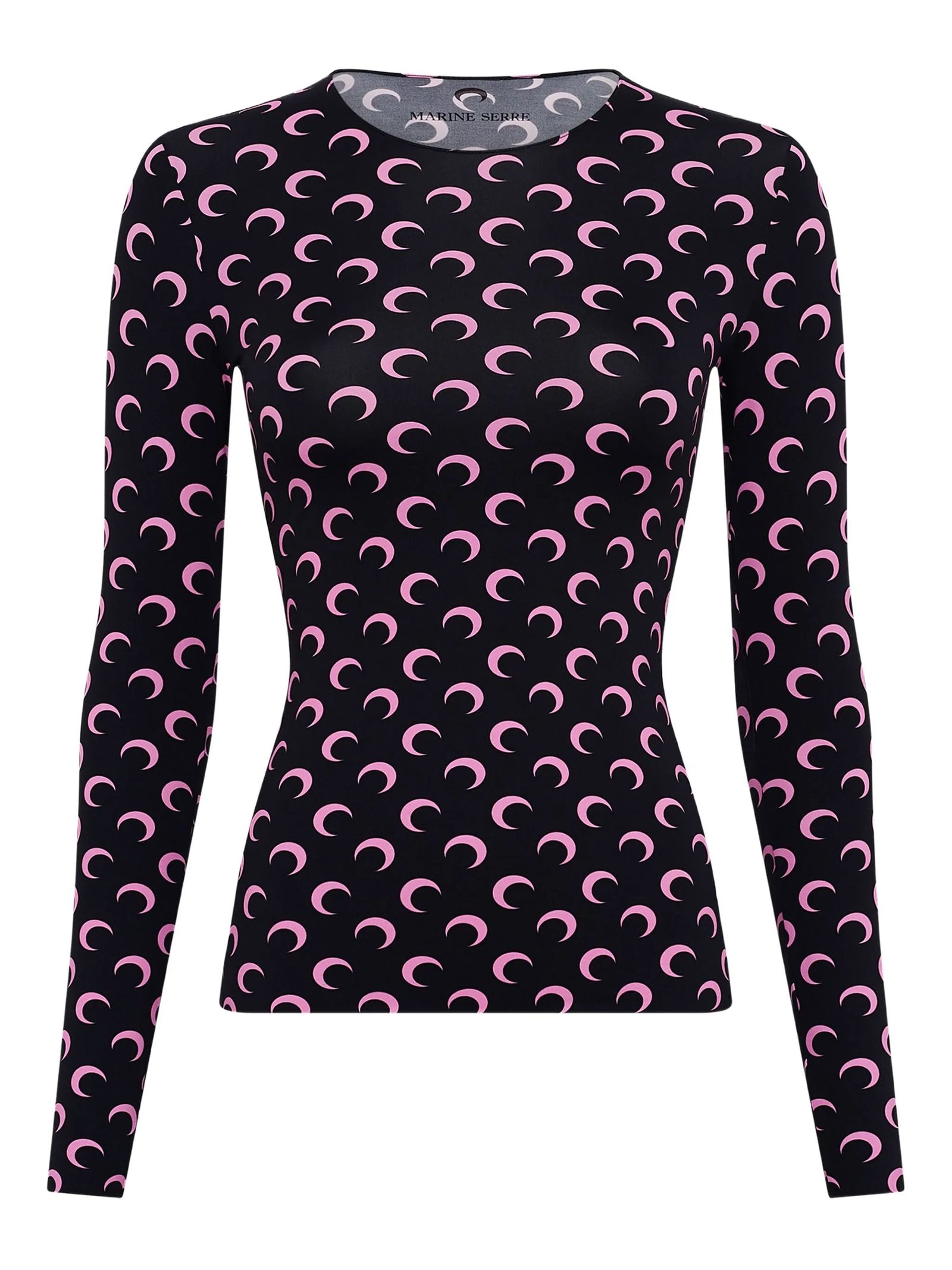 T-shirt in tessuto elasticizzato Moon Printed Jersey Second Skin con stampa logo all-over, girocollo e maniche lunghe