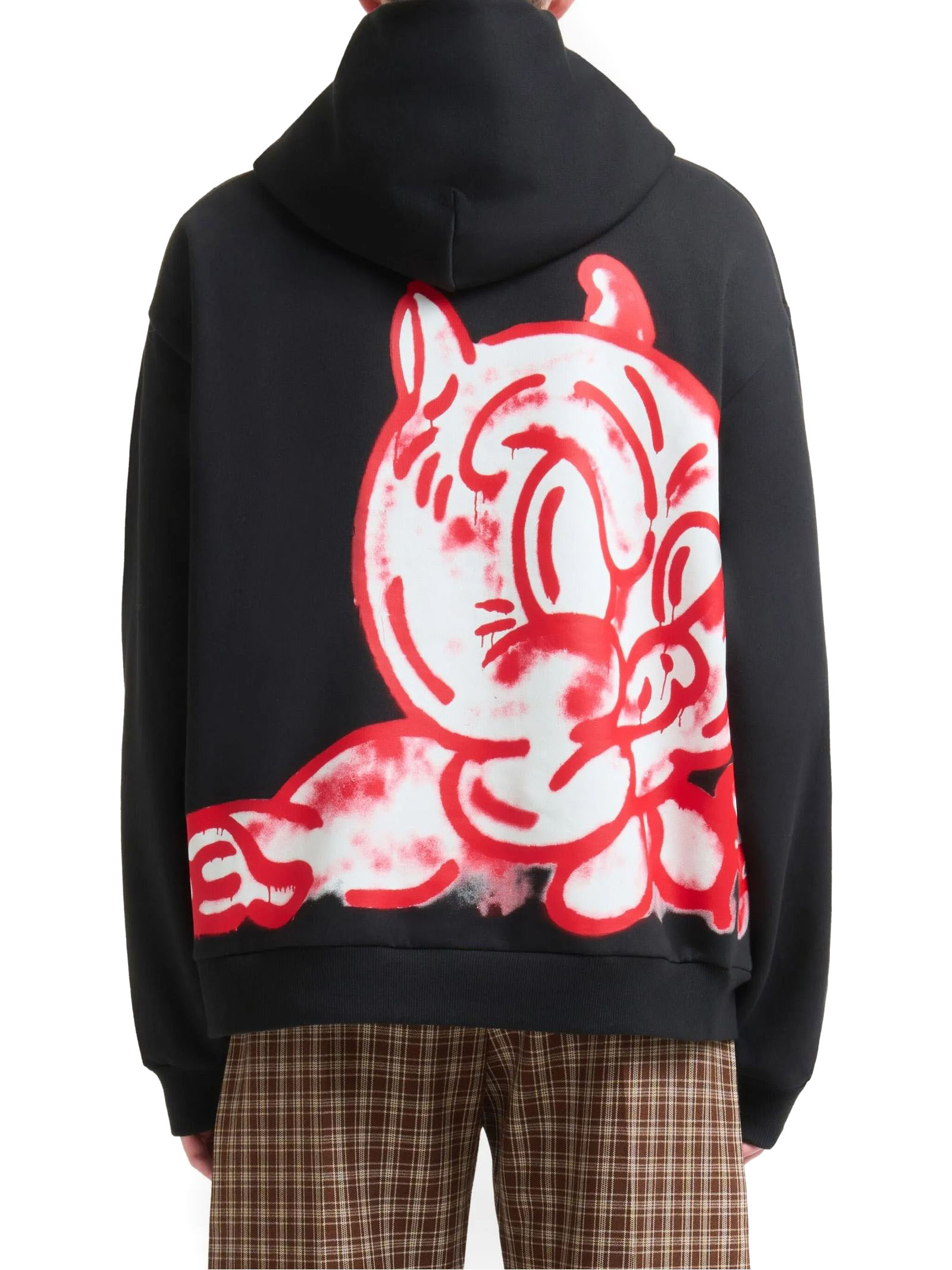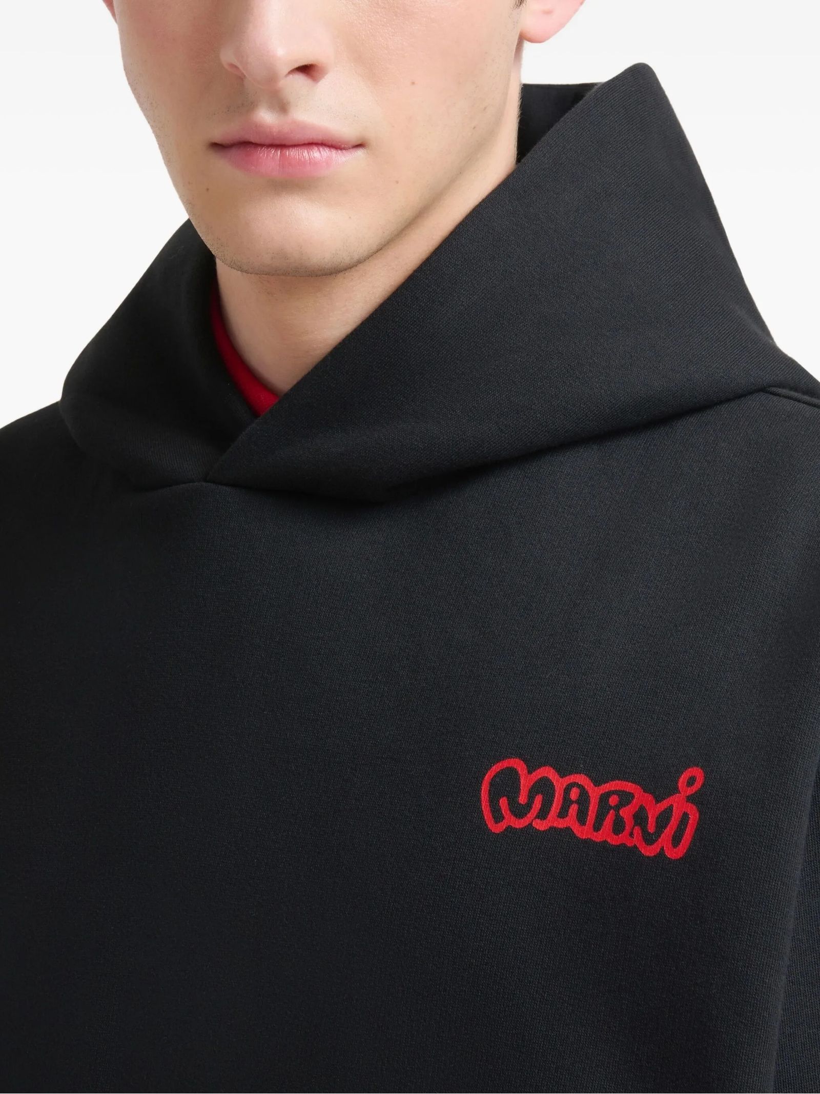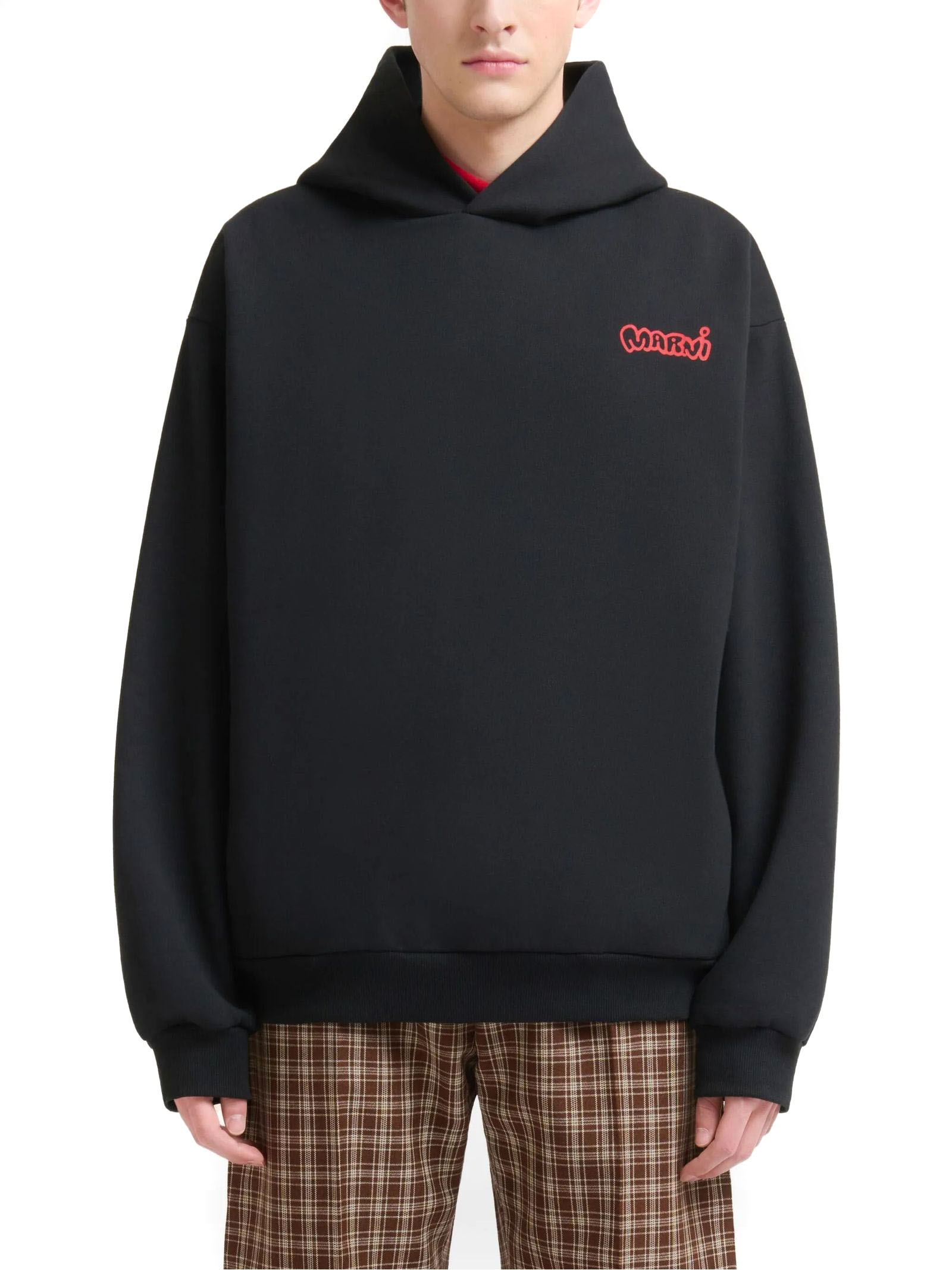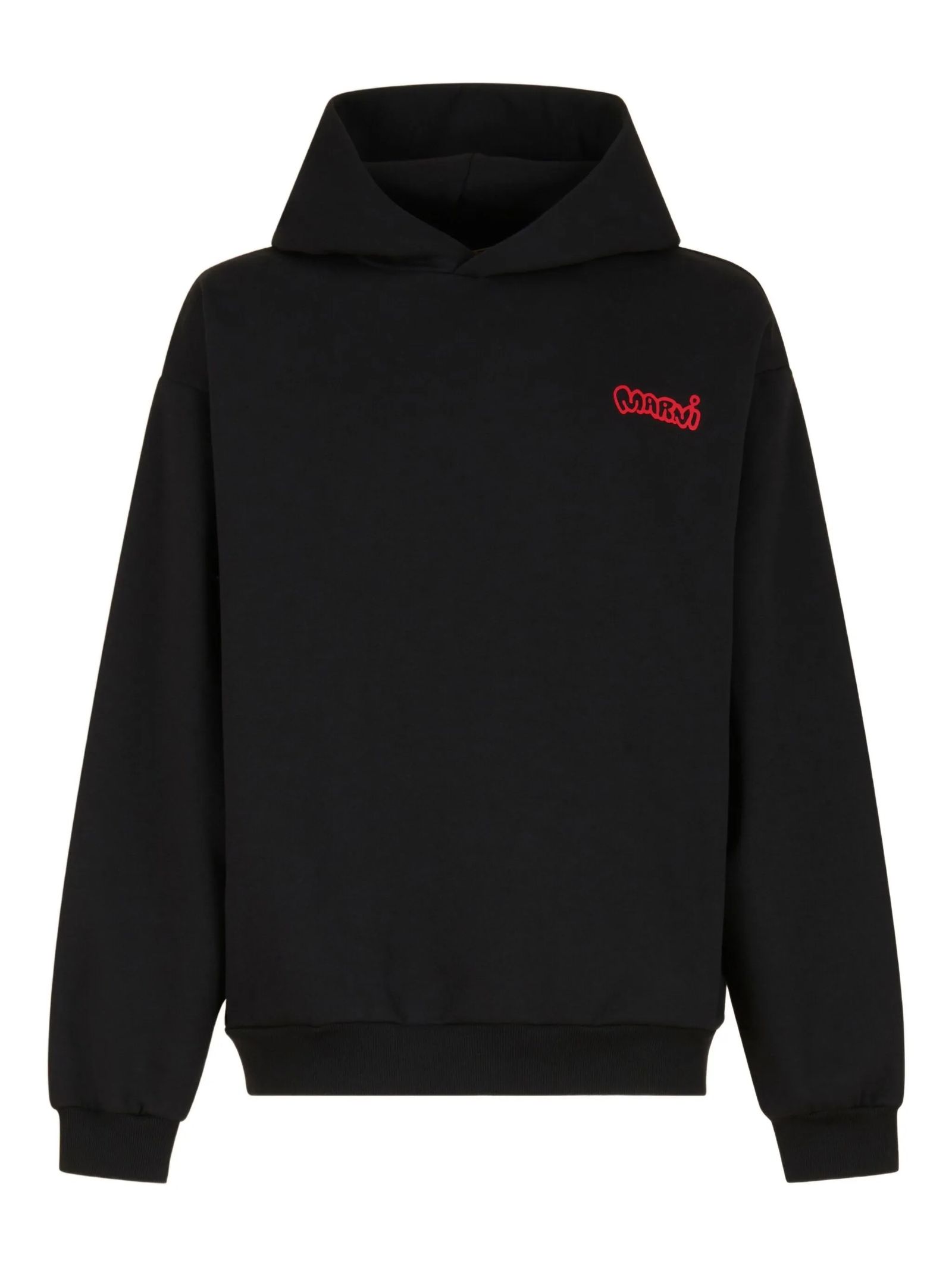 Felpa in cotone nero, stampa con logo, maniche a spalla bassa, orli a coste