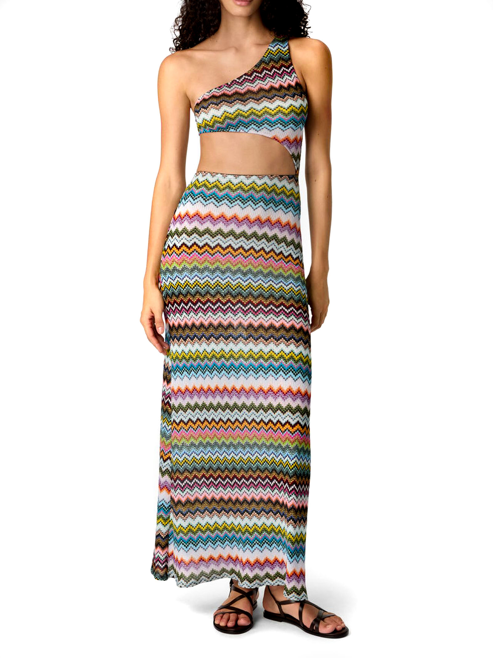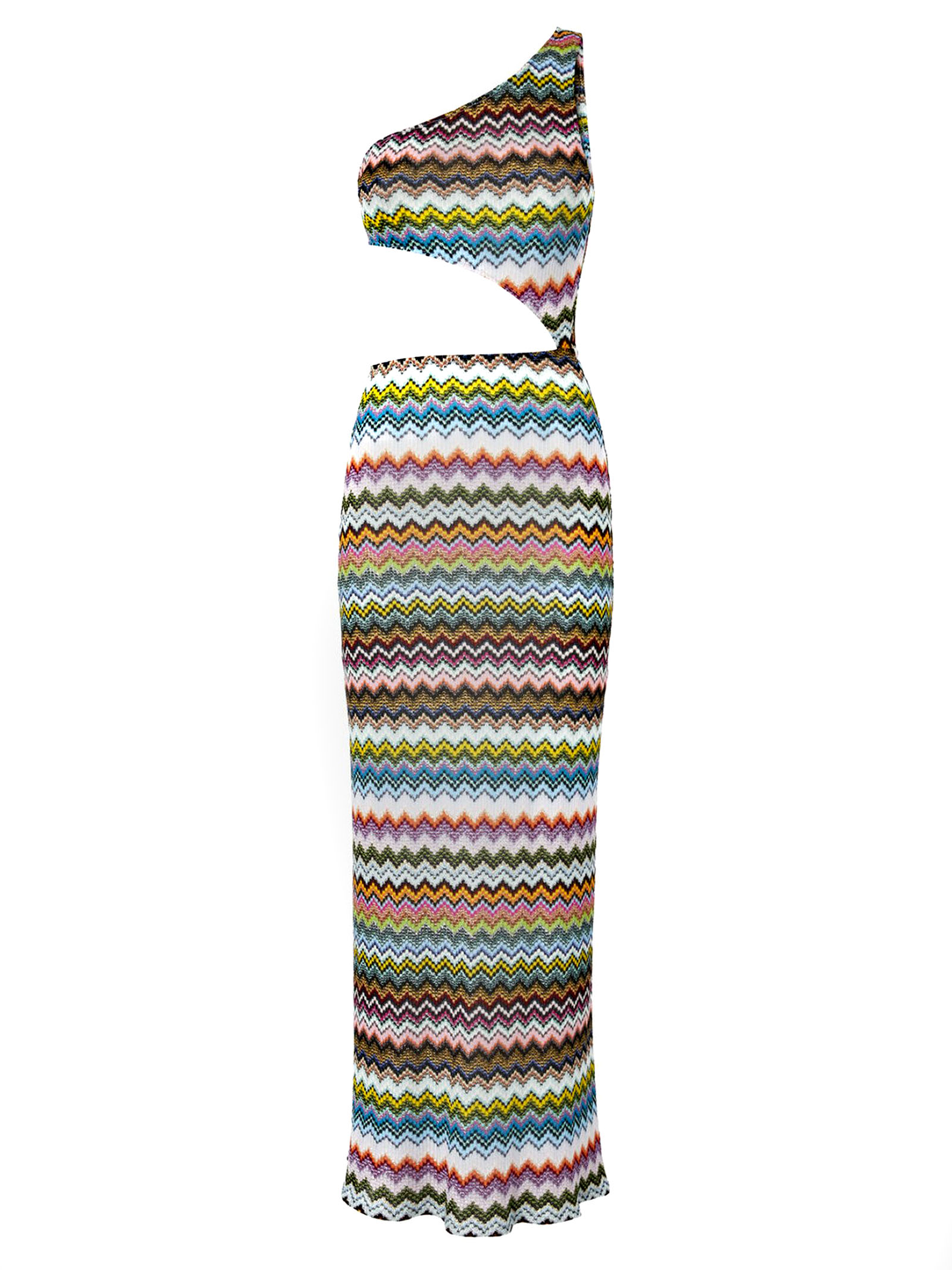 Copricostume monospalla in viscosa lamé con motivo zig zag effetto pixel