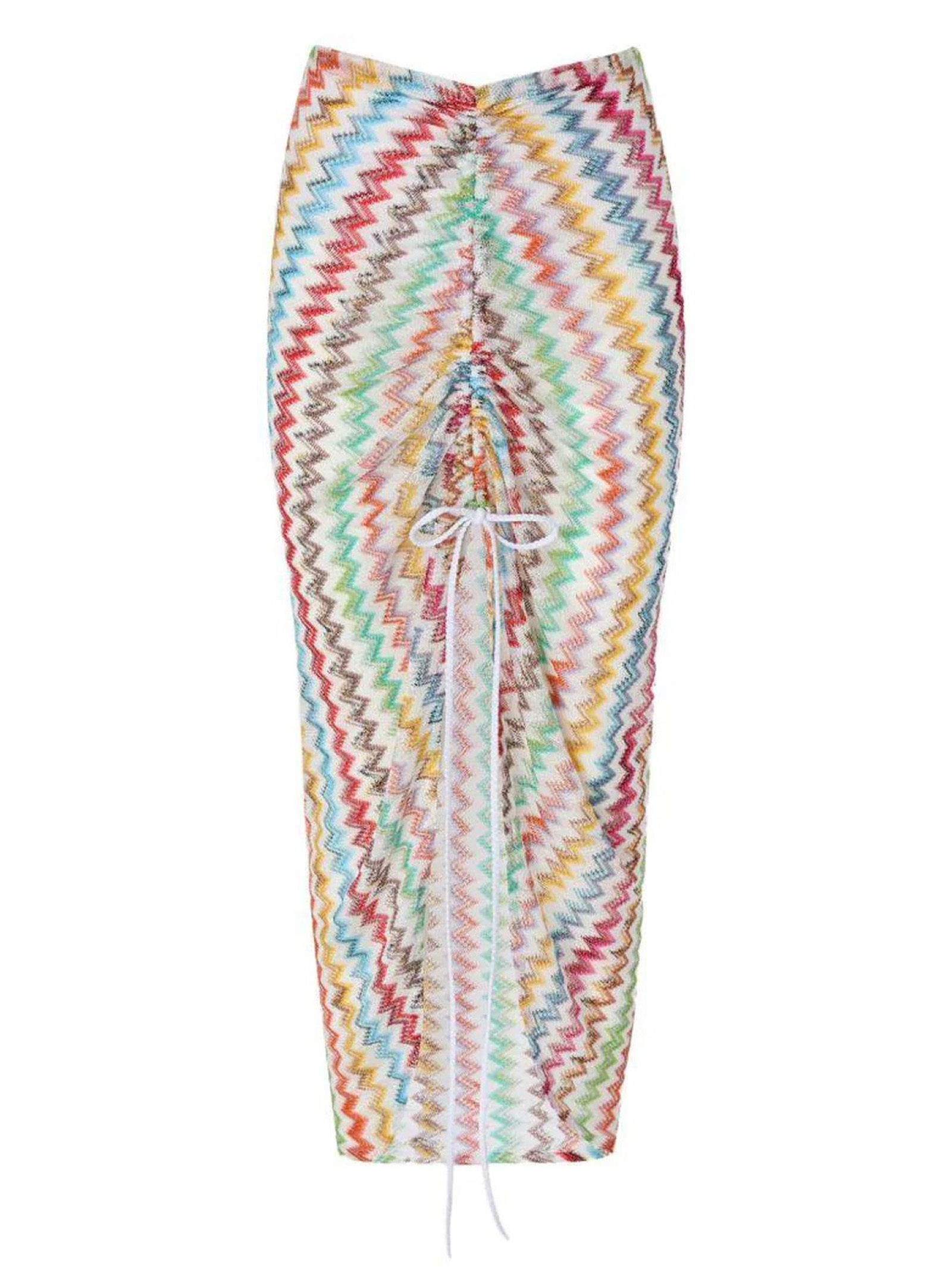 Gonna lunga arricciata, lavorazione raschel con micro zig zag, misto viscosa lamé