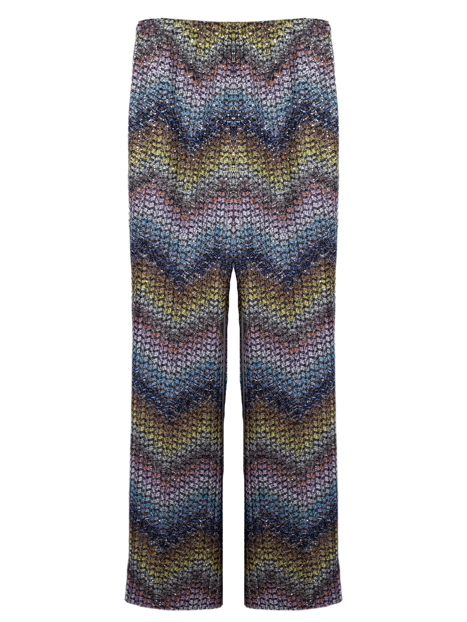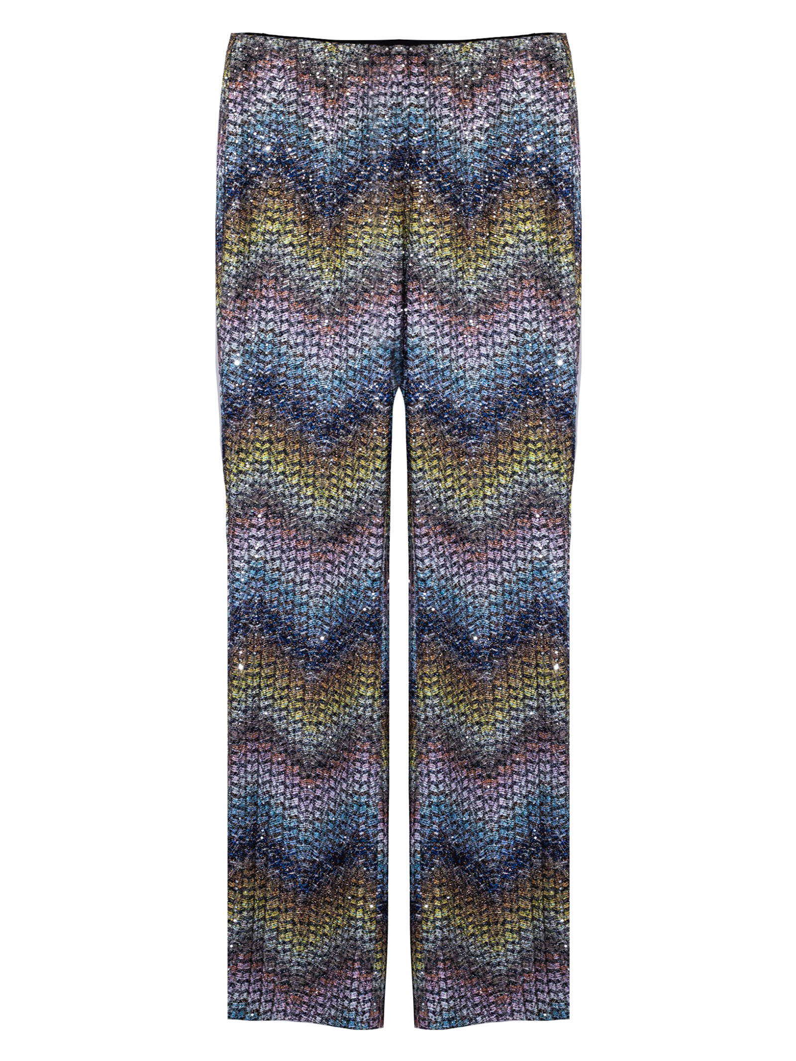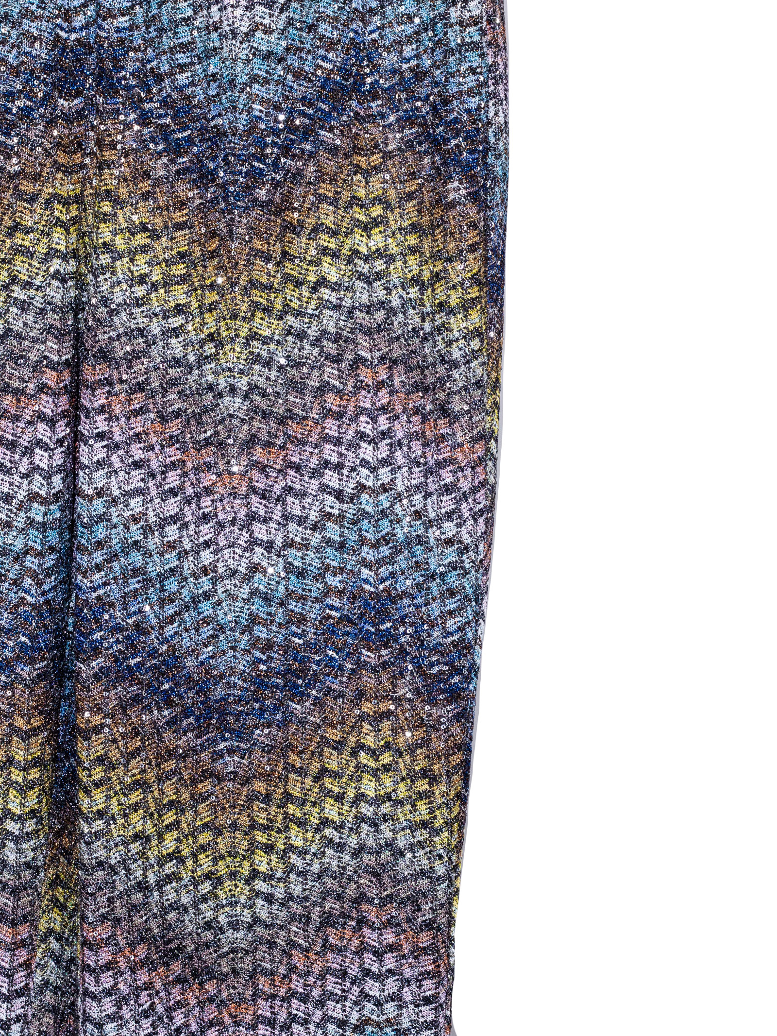 Pantalone in viscosa lamé lavorazione a telaio Caperdoni con applicazione micro paillettes all-over, elastico in vita, gamba dritta