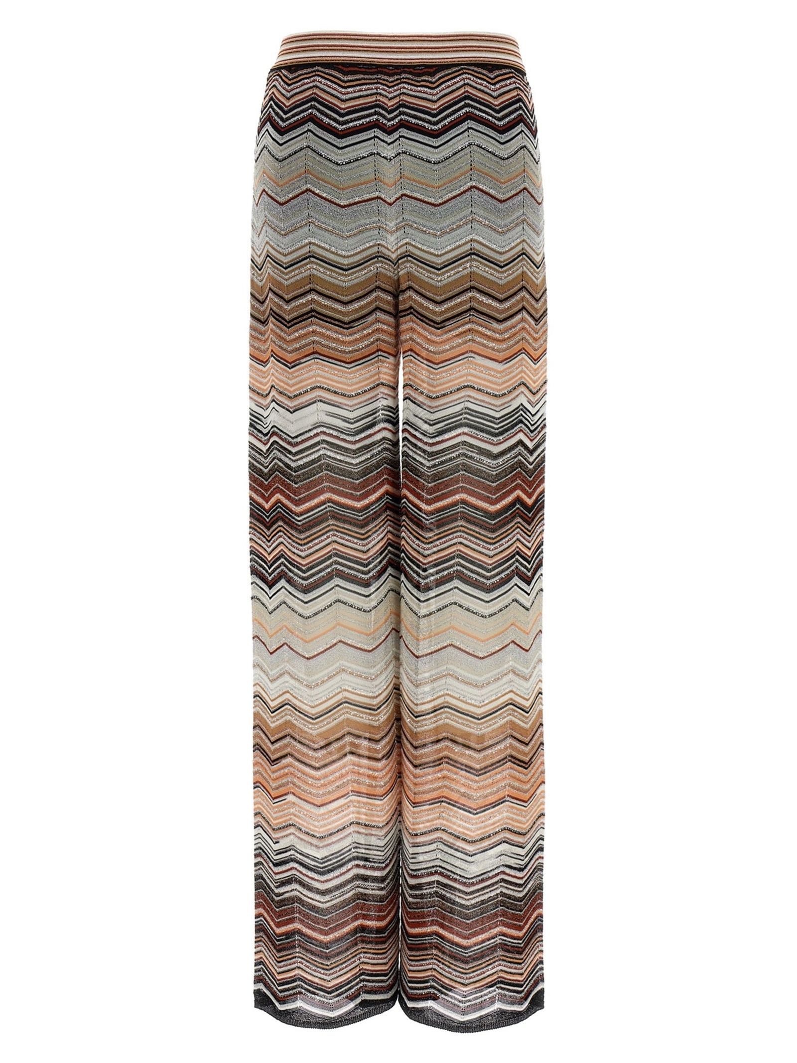 Pantaloni ampi in viscosa chevron lamé con paillettes all-over semitrasparente, elastico in vita, gamba ampia e dritta