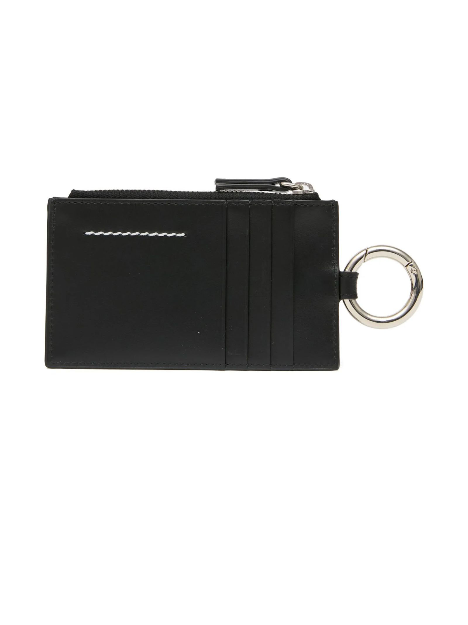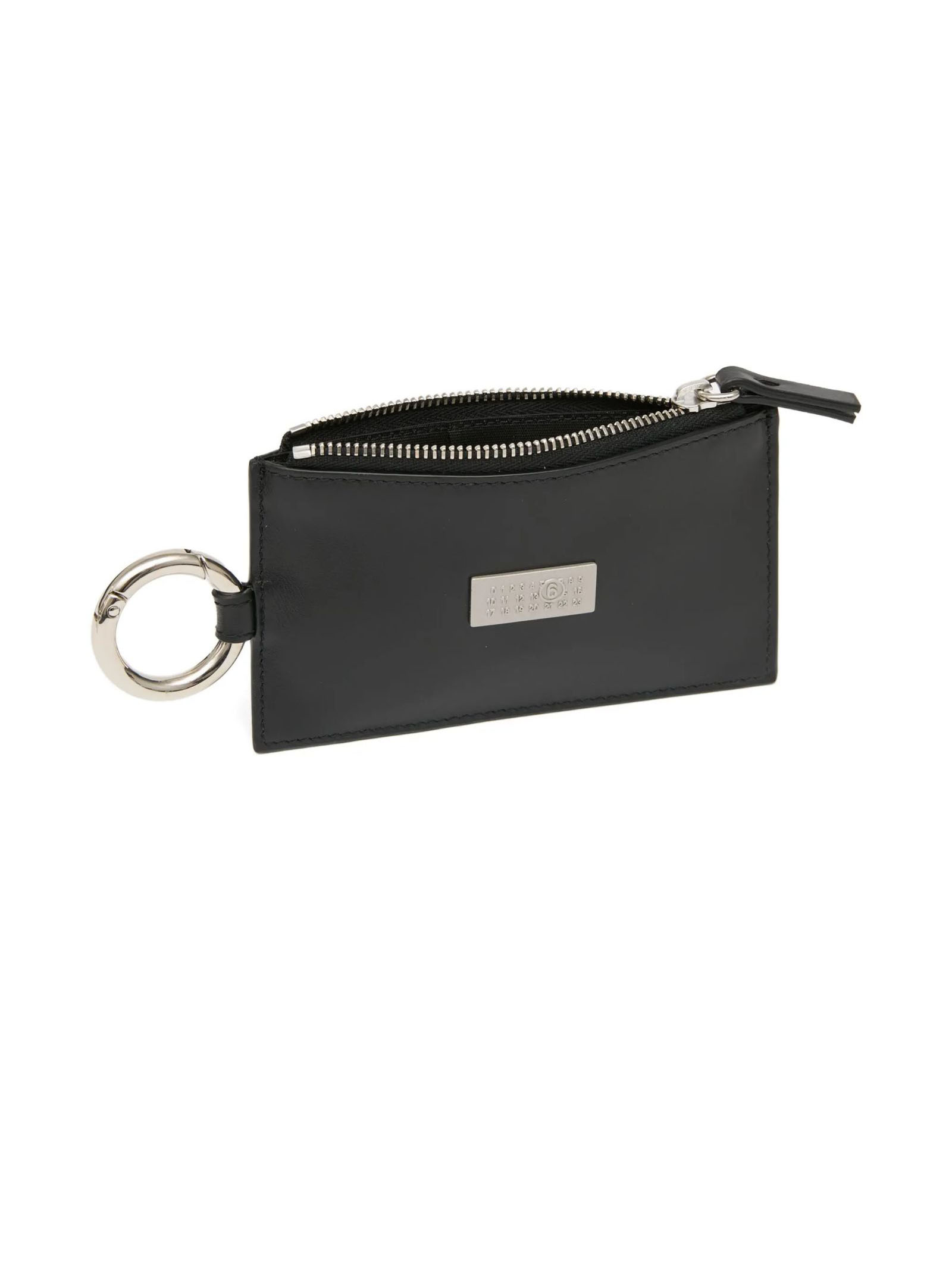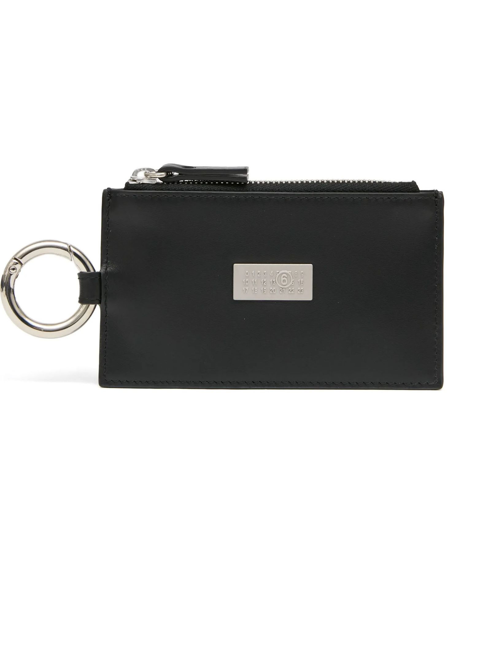 Astuccio portachiavi numeric in pelle nera, placca logo sul davanti, dettaglio portachiavi sul lato, chiusura con zip nella parte superiore, scomparti per carte sul retro, L13 x A7 x P0,7 cm
