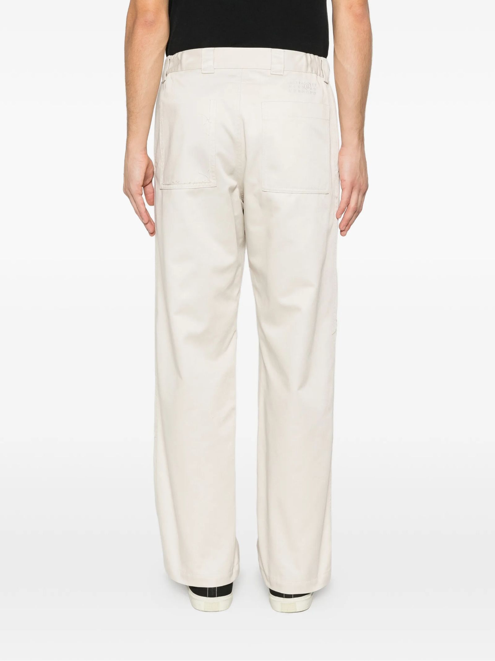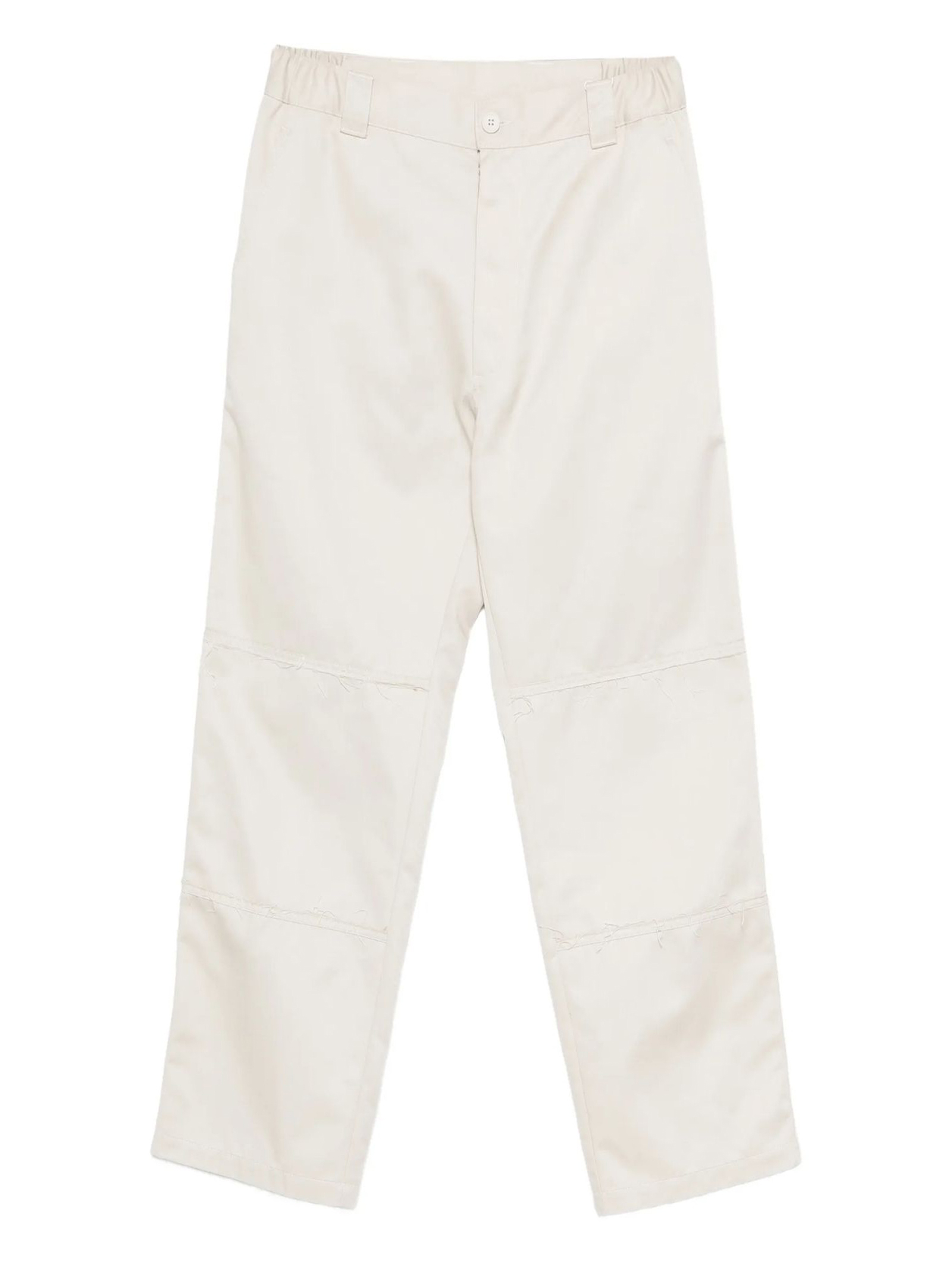 Pantaloni in misto cotone beige, inserti, taglio dritto, vita elasticizzata, design con abbottonatura, passanti