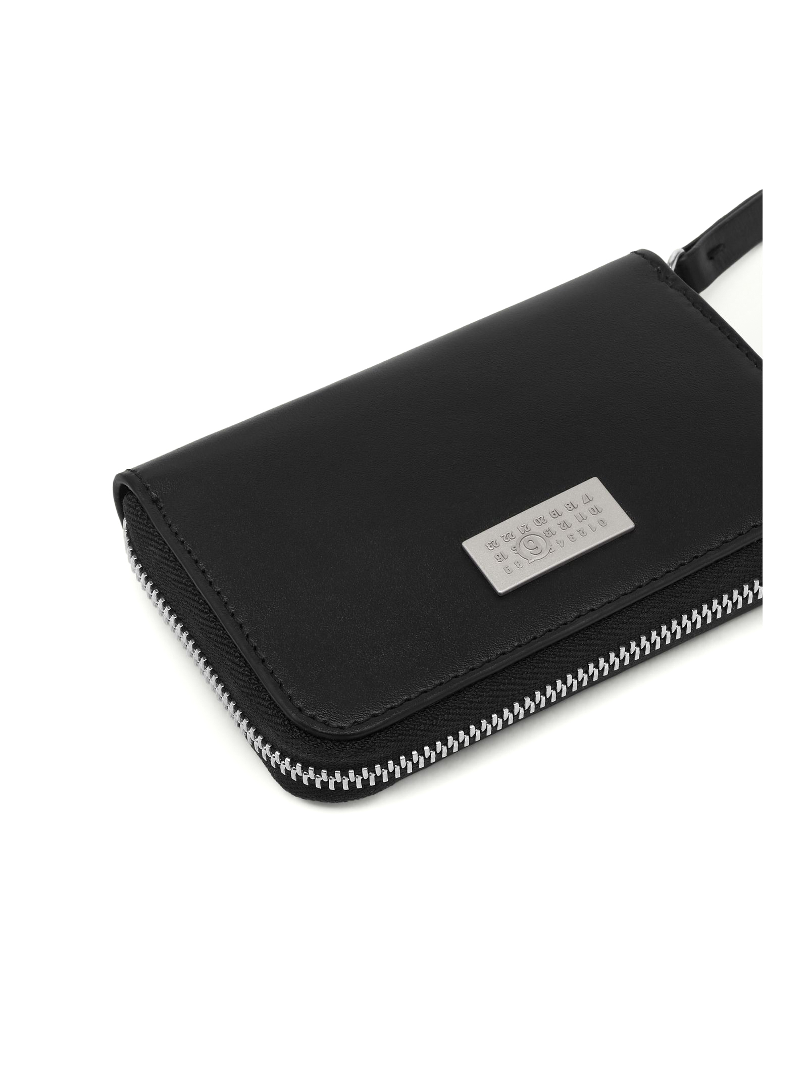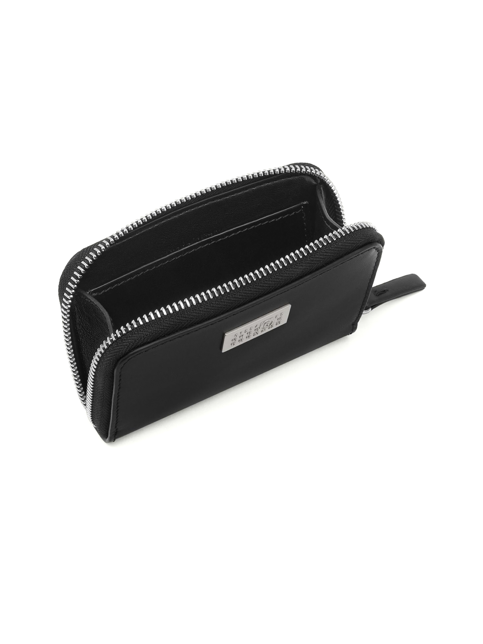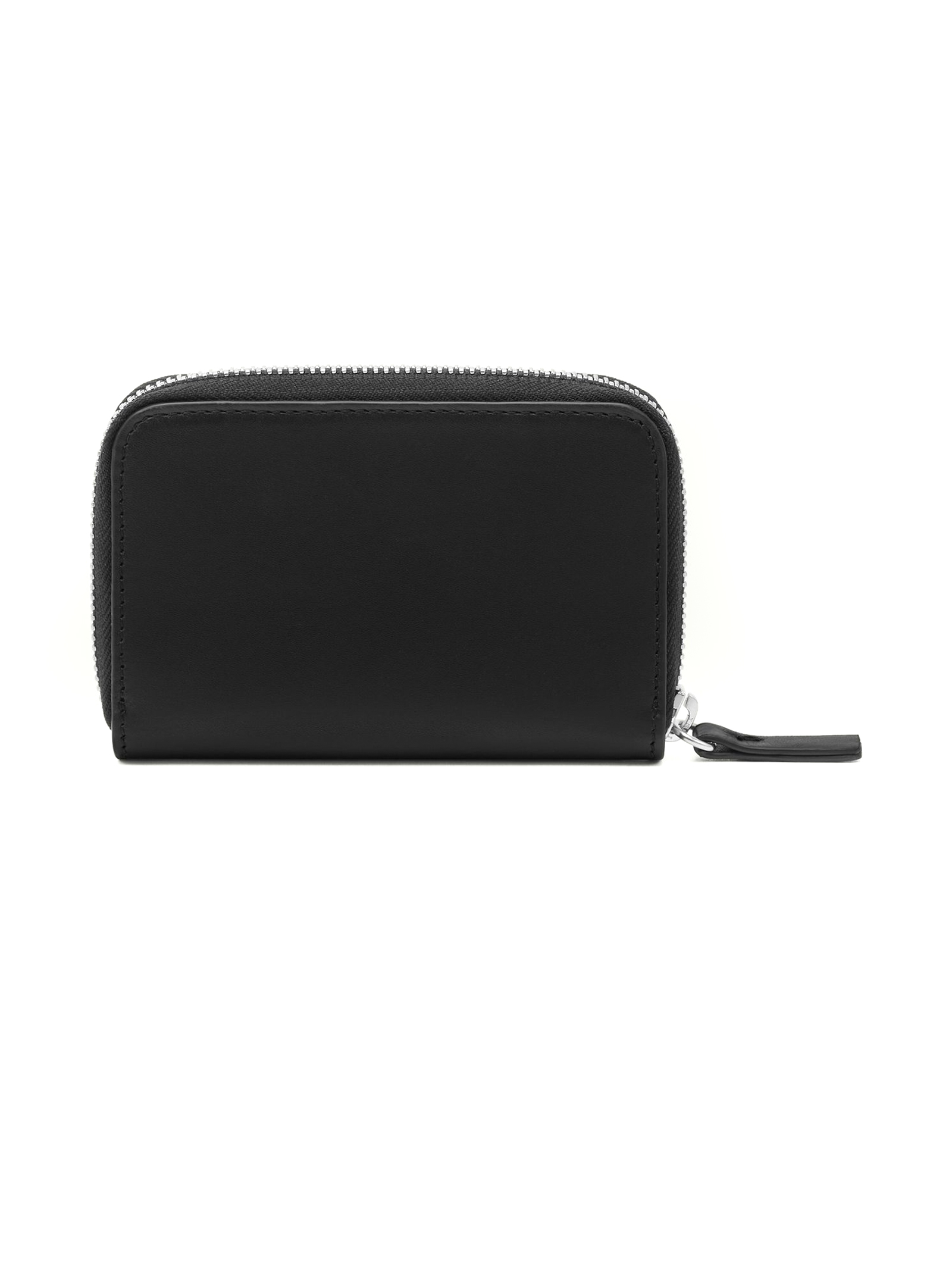 Portafoglio con zip in pelle di vitello nero, chiusura con zip, placca con logo, forma rettangolare, L15 x A x P2 cm