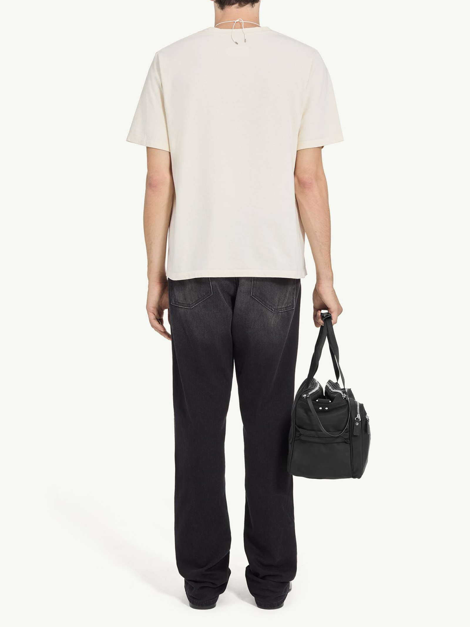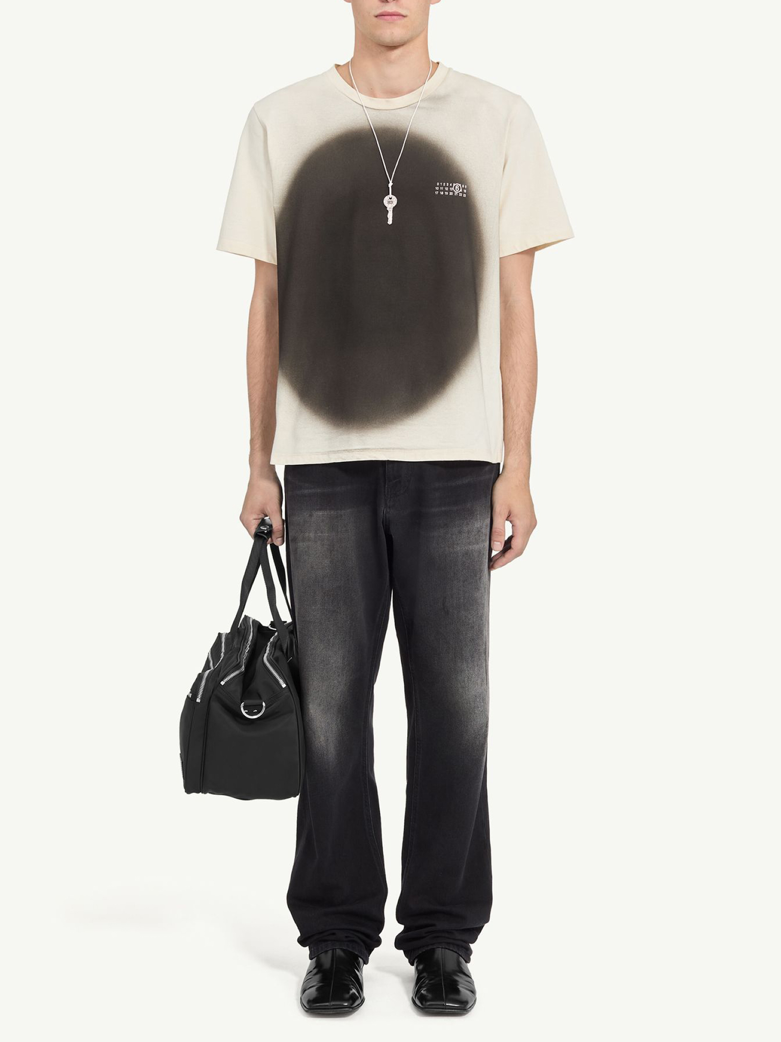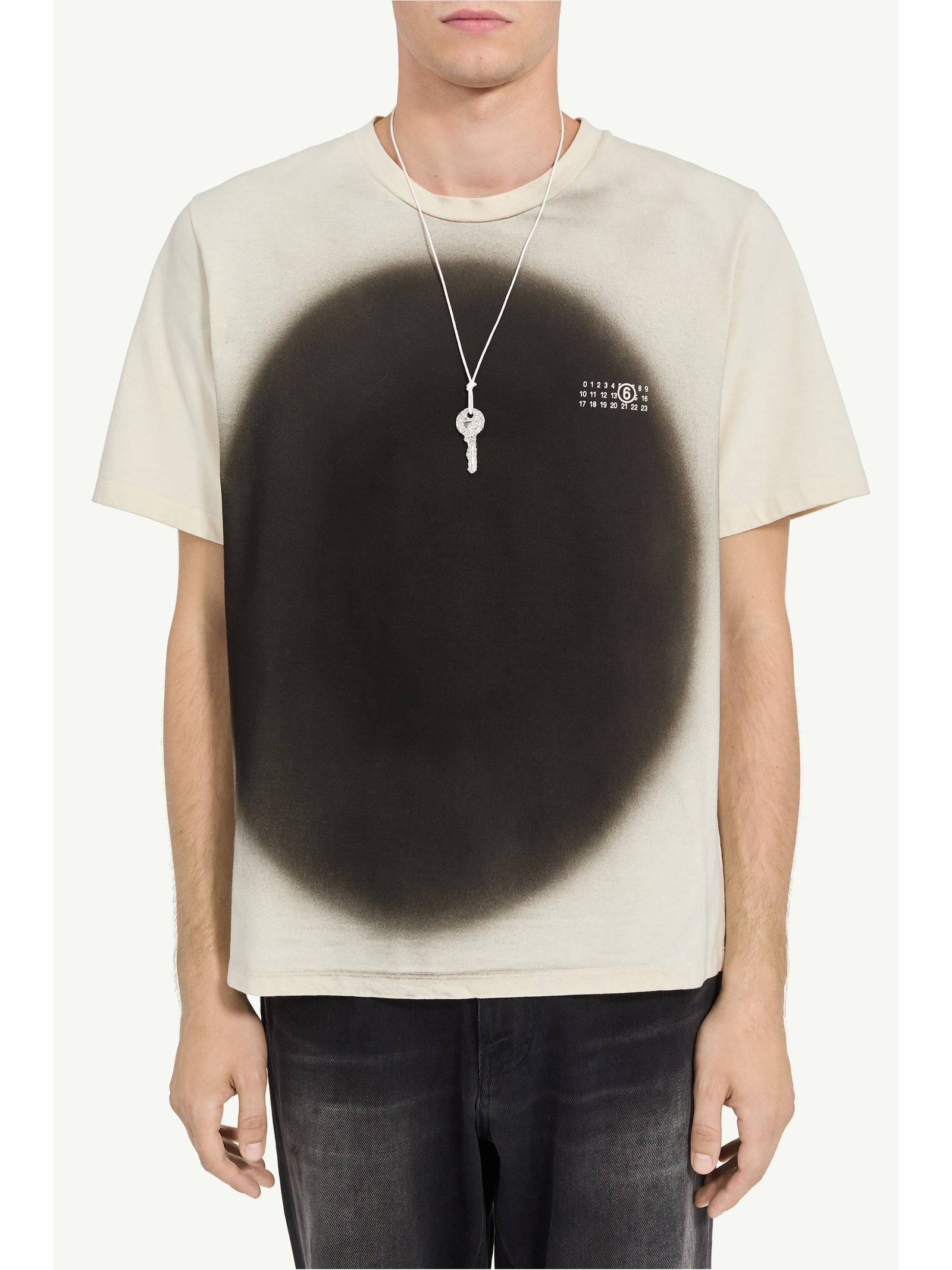 T-shirt in cotone bianco crema, stampa effetto spray sul davanti, maniche corte, scollo rotondo
