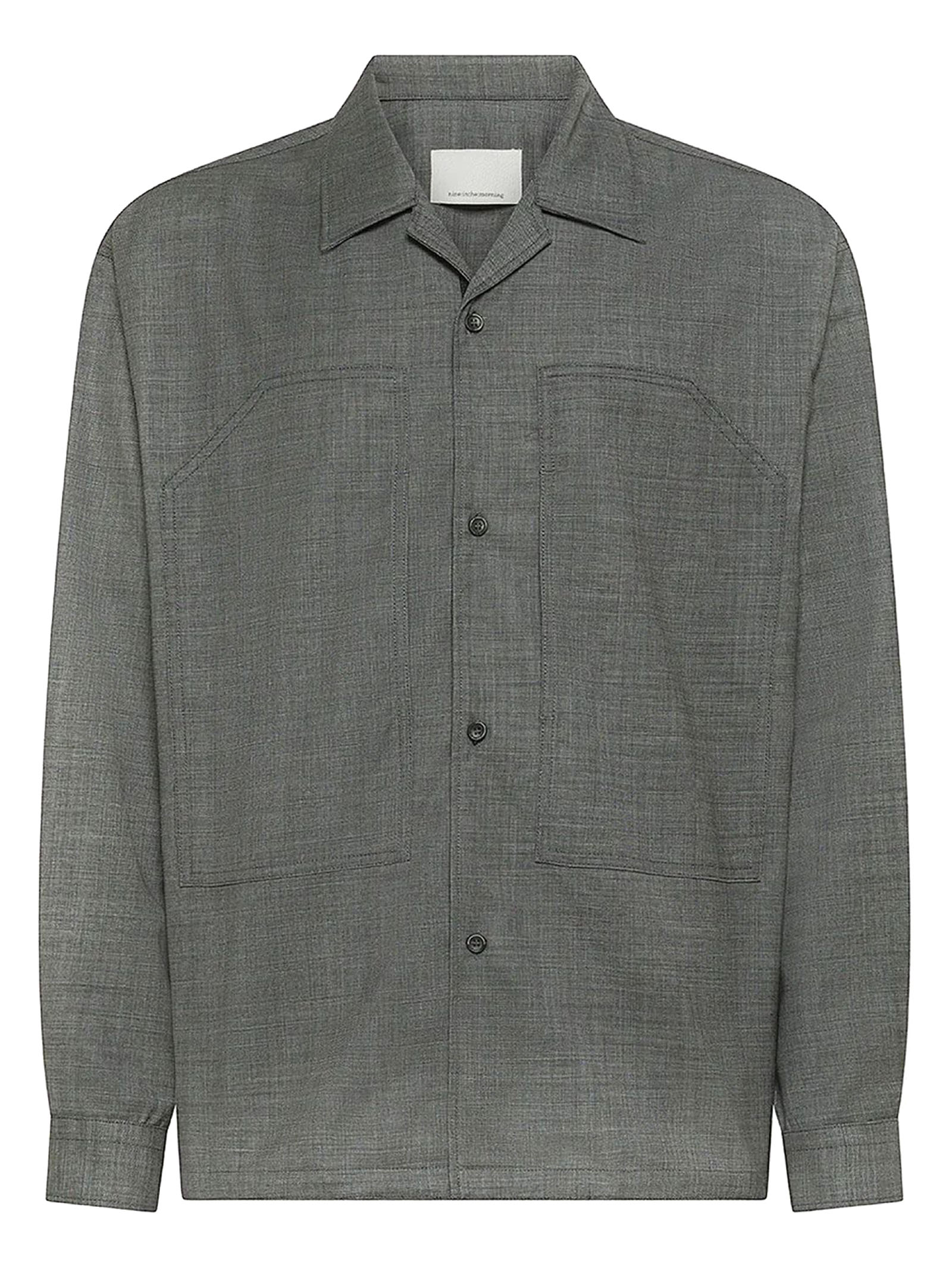 Giacca-camicia Benito in morbida lana estiva. Presenta un collo cubano dal taglio morbido e autentici dettagli ispirati allo stile militare; il capo è rifinito con bottoni in corno e l'etichetta interna con il logo distintivo nine:inthe:morning