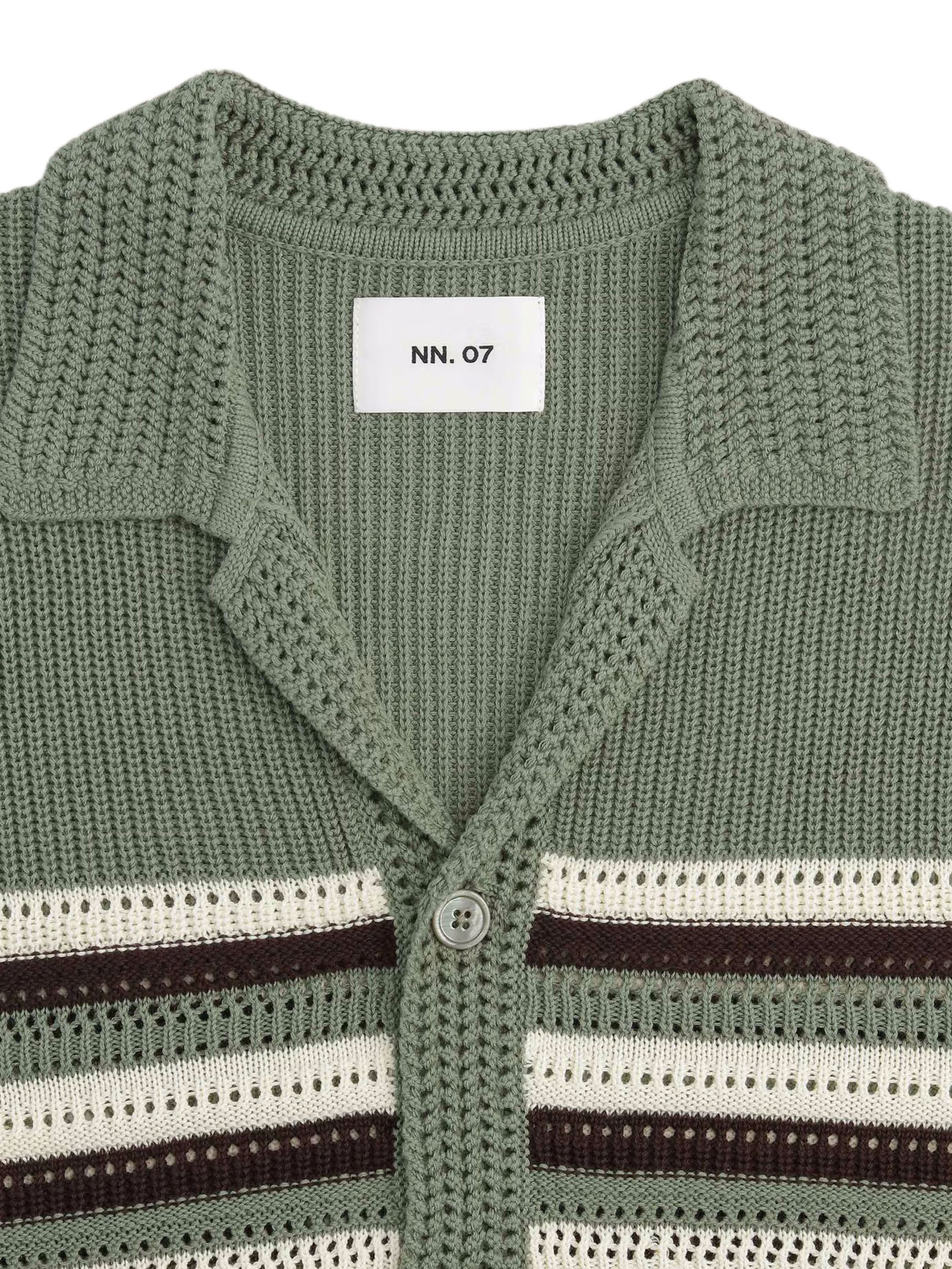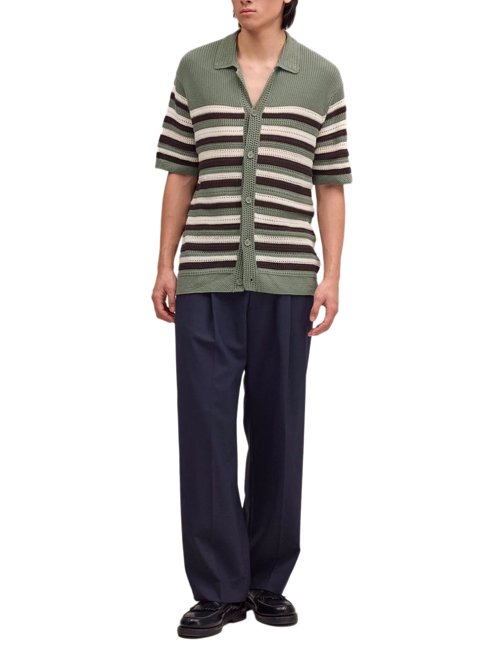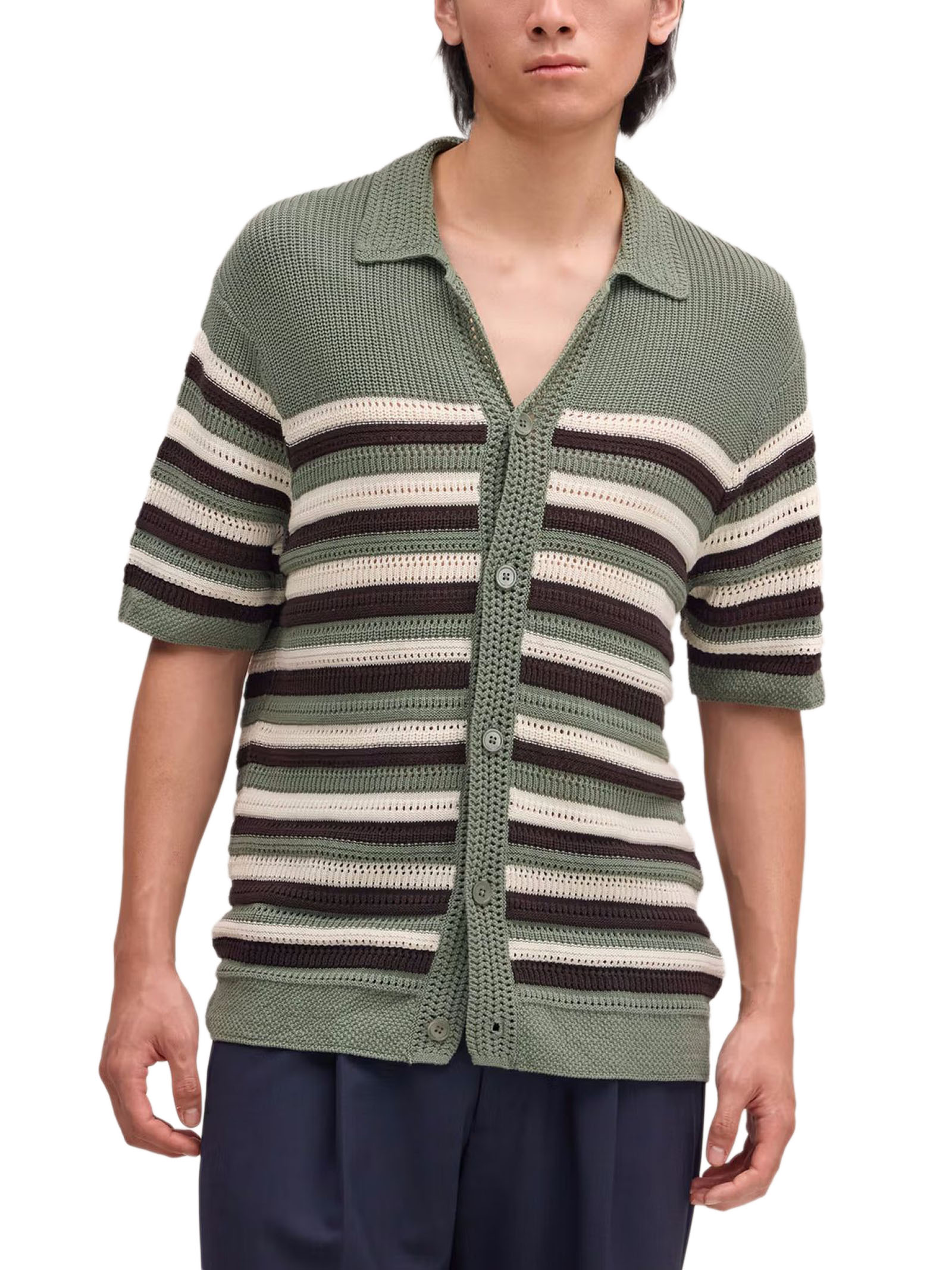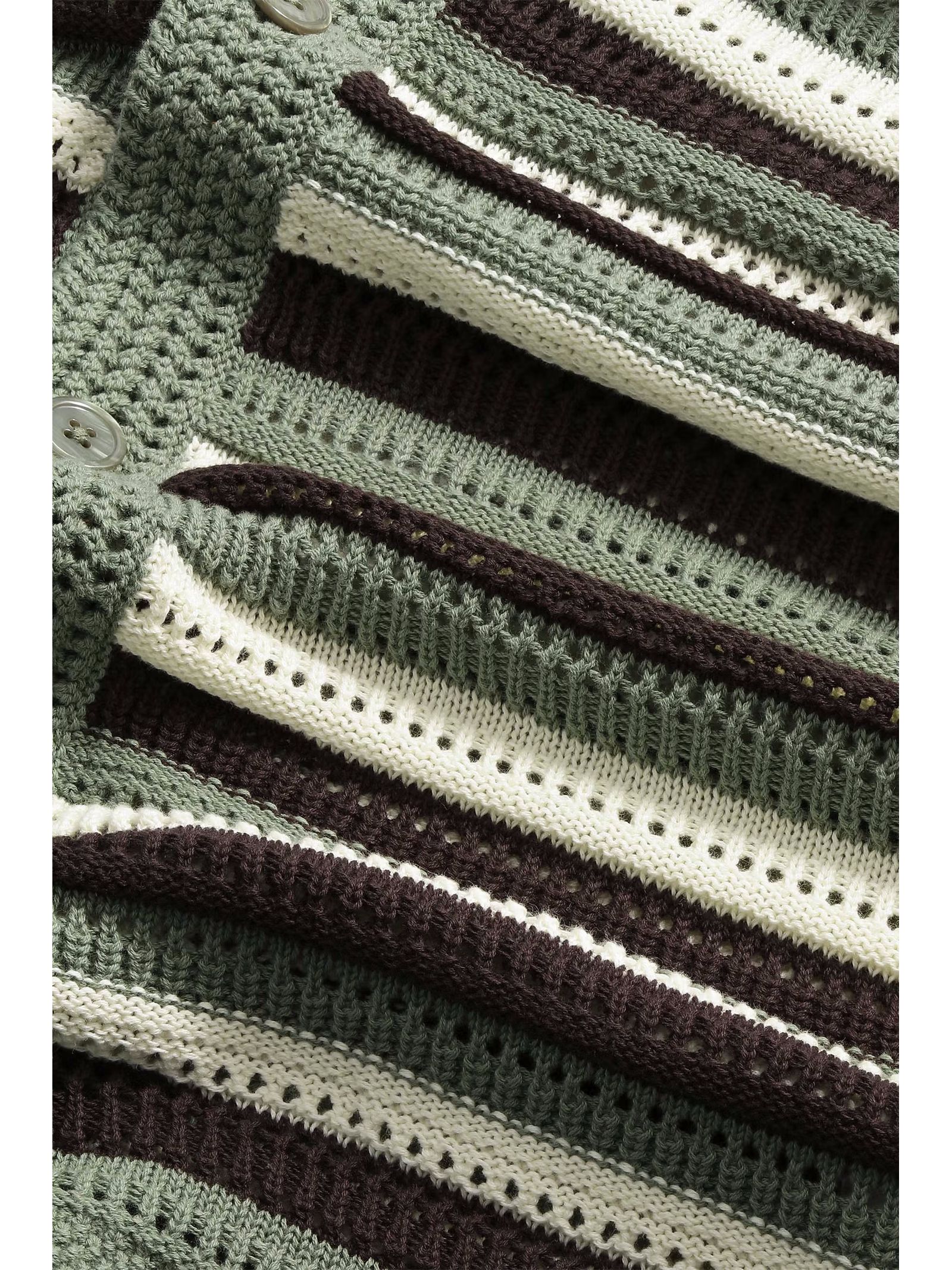 Cardigan leggero in cotone, vestibilità regolare, leggero, lavorazione a maglia mista, motivo a righe, bottoni in conchiglia, cotone biologico