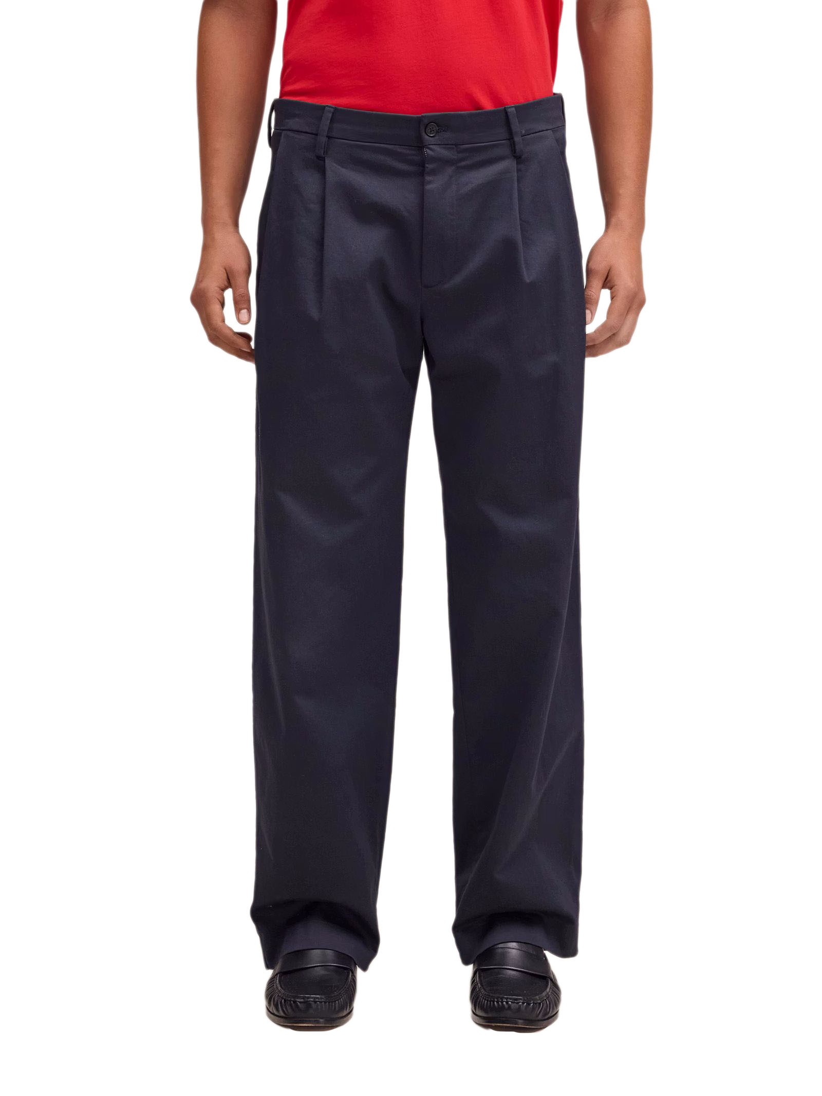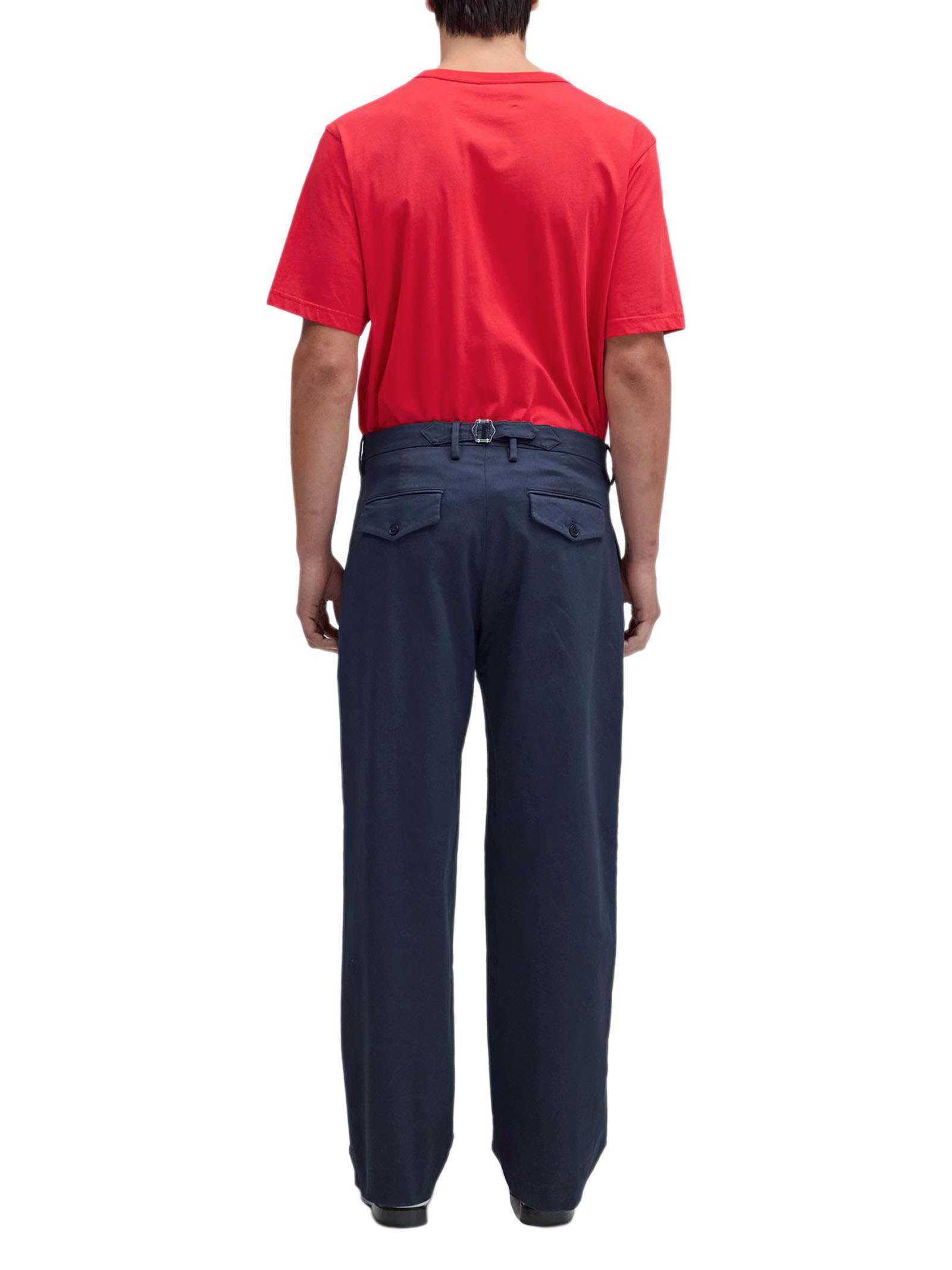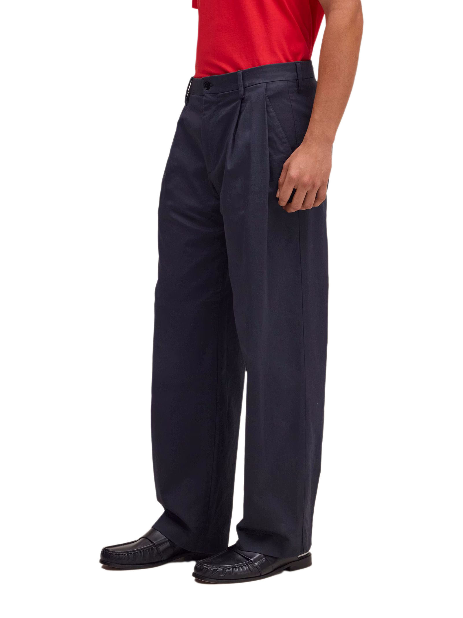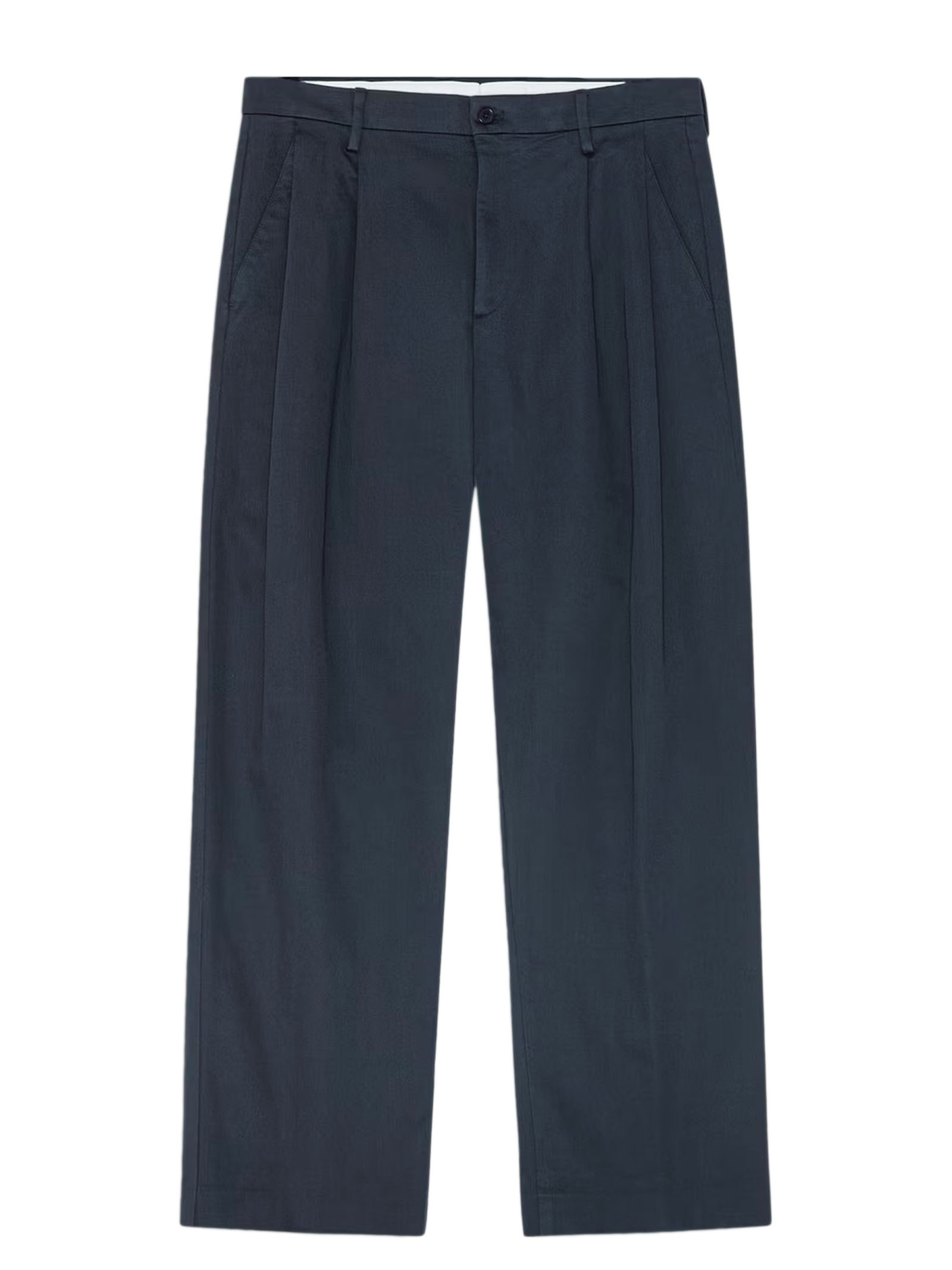 Pantaloni dalla vestibilità comoda con gamba ampia, realizzati in cotone biologico con una morbida finitura spazzolata; vestibilità comoda, gamba ampia, trama in lana spazzolata, doppie pieghe sul davanti, regolazione della cintura tramite fibbia, chiusura con bottoni in corozo