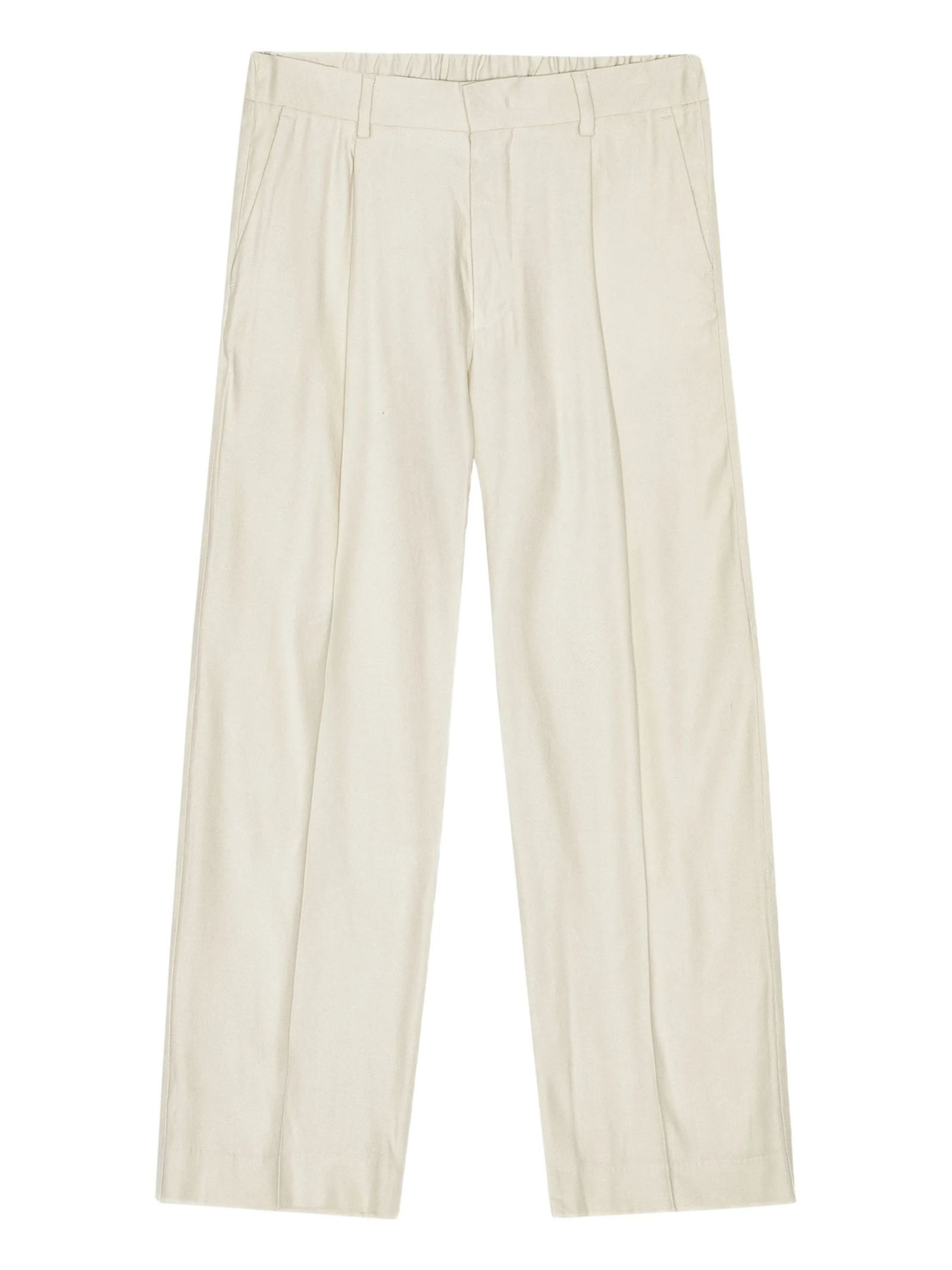 Pantaloni in misto lino color avorio, vestibilità comoda, gamba dritta, pieghe sul davanti e pieghe a pressione, trama panama, tinti in pezza