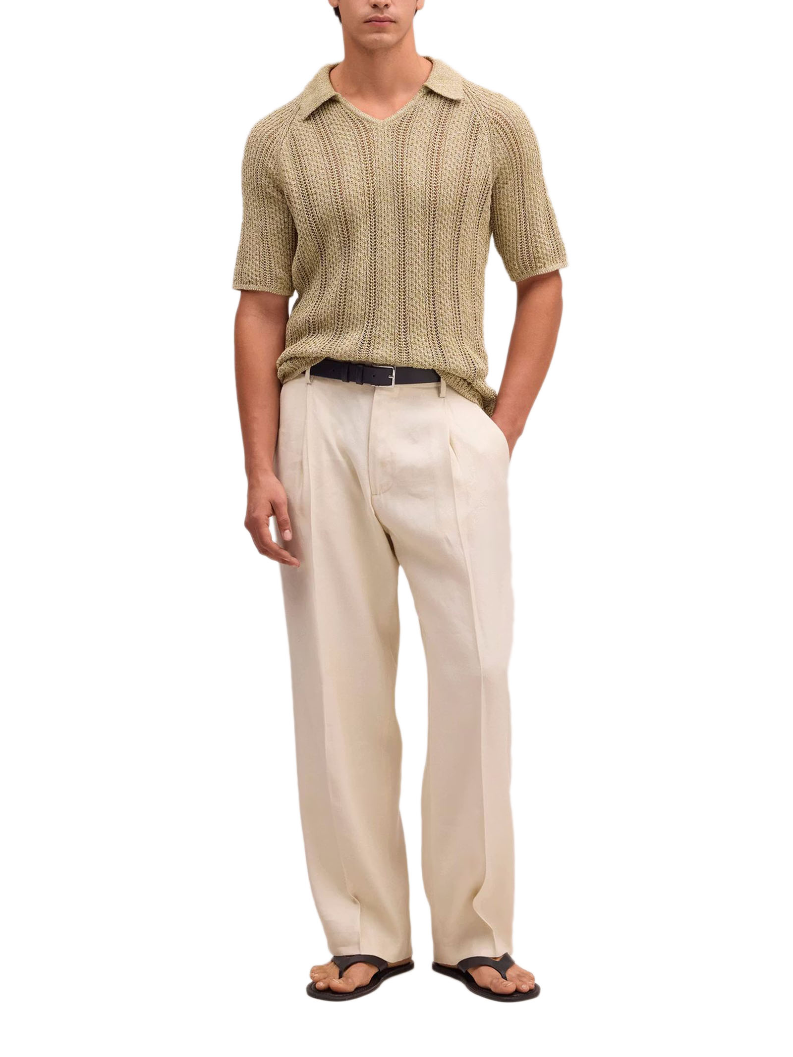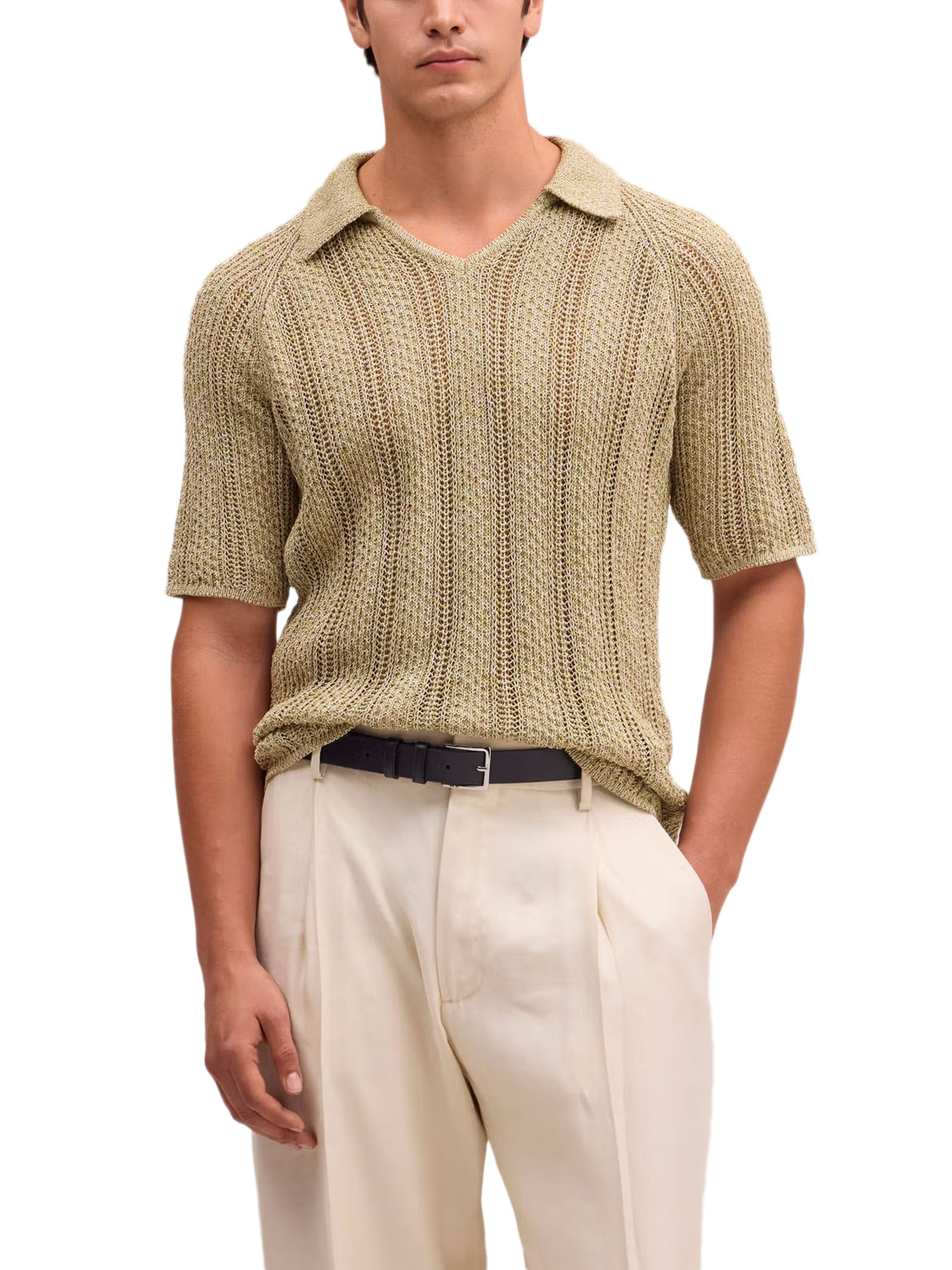 Polo Cale in maglia pointelle testurizzata, vestibilità comoda, leggera, maglia pointelle testurizzata, filato fantasia, cotone biologico