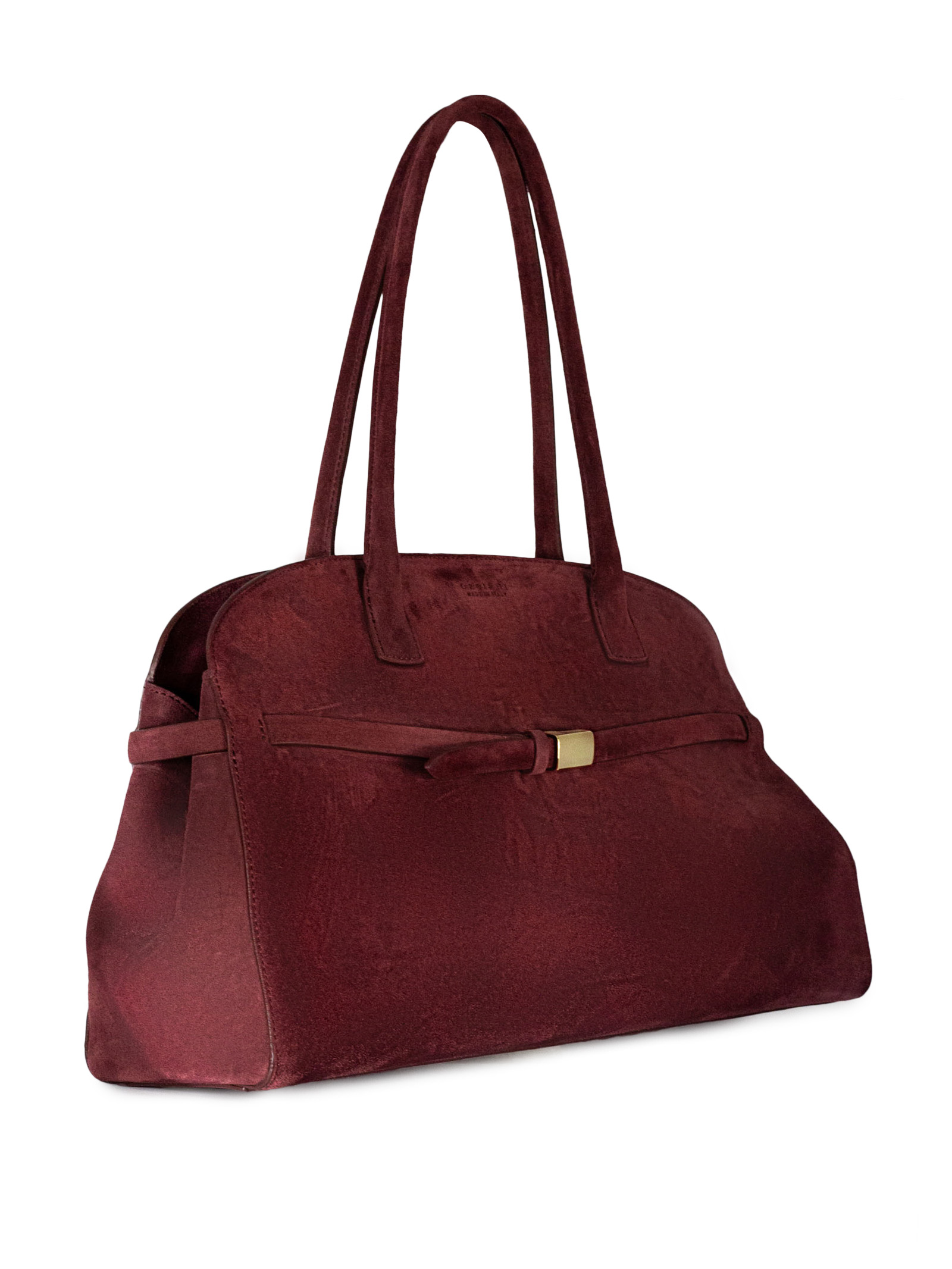 Borsa Aura Peach Large a spalla in suede bordeaux