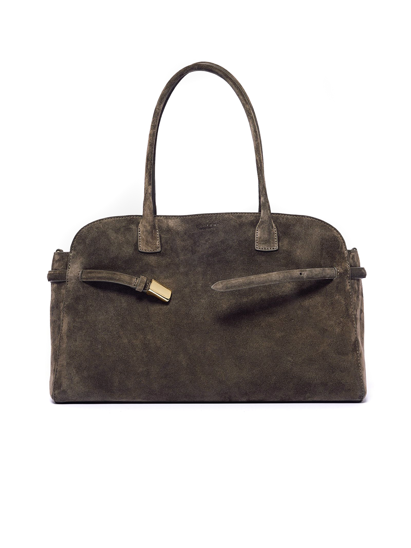 Borsa Aura Peach Large a spalla in suede verde bosco