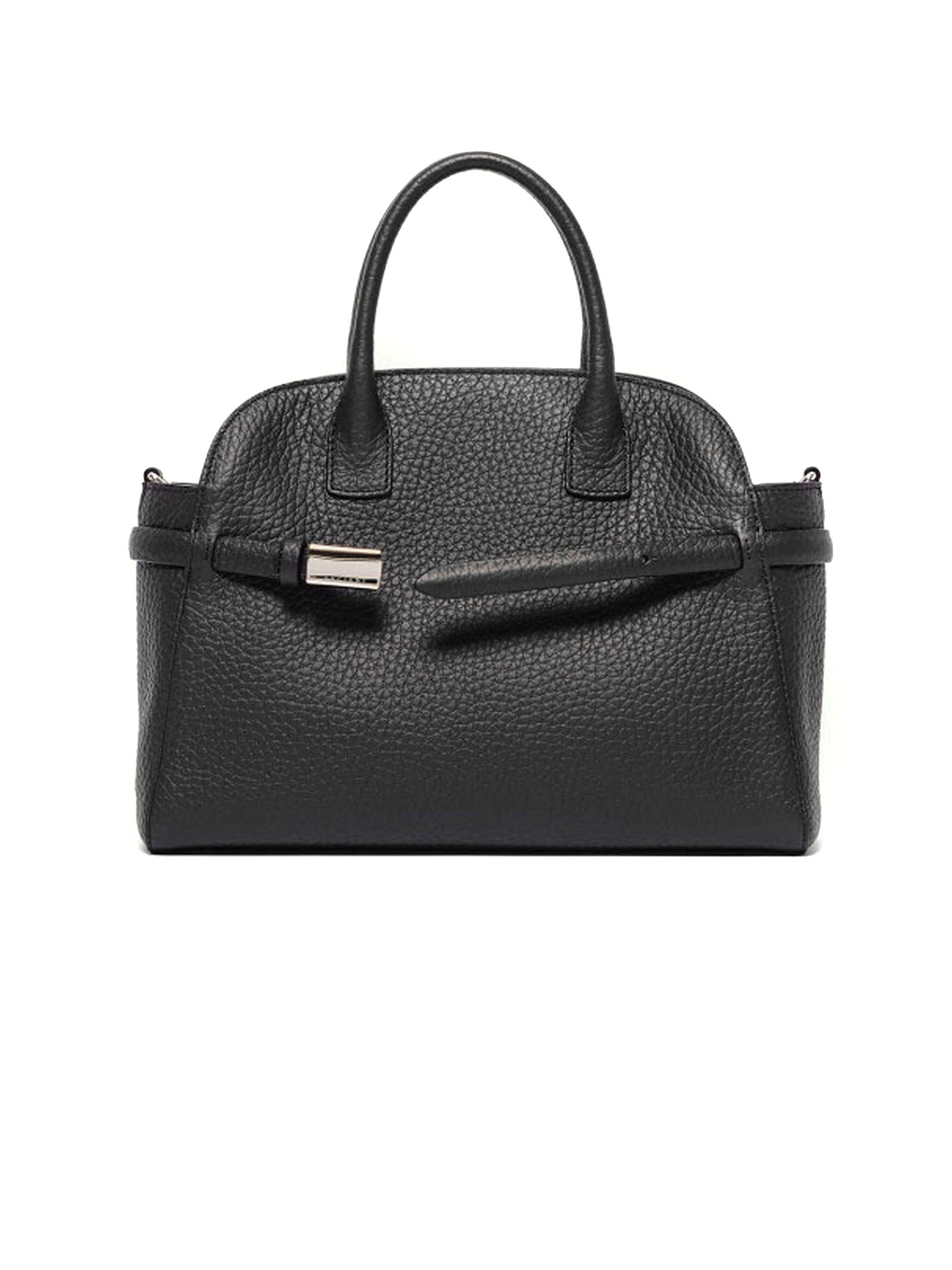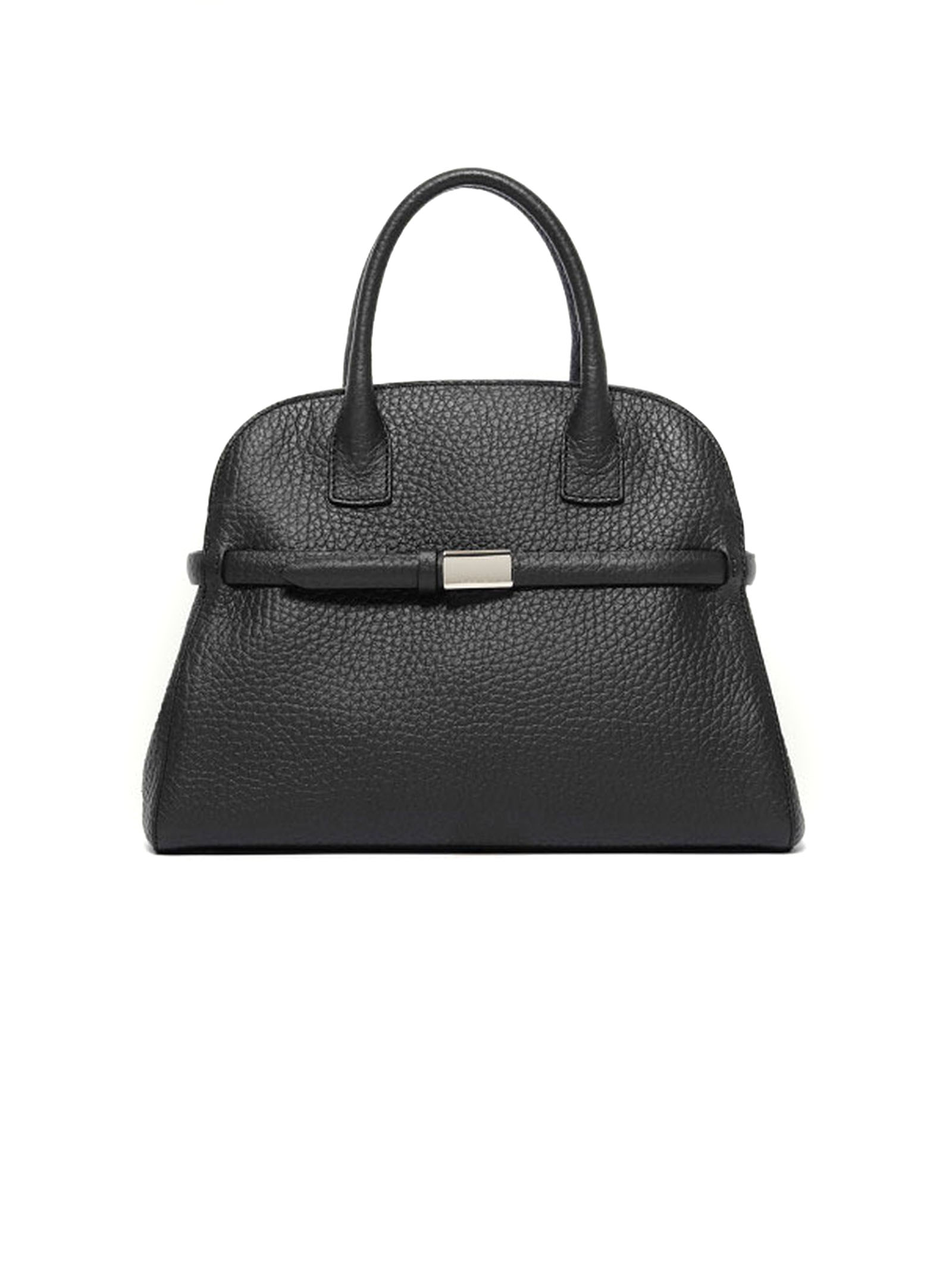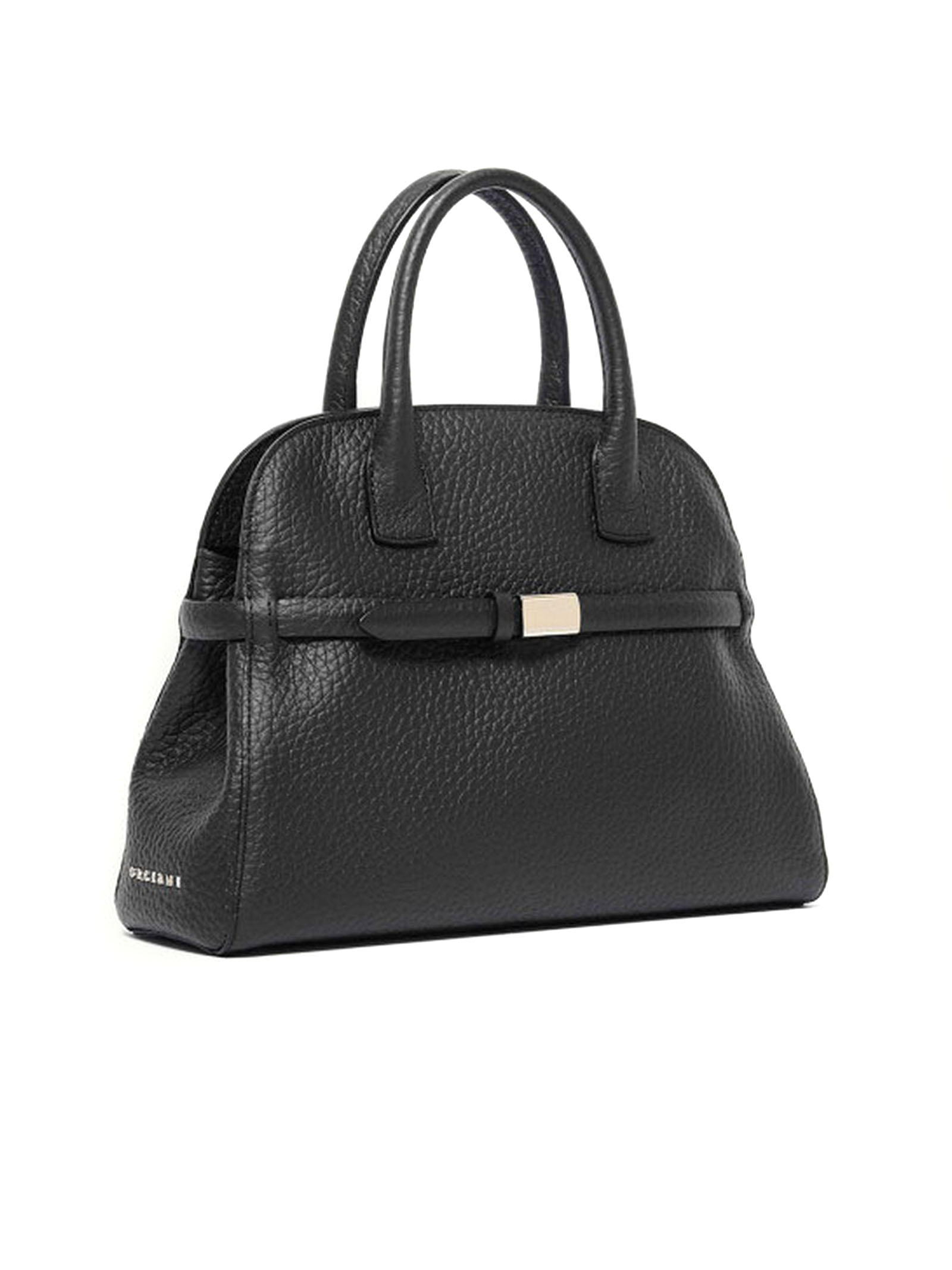 Borsa Aura Soft Midi a mano in pelle martellata nera, dimensioni: Larghezza: 30 cm, Altezza: 24 cm, Profondità: 11 cmTasche: 1 esterna; 3 interne, di cui una con zip, Chiusura: con bottoni magnetici, Funzionalità: manici a mano, tracolla aggiuntiva regolabile, Dettagli: metallerie finitura palladio