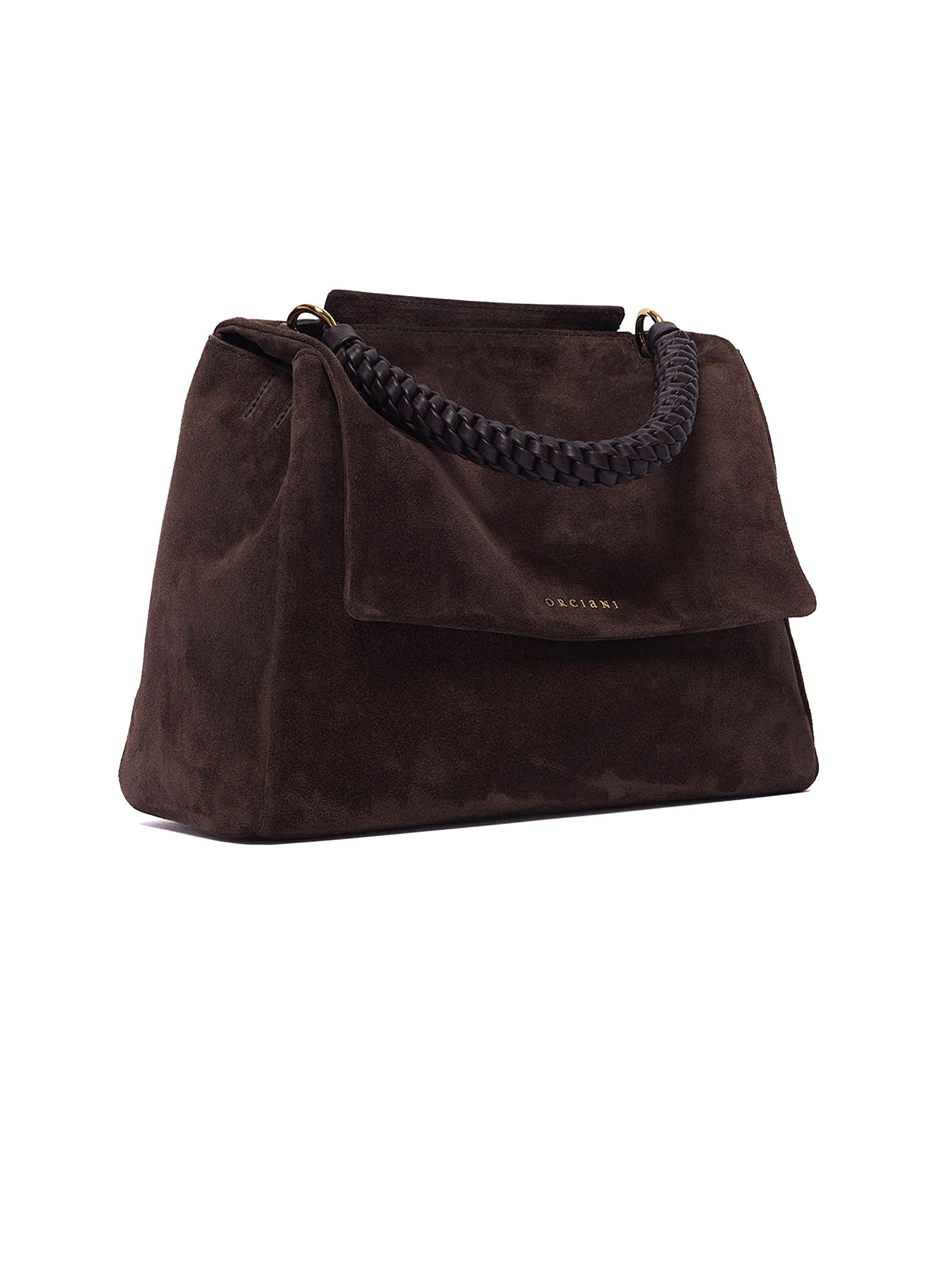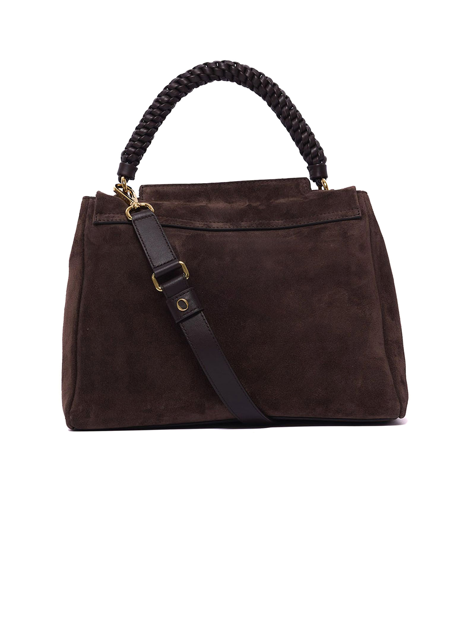 Borsa Sveva Peach Media a spalla in suede, taschino interno con zip, chiusura: patta con bottone magnetico, funzionalità: apertura a scomparsa sulla parte alta della patta, manico intrecciato scooby a spalla e tracolla regolabile removibile, dettagli: metallerie finitura oro lucido, larghezza: 32 cm, altezza, 24 cm, profondità: 15 cm