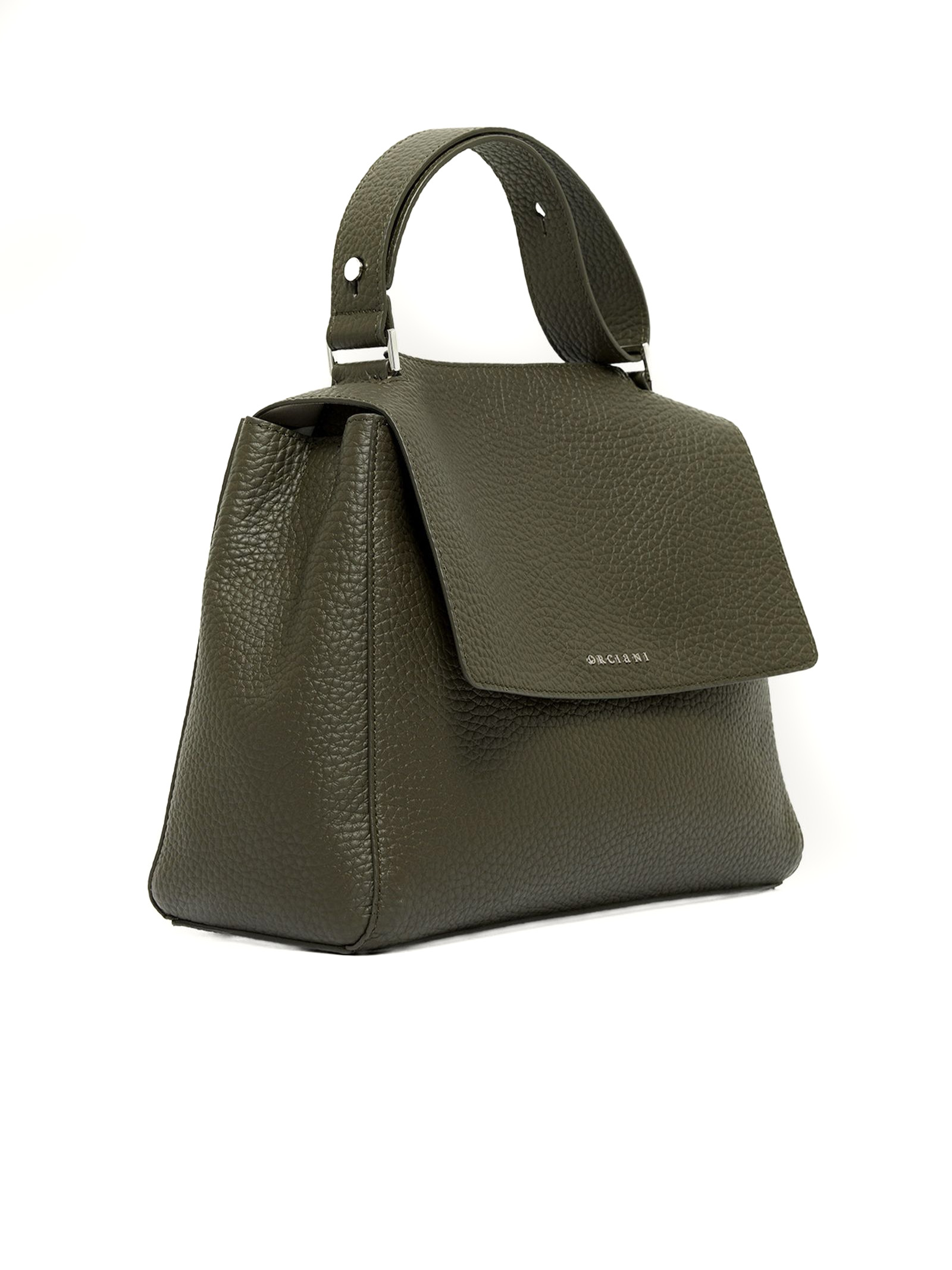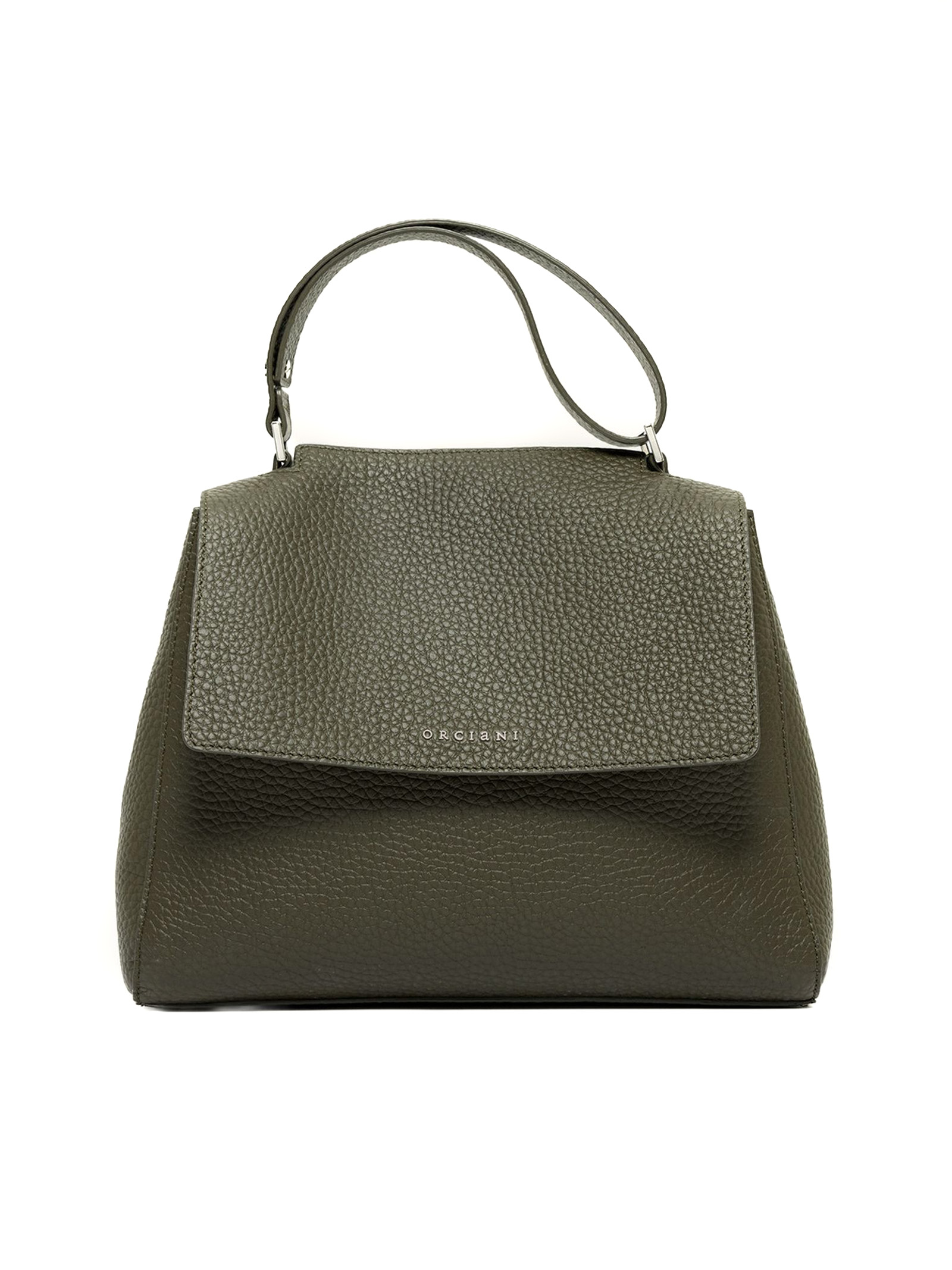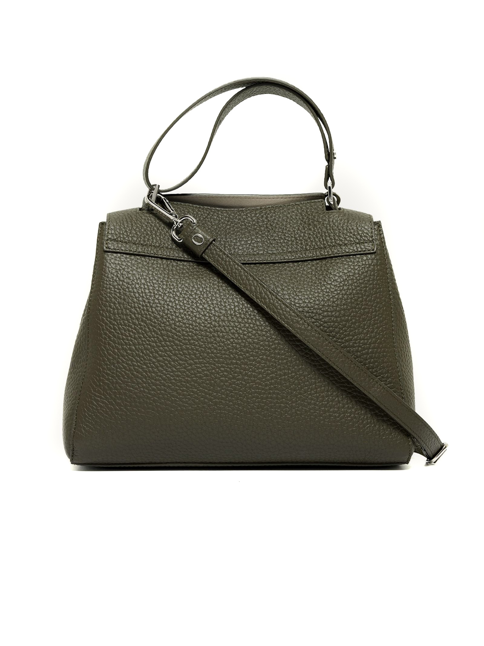 Borsa Sveva Soft Media a spalla in pelle verde, 3 tasche interne, di cui una con zip, chiusura patta con bottone magnetico, funzionalità manico allungabile e tracolla rimovibile, dettagli finitura palladio, Larghezza: 32 cm, Altezza: 24 cm, Profondità: 15 cm