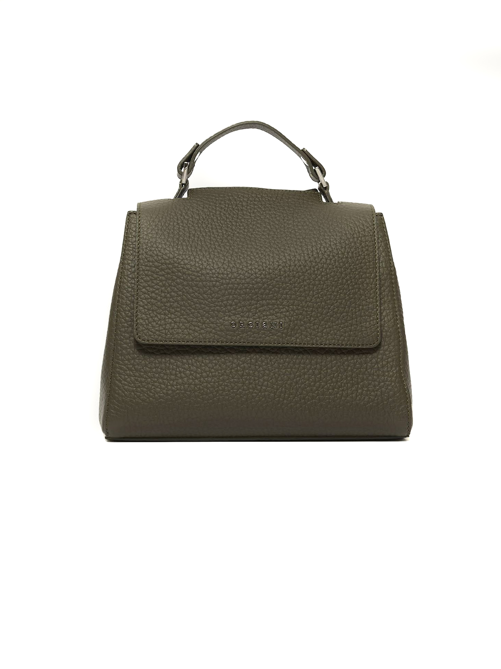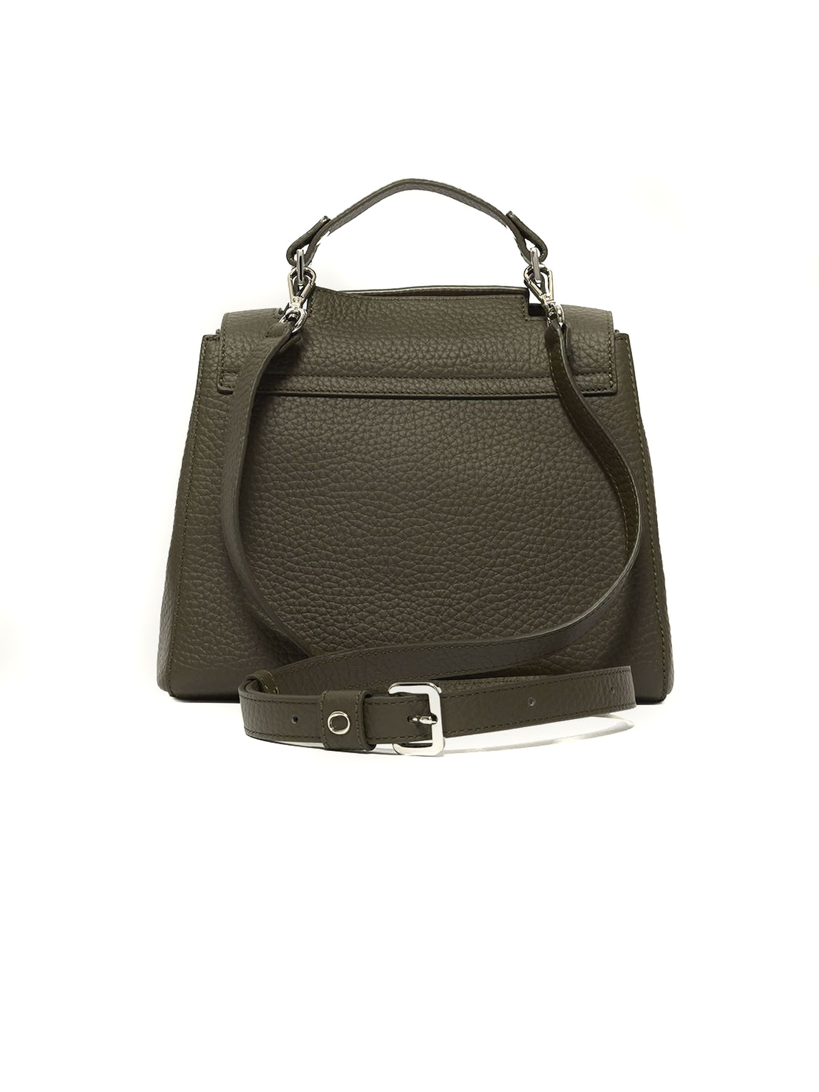 Borsa Sveva Soft Piccola in pelle verde bosco con 3 tasche interne, di cui una con zip, patta con bottone magnetico, tracolla regolabile rimovibile, finitura palladio, larghezza: 26 cm, altezza: 20 cm, profondità: 13 cm