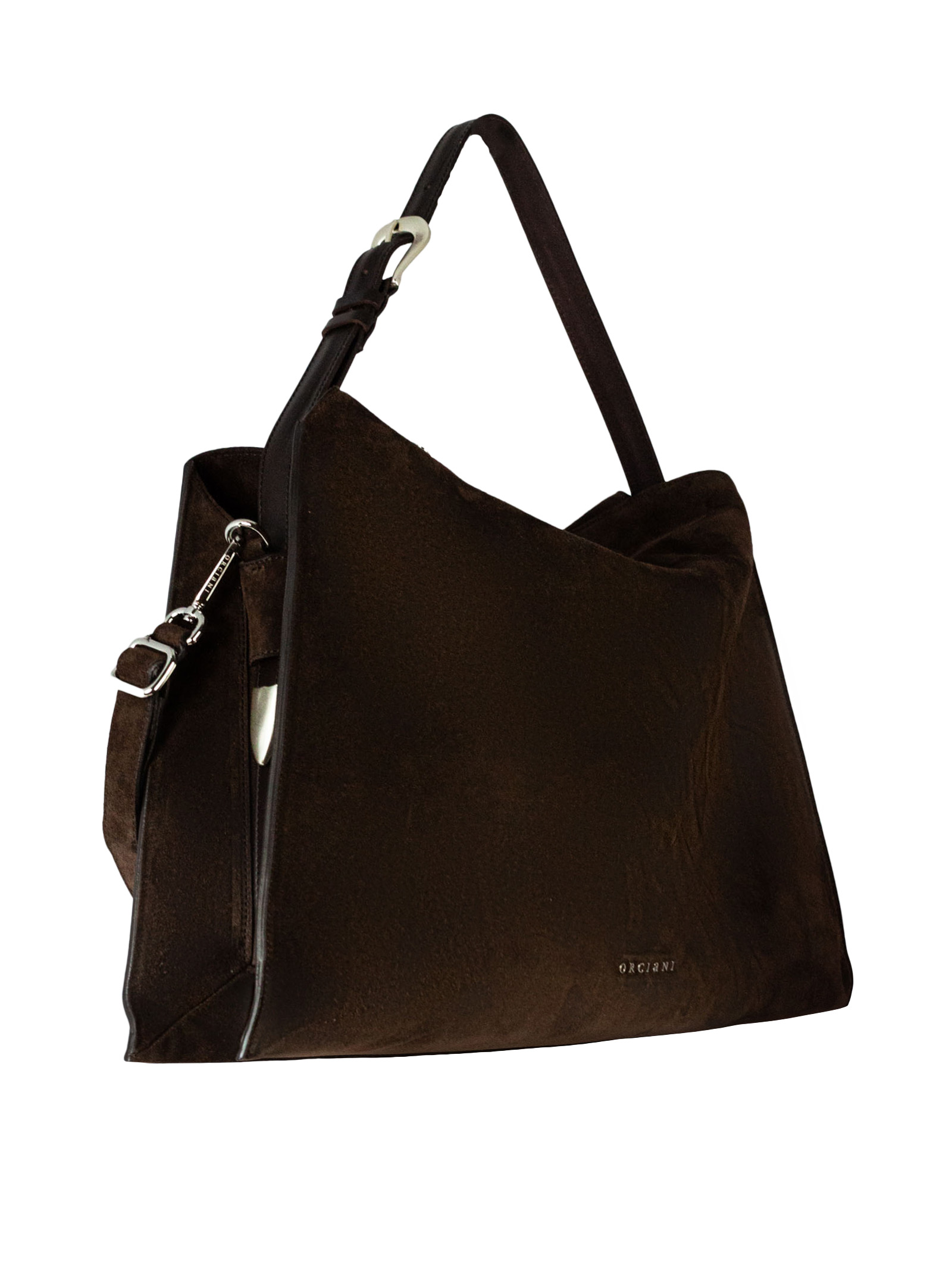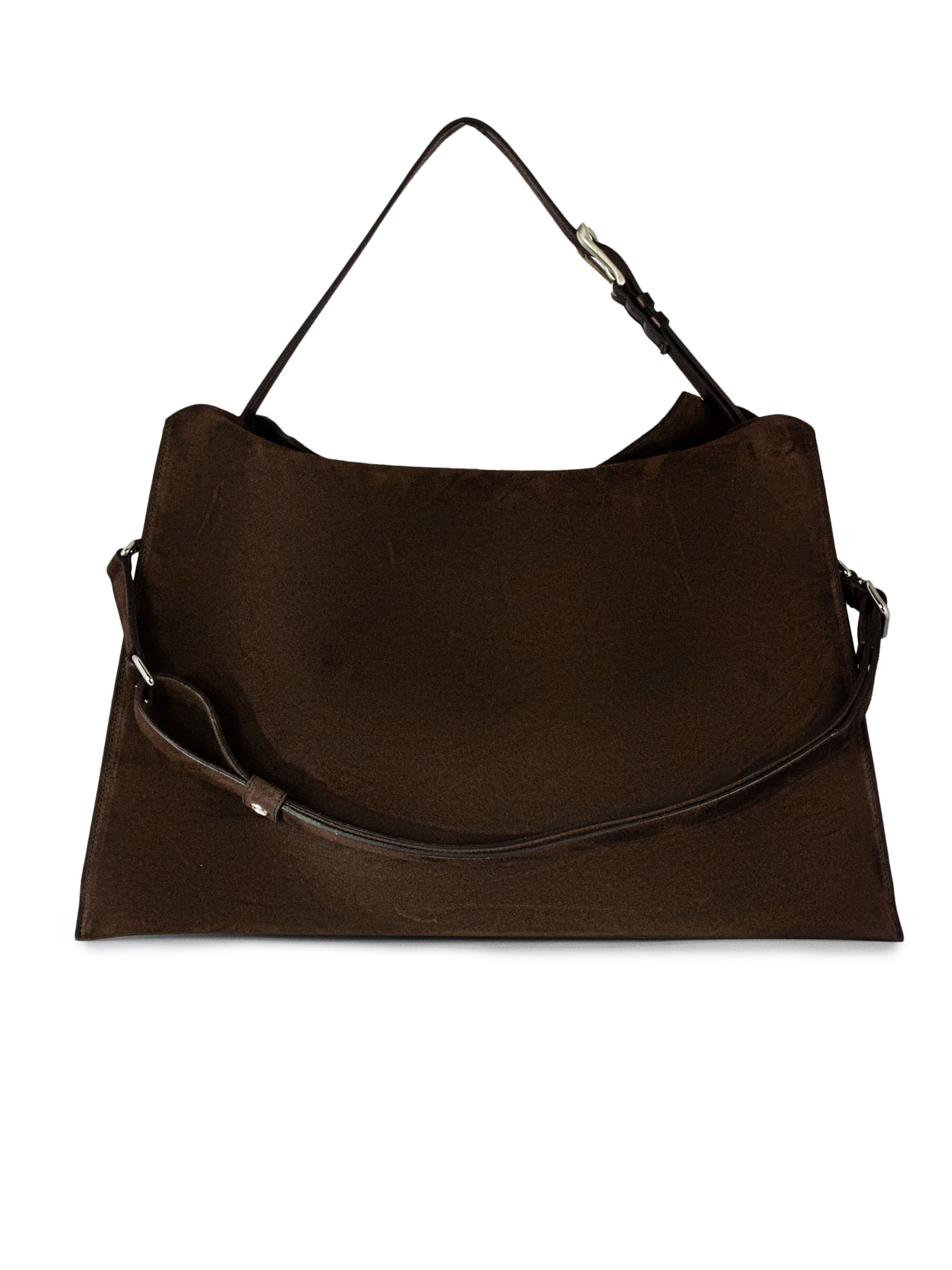 Borsa Trinity Peach Large a spalla in suede e cuoio, Tasche: tre scomparti interni e un taschino con zip, Chiusura: con bottoni magnetici, Funzionalità: manico in cuoio con fibbia regolabile e removibile utilizzabile come cintura / tracolla in suede regolabile e removibile, Materiale: pelle scamosciata, Dettagli: metallerie finitura palladio, Dimensioni: Larghezza: 48 cm / Altezza: 30 cm / Profondità: 11 cm