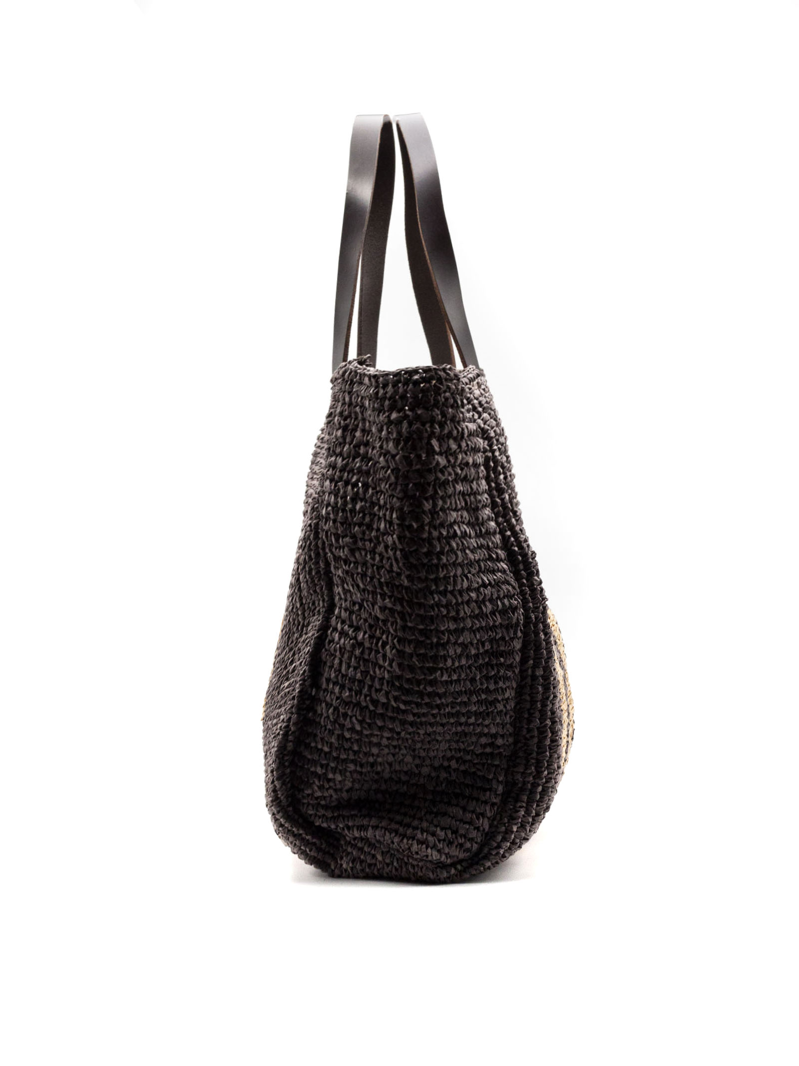Borsa shopper in fibra intrecciata testa di moro