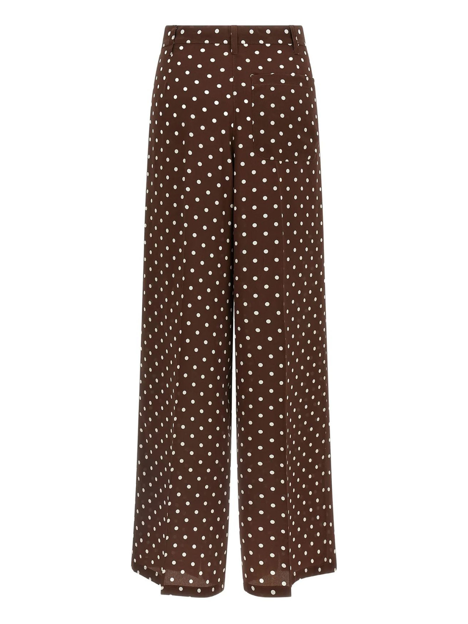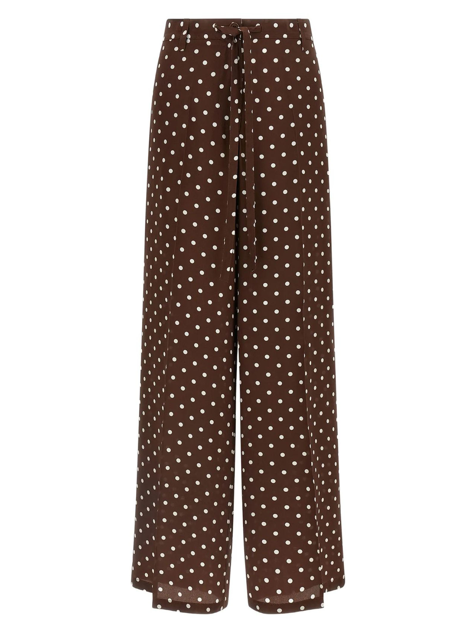 Pantaloni in seta marrone, motivo a pois, chiusura con coulisse