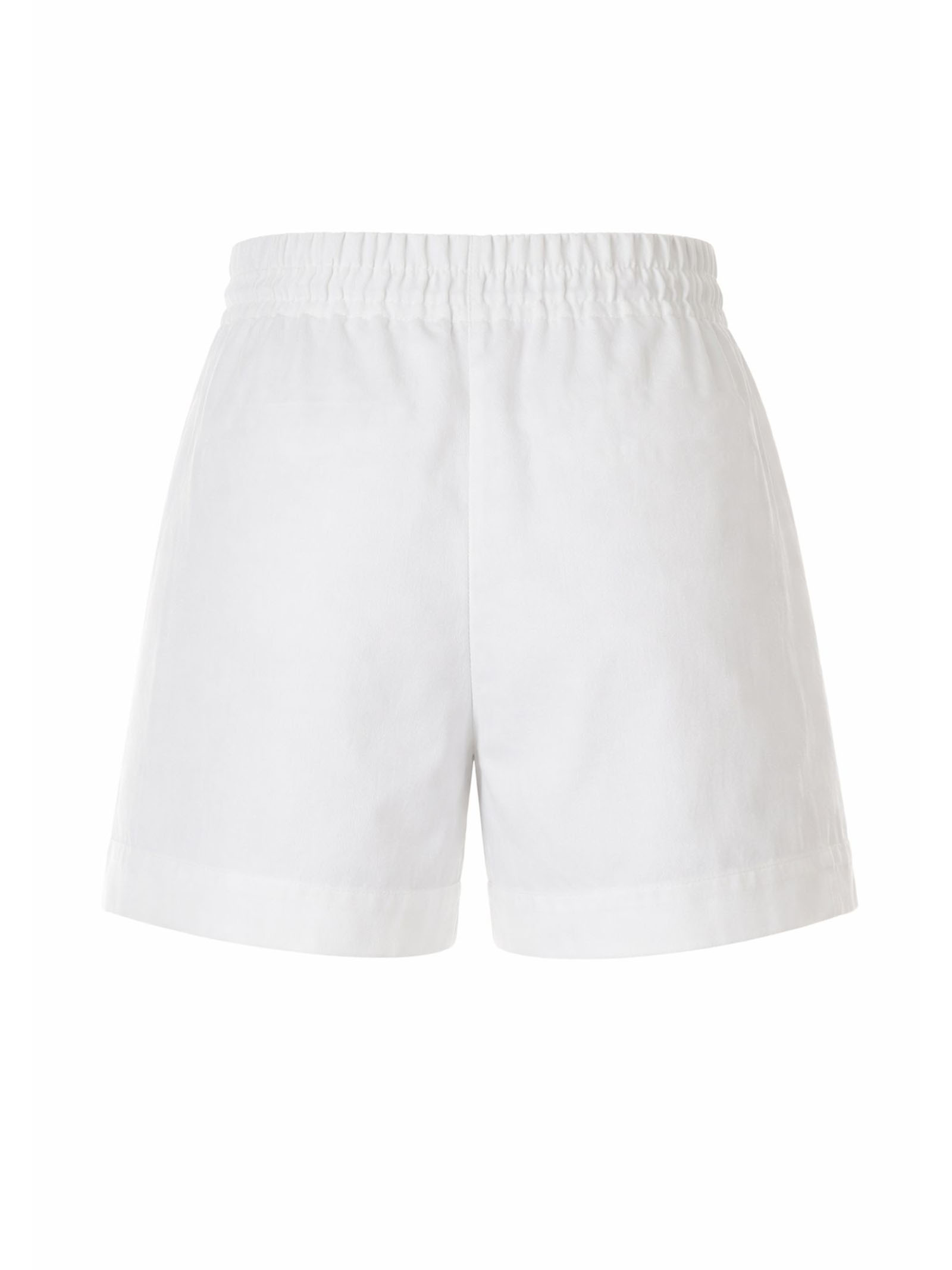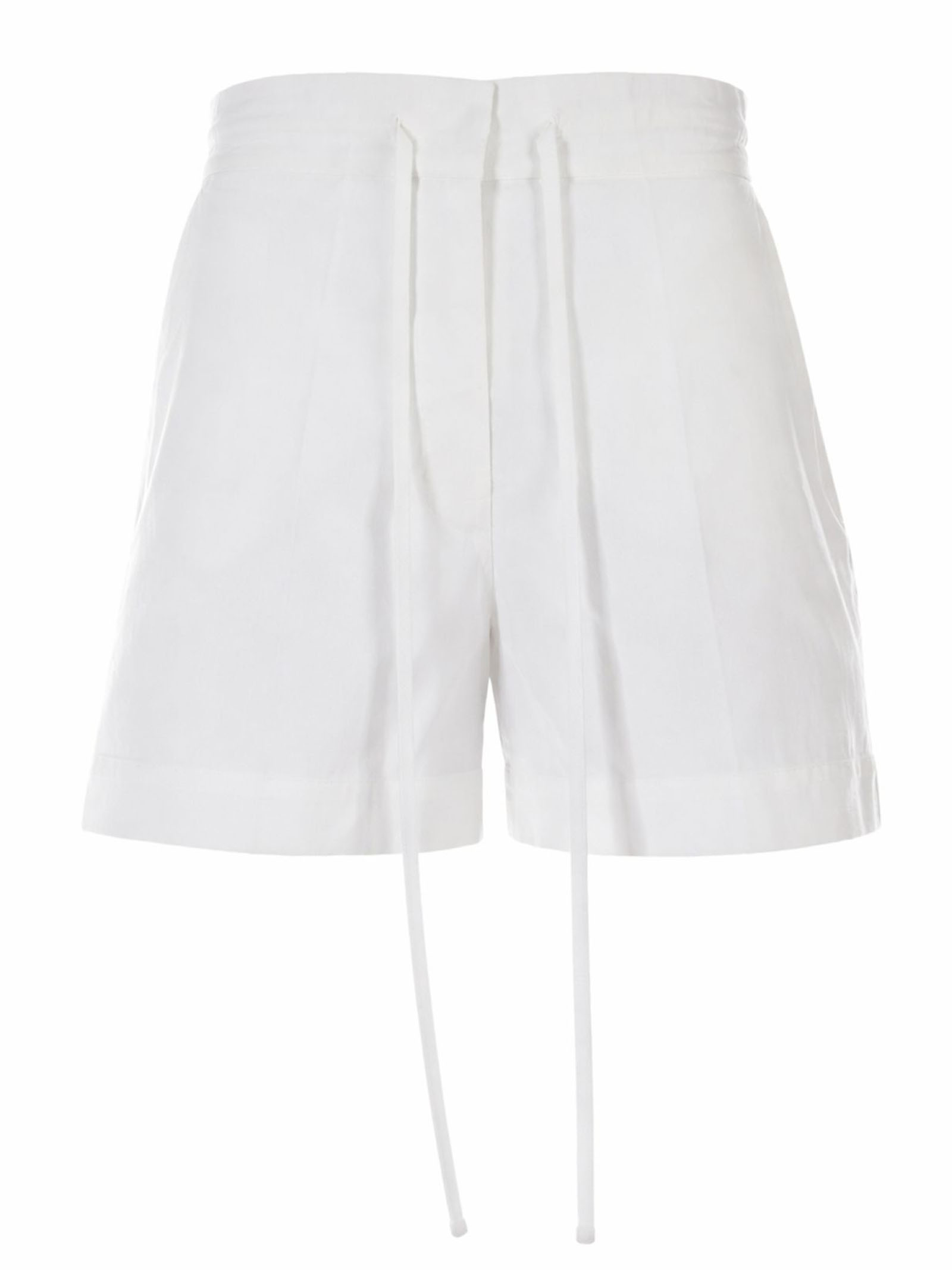 Shorts con coulisse in cotone bianco, chiusura con coulisse, design con pieghe, vita elasticizzata