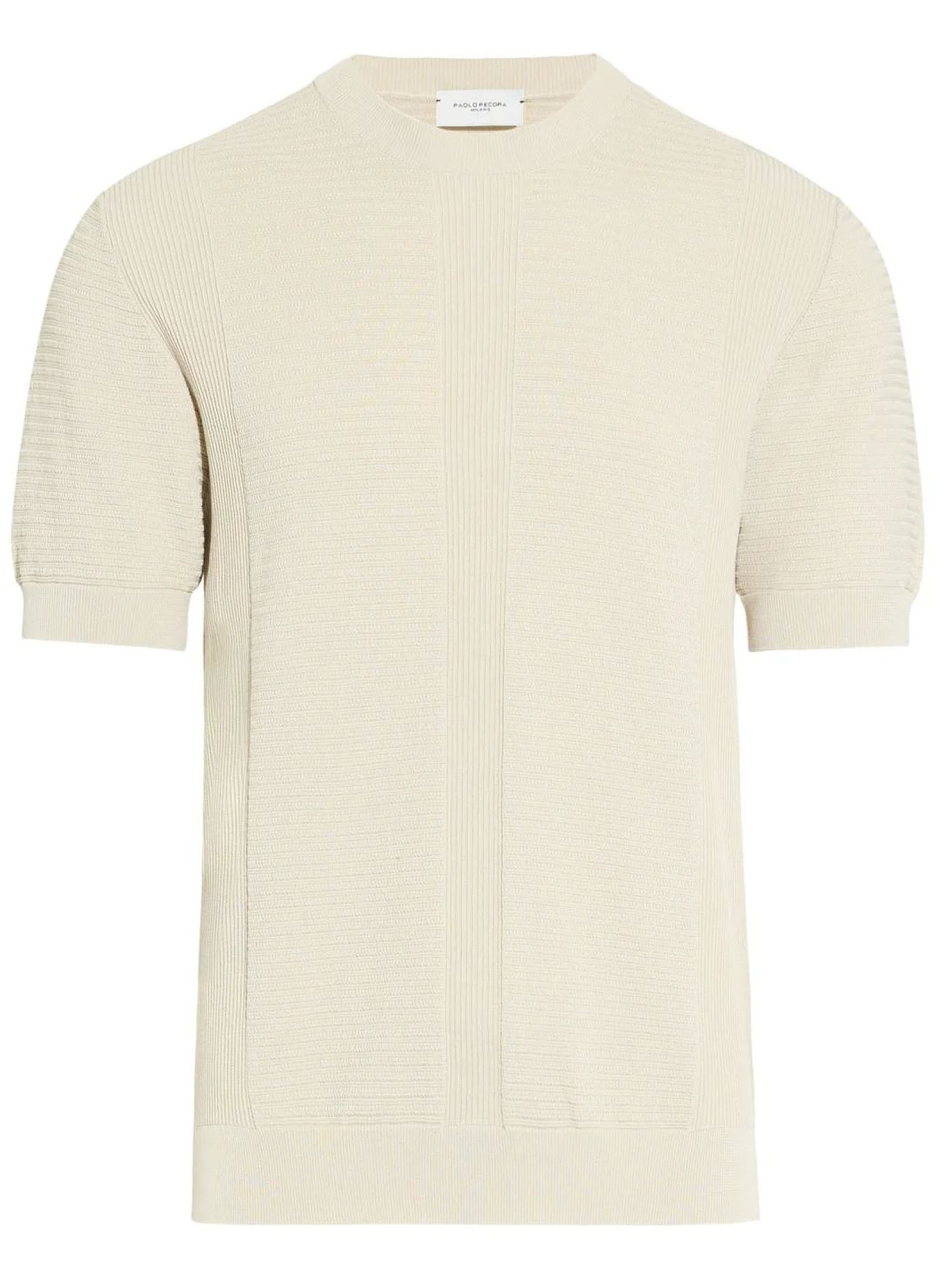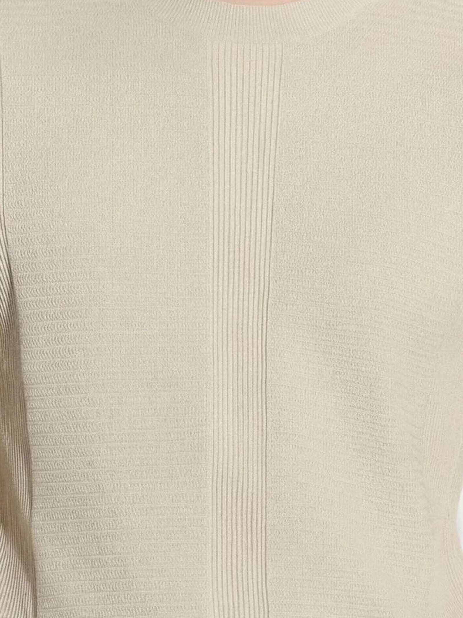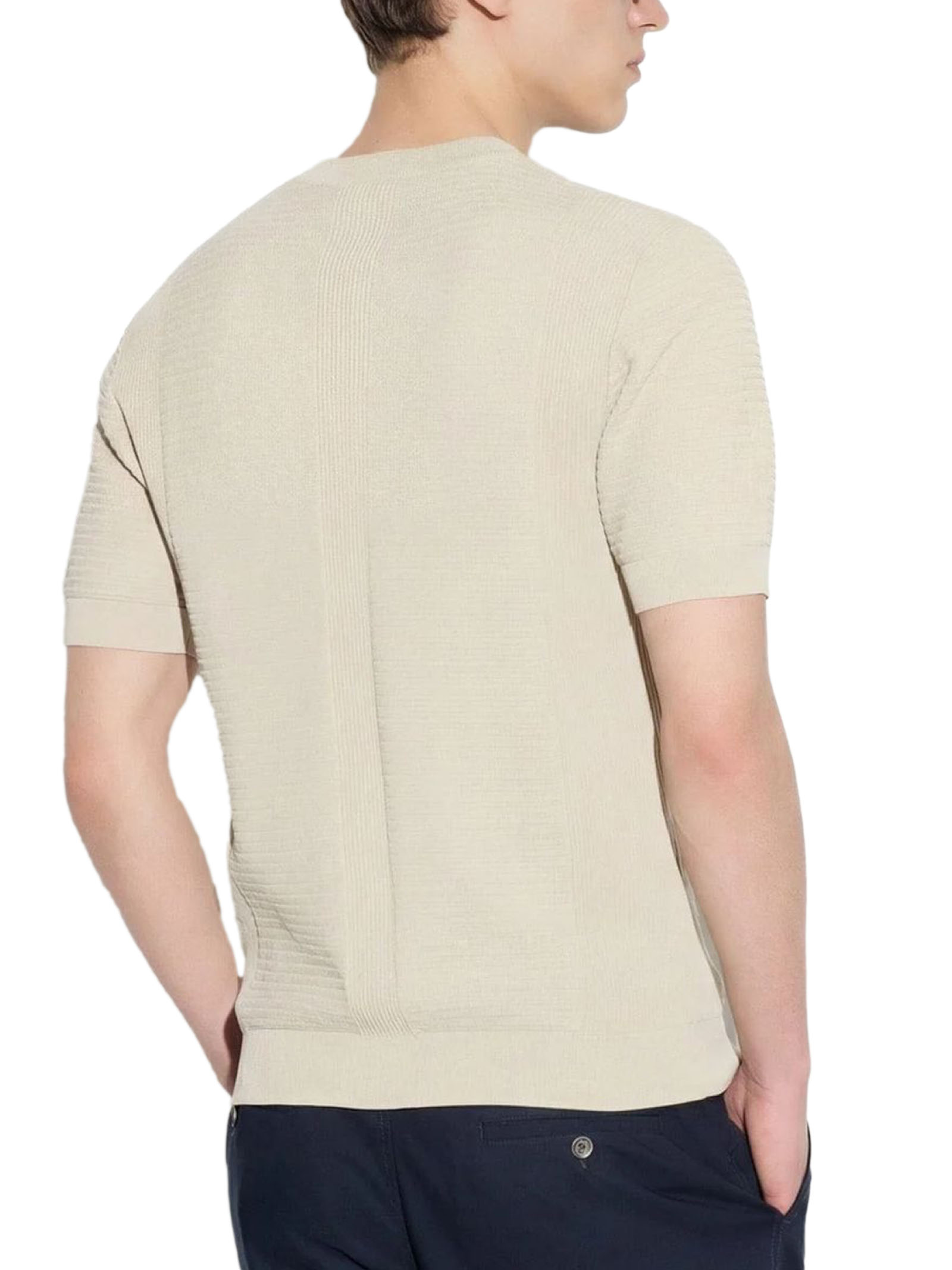 Maglia in cotone beige con lavorazione strutturata che crea un raffinato gioco di texture verticali, Mix di punti, Girocollo, Maniche corte, Gauge 14