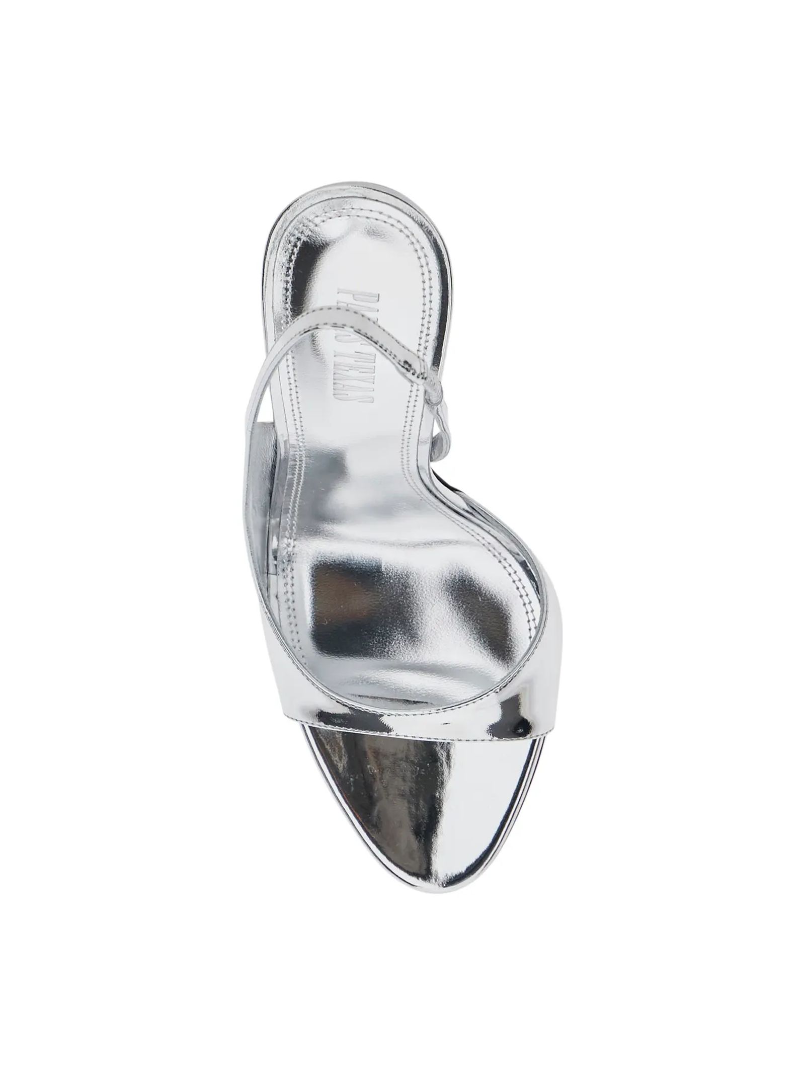 Sandali Lidia Slingback in pelle argento, tacco a spina, suola in cuoio con logo, altezza tacco 105mm