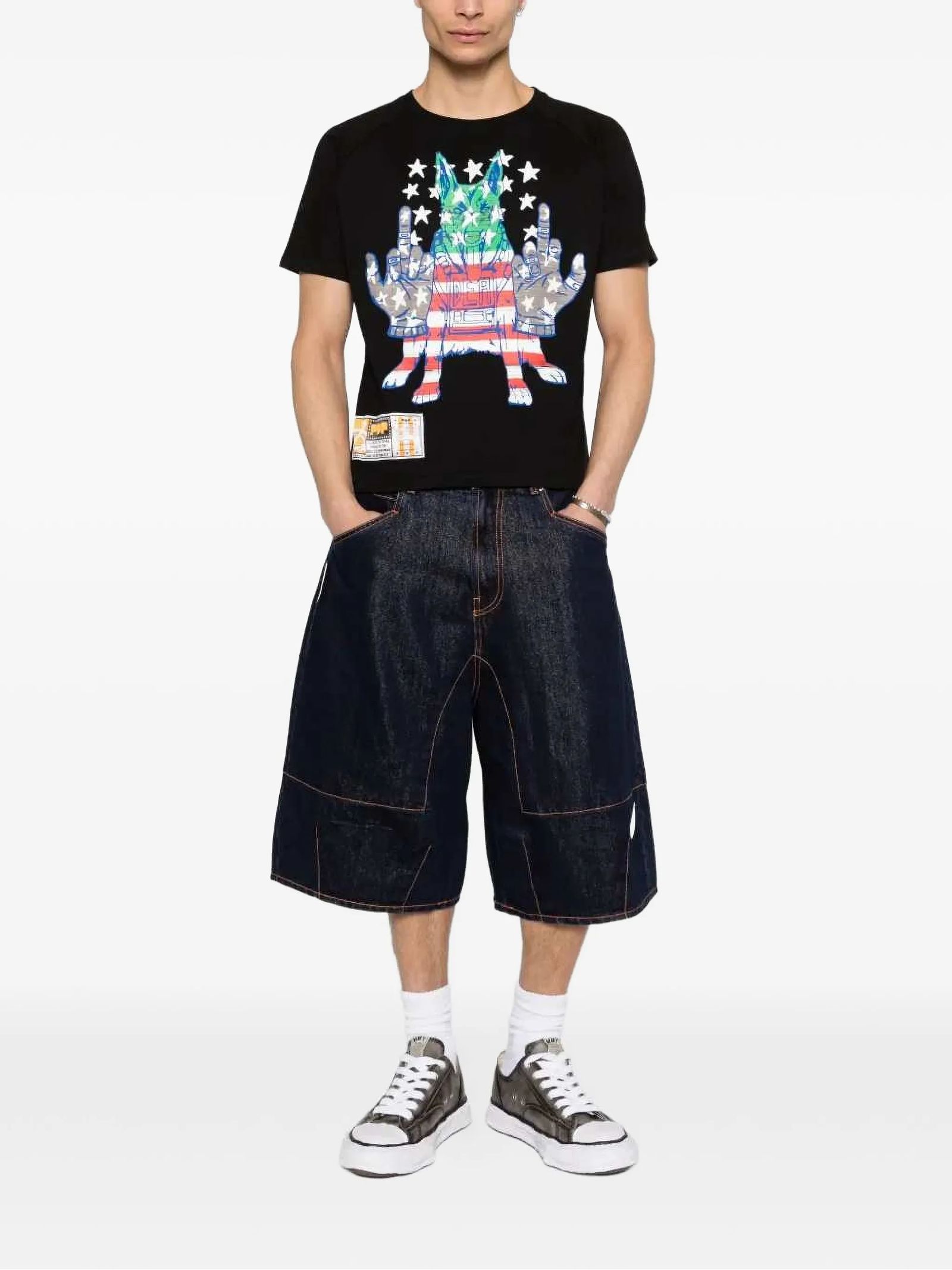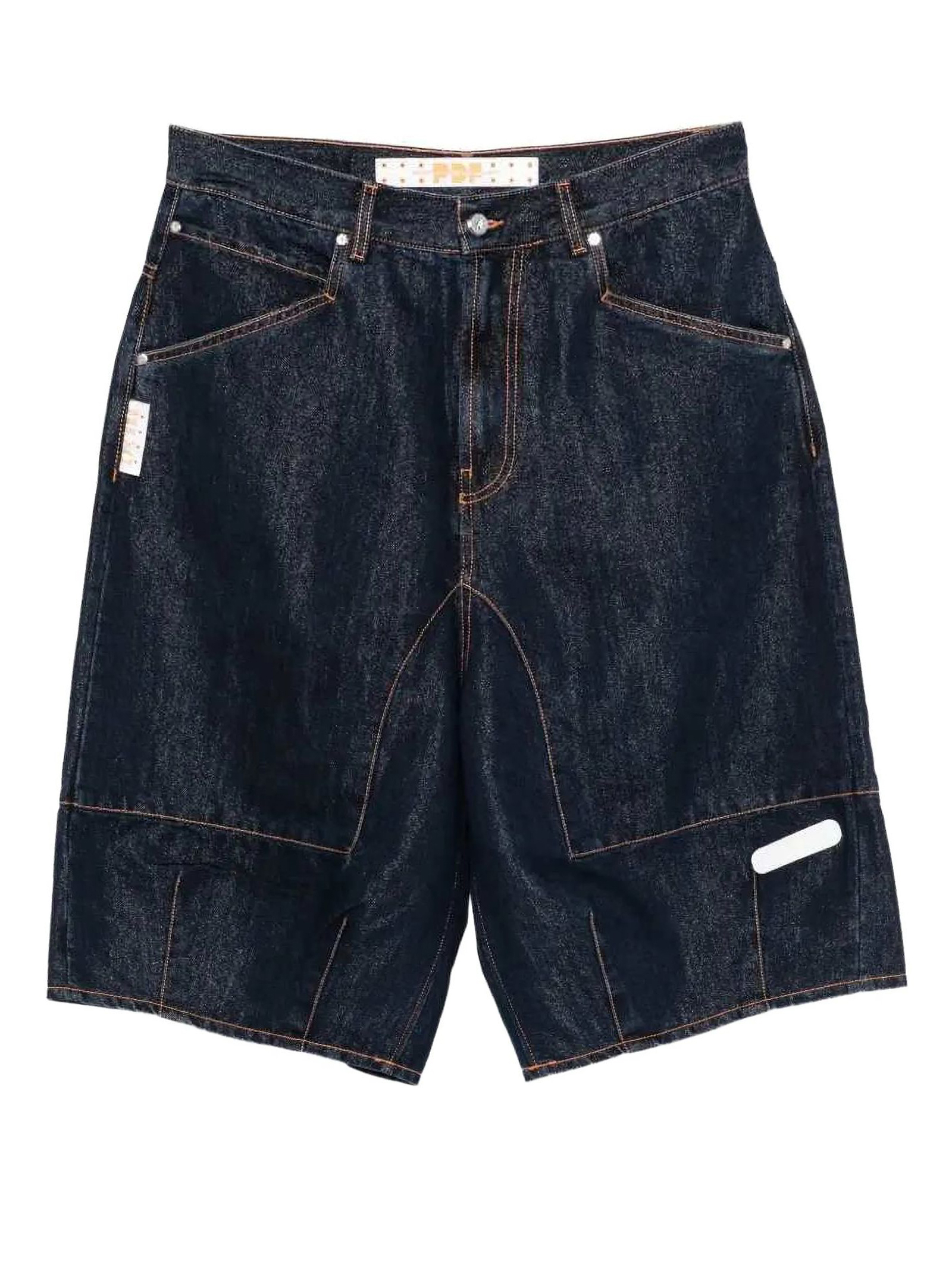 Shorts denim blu, cuciture a contrasto, tasche frontali, 5 tasche, relaxed fit