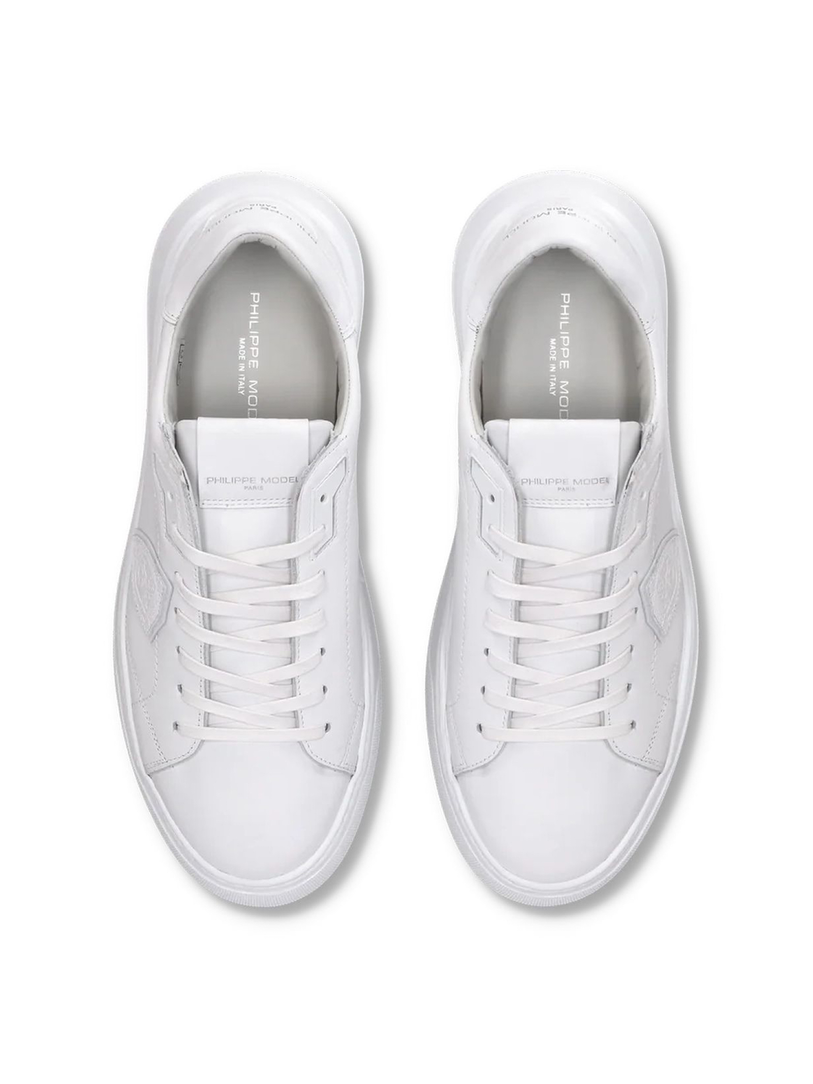 Sneaker Temple in vitello bianco, fodera interna in pelle e spugna di cotone, con fussbett estraibile, suola bold in gomma ultra leggera con finiture artigianali, altezza al tallone 4 cm
