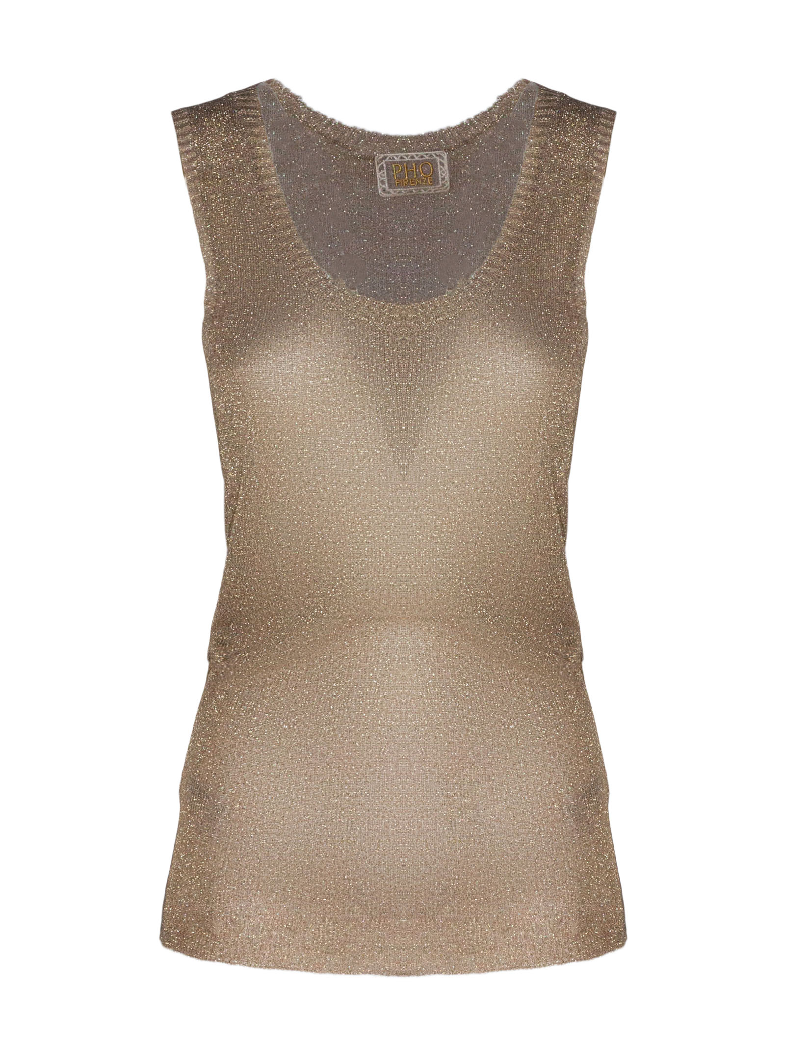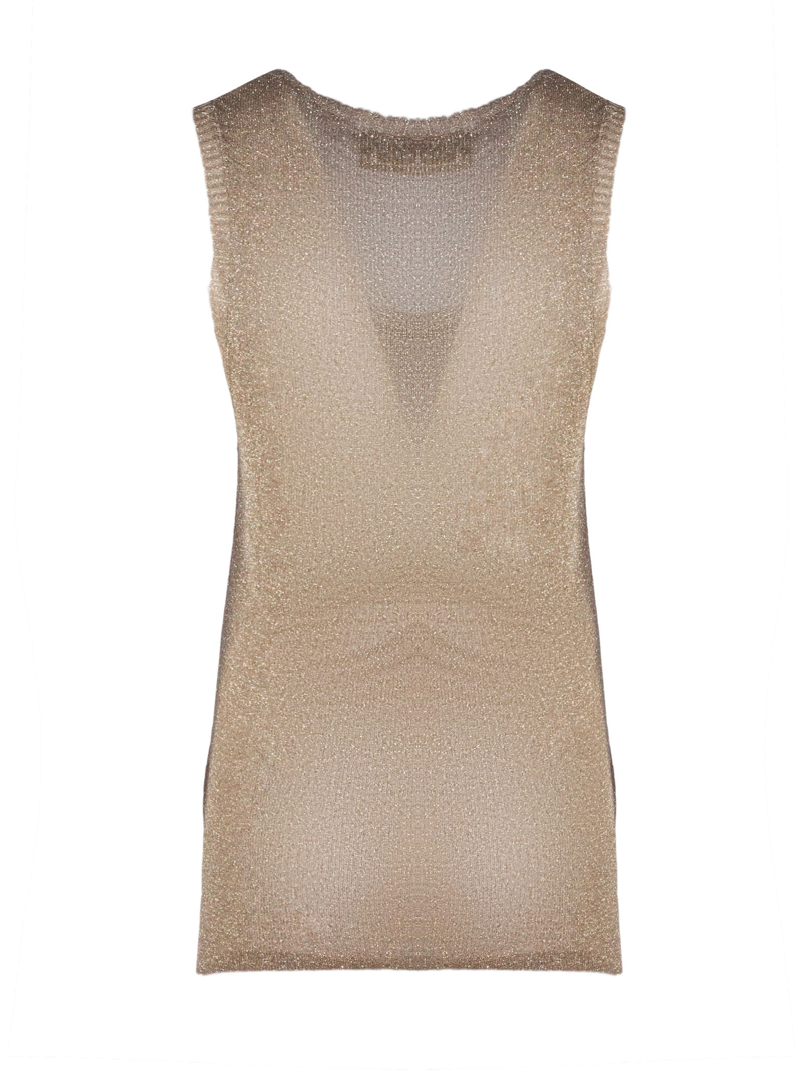 Canotta in viscosa leggera dorata, senza maniche, girocollo